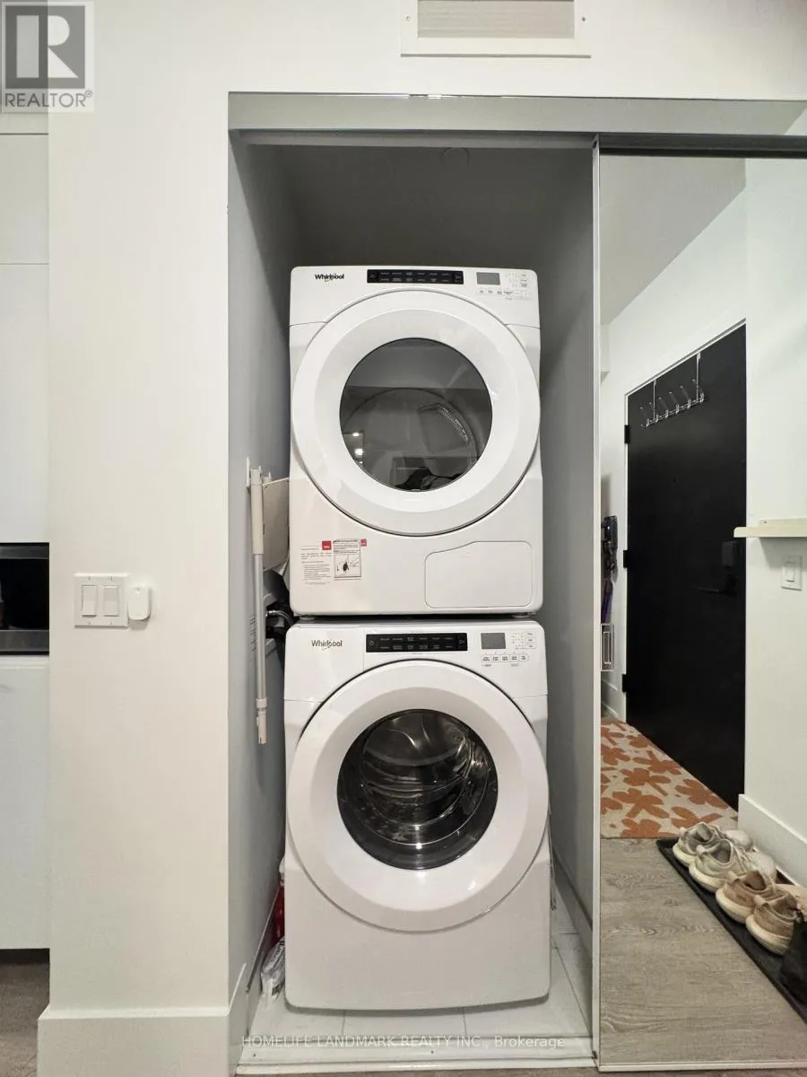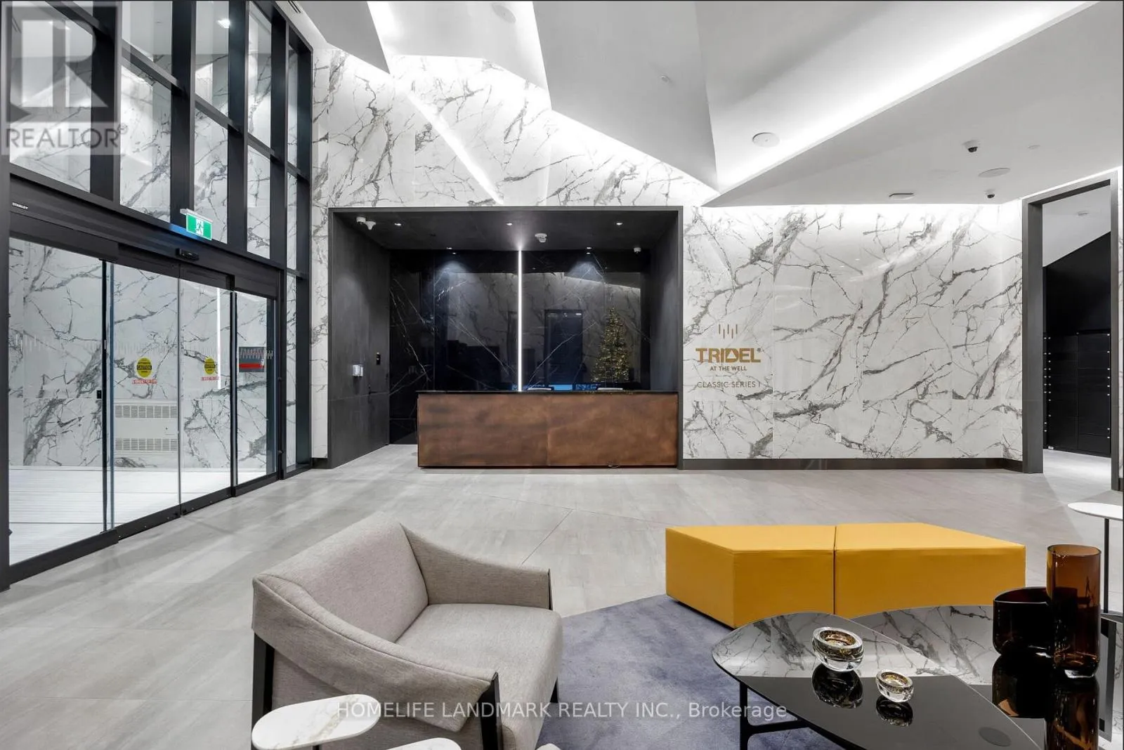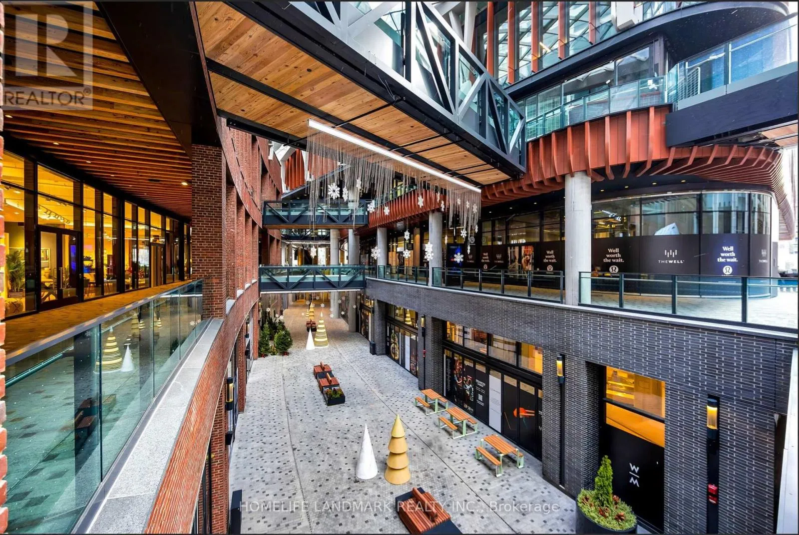 Cross Streets: Spadina & Front. ** Directions: North of Front St. West of Spadina. Luxury 1 Br +Den Condo at The Well! Modern Suite With 608 Sq. Ft & 9 Ft Ceilings. West Facing Floor-To-Ceiling Window In The Living Room. Laminate Flooring Throughout W/ Custom Blinds. Large Enough Versatile Den. Contemporary Kitchen with Integrated Appliances & Quartz Counters. Ensuite laundry. Great Amenities Including Rooftop Pool, 5-Star Gym, Media & Games Lounges, BBQ Terrace, Party Room, Guest Suites & 24-Hr Concierge. Steps To Waterfront, Public Transit, Retail & Dining. This Unit Does Not Have Parking & Locker. (id:27476)
