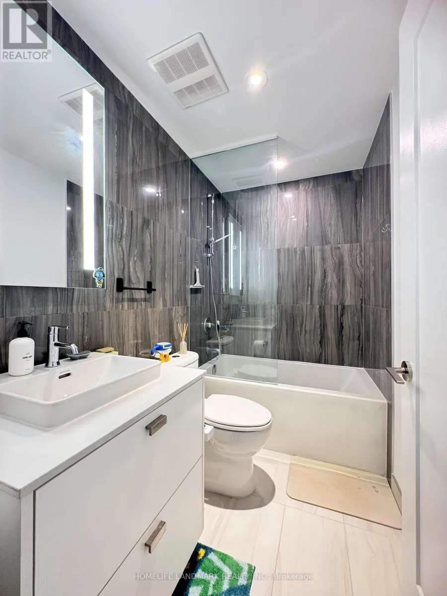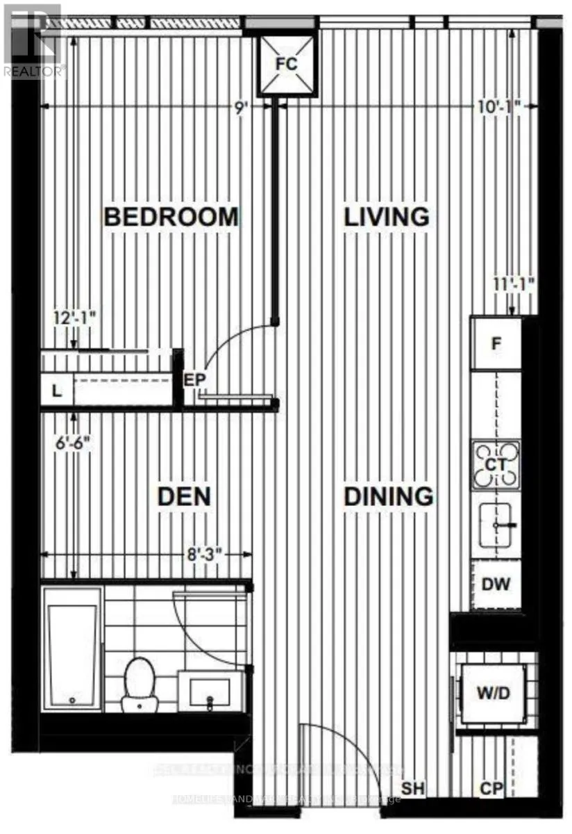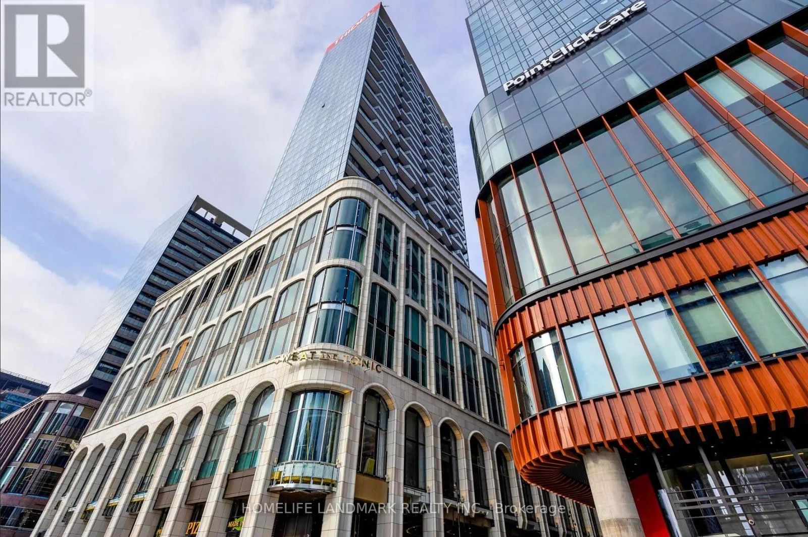 Cross Streets: Spadina & Front. ** Directions: North of Front St. West of Spadina. Luxury 1 Br +Den Condo at The Well! Modern Suite With 608 Sq. Ft & 9 Ft Ceilings. West Facing Floor-To-Ceiling Window In The Living Room. Laminate Flooring Throughout W/ Custom Blinds. Large Enough Versatile Den. Contemporary Kitchen with Integrated Appliances & Quartz Counters. Ensuite laundry. Great Amenities Including Rooftop Pool, 5-Star Gym, Media & Games Lounges, BBQ Terrace, Party Room, Guest Suites & 24-Hr Concierge. Steps To Waterfront, Public Transit, Retail & Dining. This Unit Does Not Have Parking & Locker. (id:27476)