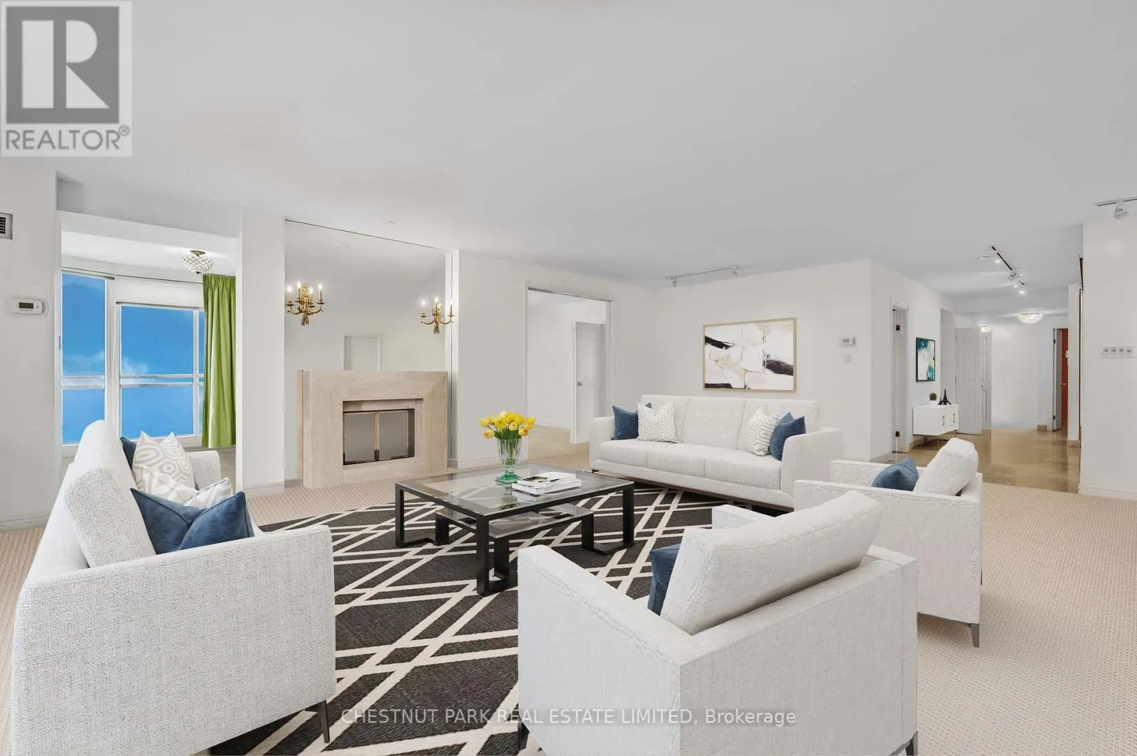 Cross Streets: Yonge / St. Clair. ** Directions: North side of Rosehill Avenue, east of Yonge. Downsizers seeking luxurious space will be captivated by this rare 4-bedroom, 3,206 sq.ft. south west corner penthouse. With thoughtfully designed, truly oversize rooms, this residence cocoons you in comfort and style. Ideal for entertaining, this penthouse features expansive walls of windows with sweeping skyline views, an indoor/outdoor "Muskoka" Room, and wrap around slimline balconies with transparent glass and sliding doors for uninterrupted vistas and fresh air. The home offers tall ceilings, a gracious dining room for 12, wood-burning fireplace, family room/solarium, fantastic eat-in kitchen, wet bar, large ensuite laundry room with sink, abundant storage, three parking spaces, and 2 concrete walled, entirely private locker rooms with steel fire doors (approx 10'x10' or 10'x 12' each). The building's windows were replaced and the elevator refurbished in 2019. A focus for suites of this size in the vibrant Yonge/St. Clair hub, this prestigious midrise boutique building is steps from the subway and surrounded by superb amenities: David Balfour Reservoir Park for dog walking, Rosedale Ravine walking trails, boutique shops, top dining, Loblaws, and Farm Boy. Refined, sophisticated, and uniquely spacious, this home offers exceptional scale and comfort - urban living at its most polished! Virtually staged "new look" photos showcase the alternative contemporary elegance options available to you. This is matchless value at the intersection of Summerhill, Deer Park and Moore Park! Excellent area amenities including indoor pool in condo. (id:27476)