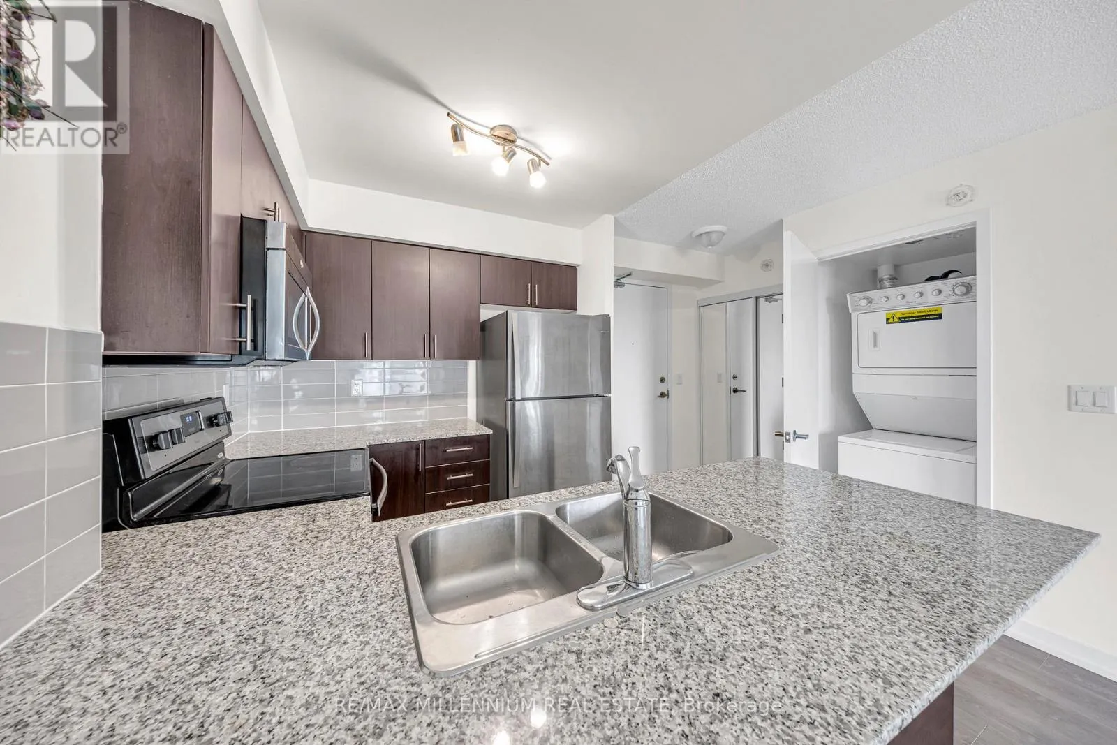 DUPONT STREET / DUFFERIN STREET Condo living at its finest! This bright and beautifully designed 1-bedroom suite offers the perfect open-concept layout with no wasted space. The modern kitchen features full-sized stainless steel appliances, granite countertops, and a breakfast bar ideal for cooking and entertaining. The spacious bedroom includes a double closet, while large windows fill the home with natural light. Enjoy the ultimate convenience with a grocery store and drugstore in the building, plus easy access to The Junction, Bloor subway, and High Park. Complete with parking and locker this is modern city living done right. (id:27476)