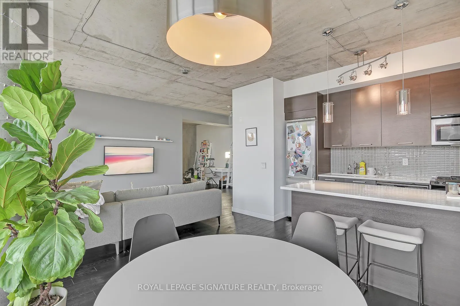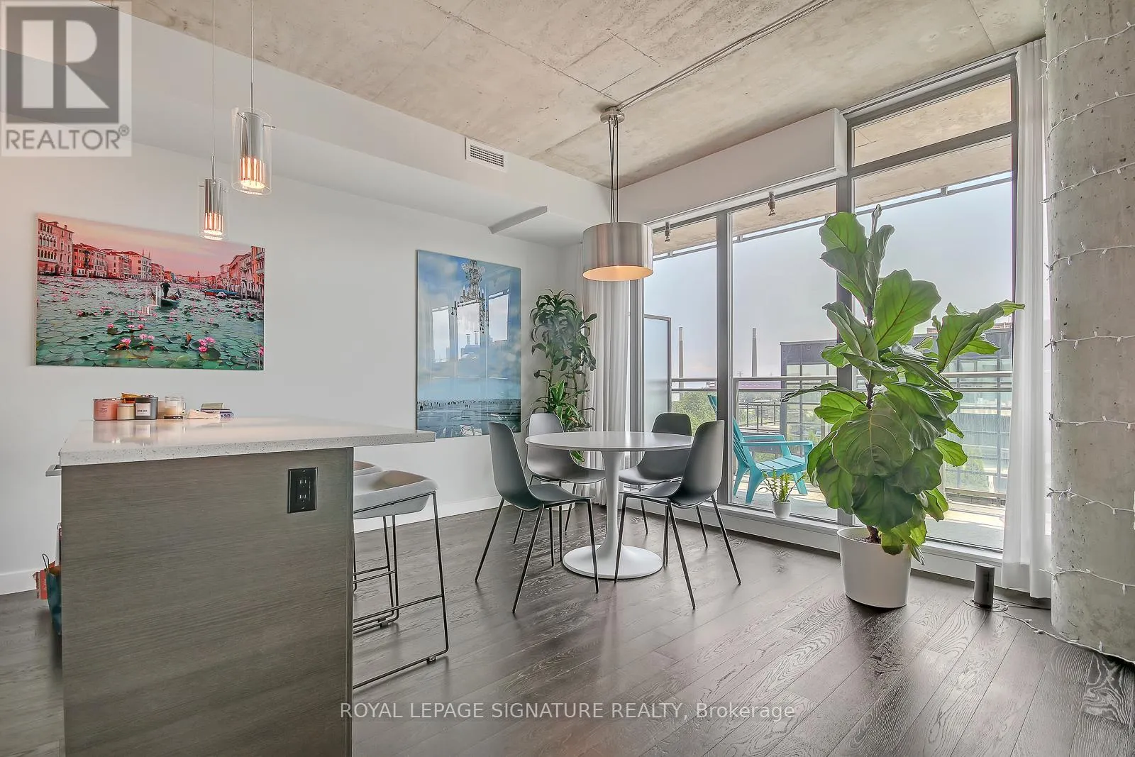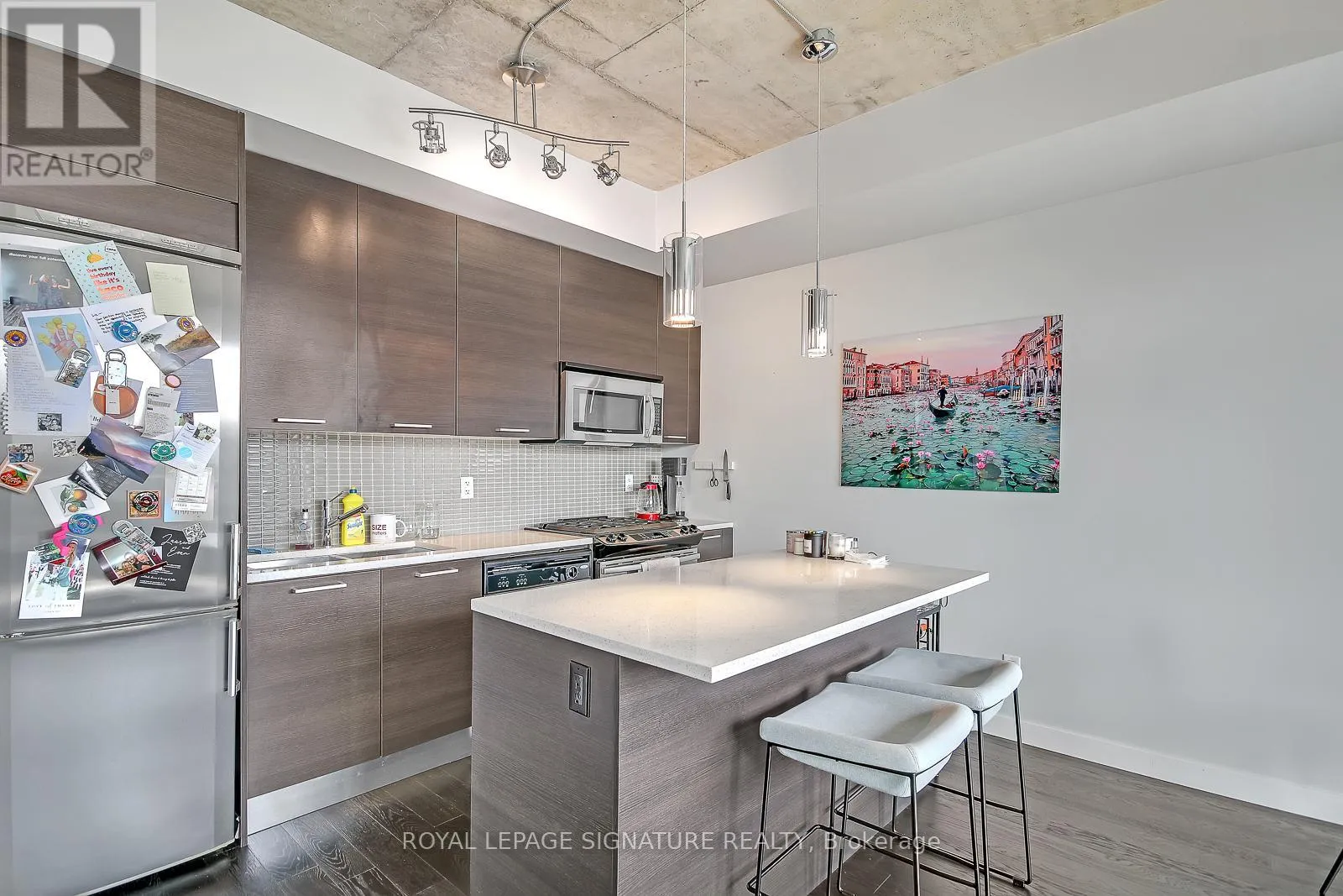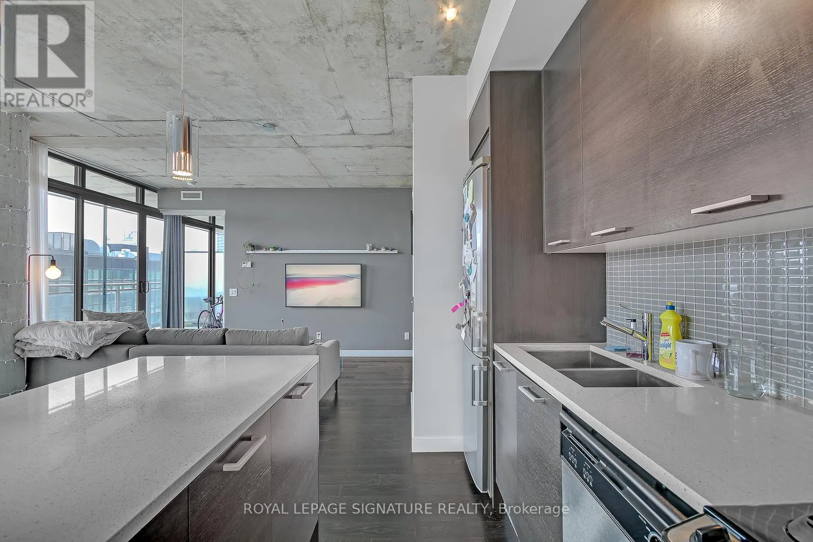 Queen & Broadview *FULLY FURNISHED* With Parking & Internet included. Welcome to "The Ninety" an Exclusive Modern 1 Bdrm + Den Unit In One Of Toronto's Most Desirable Buildings And Neighbourhoods! Functional Floor Plan With 10' Exposed Concrete Ceilings. Scavolini European Kitchen W/ Breakfast Bar, Gas Stove, And Spa Inspired Bathrooms. Sub Penthouse Includes A Large Primary Bedroom W/ Wall To Wall Closets And An Oversized Den. Sunny, Quiet & Huge Terrace W/ Spectacular East & West Views Of City & CN Tower W/Gas & Power Hook Up. Walk To Dining, Shops, TTC Transit, Parks & Easy Access To The DVP. Landlord to Cover Heat Pump Rental. (id:27476)