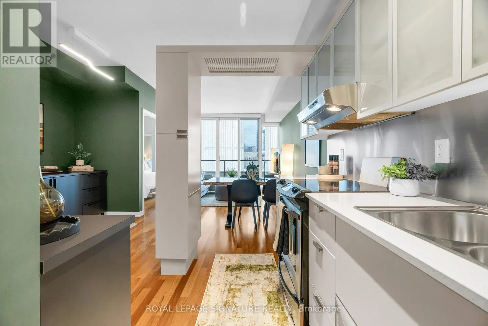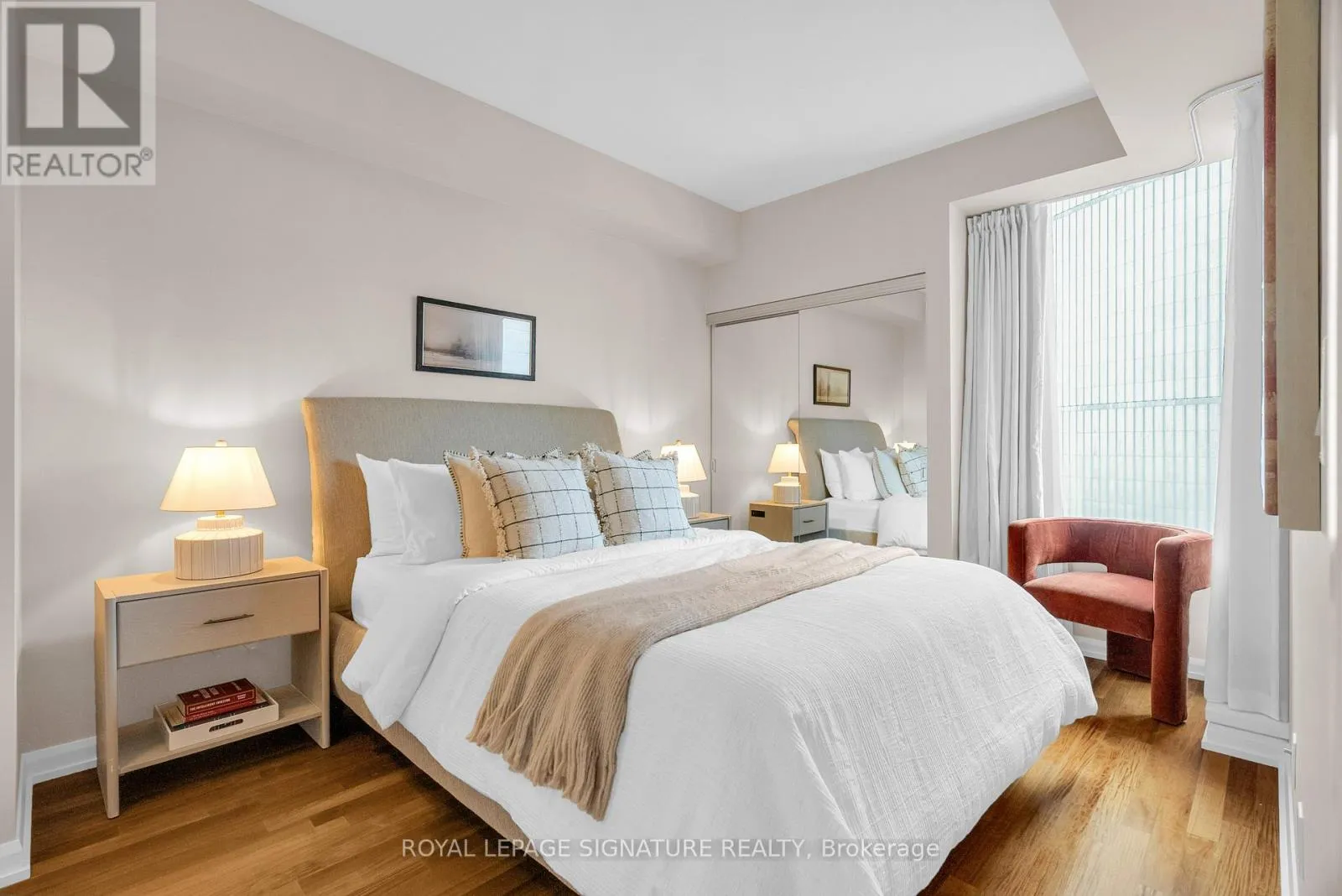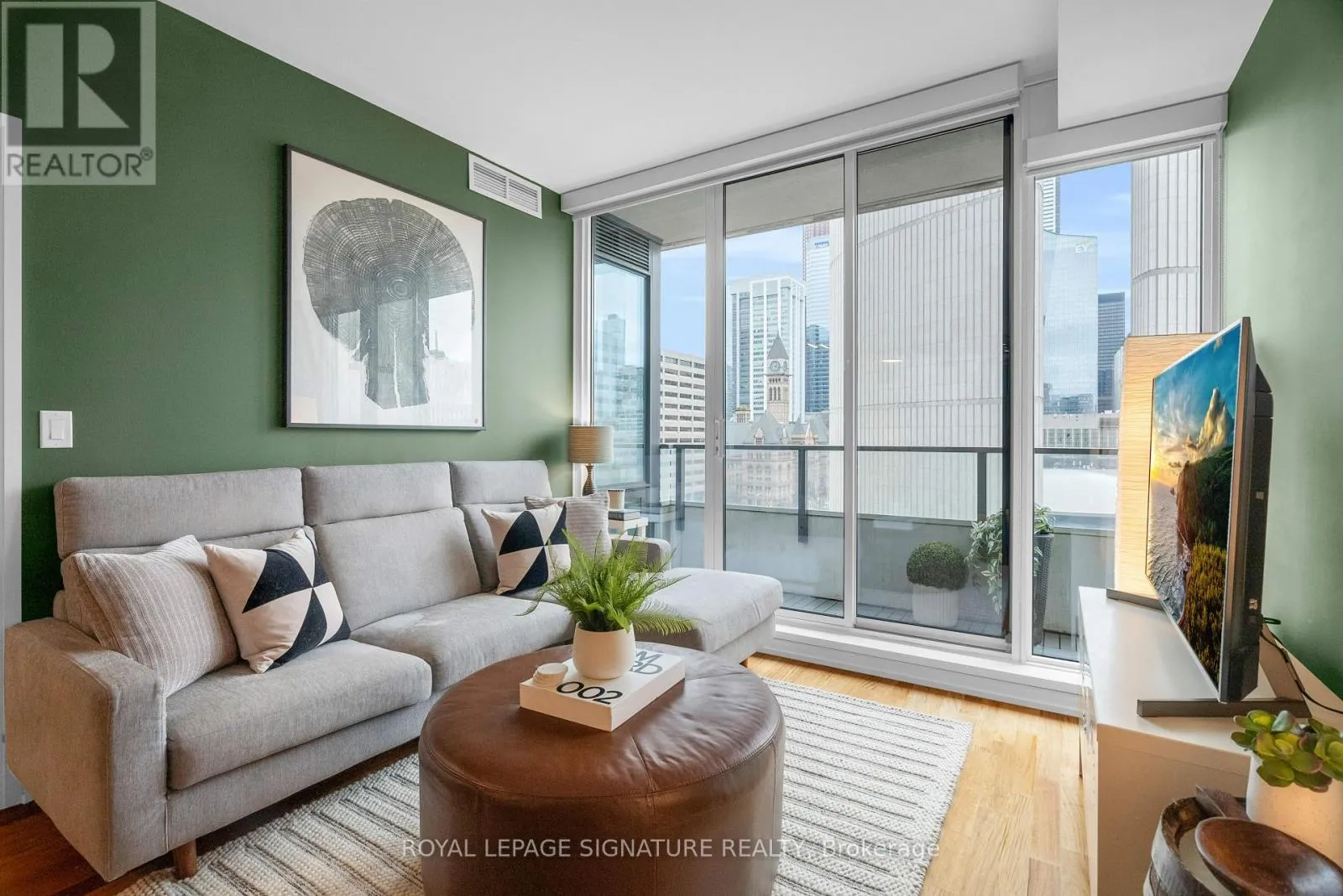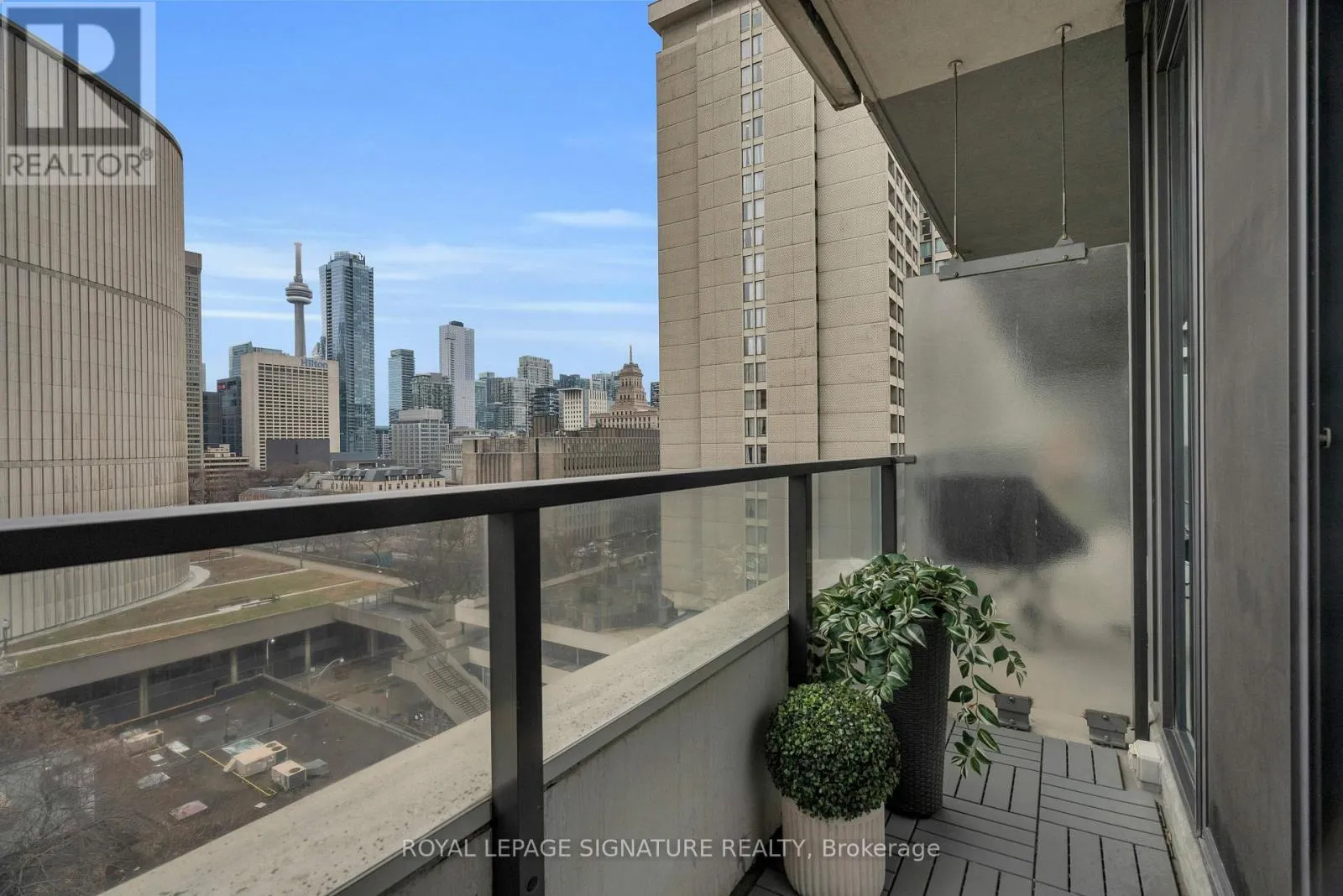 Dundas & Bay Discover elevated downtown living in this beautifully updated 1+1 bedroom, 2-bath suite with stunning south-facing views. Boasting 779 sq ft of thoughtfully designed space, this sun-drenched unit features engineered hardwood floors throughout, a sleek modern kitchen with stainless steel appliances, full oven, and quartz countertops, plus two recently renovated spa-like bathrooms with new modern vanities. Wake up to iconic CN Tower views from the generous-sized primary bedroom w/ a stunning ensuite. The spacious den, complete with custom closets, offers incredible versatility and can easily be converted into a second bedroom, home office, or nursery perfect for your evolving lifestyle. Step out onto the balcony to soak in the stunning city views or unwind in your open-concept living space flooded with natural light. Your new home will include a prime parking spot on P3, a large 6' x 6' locker conveniently located nearby, and an owned, upgraded heat pump (2024). Located in a well-managed building with a newly updated 24-hour concierge and security desk (2024), offering seamless package reception and secure delivery handling. Residents enjoy access to top-tier amenities: a pool, jacuzzi, sauna, updated gym (2025), and a stylish multi-purpose room with kitchen, boardroom, and two-level entertaining space. EV charging is available for installation at your parking spot. Perfectly positioned in one of Torontos most dynamic and connected neighbourhoods, this location offers a 99 Walk Score and 100 Transit Score. You're surrounded by Torontos top hospitals including Mount Sinai, Toronto General, SickKids, and St. Michaels. Directly next to Toronto City Hall and the Eaton Centre, and with a full-service Longos at the bottom of the building, every convenience is at your doorstep. Experience the best of city living with acclaimed restaurants, cafes, and attractions just around the corner. (id:27476)