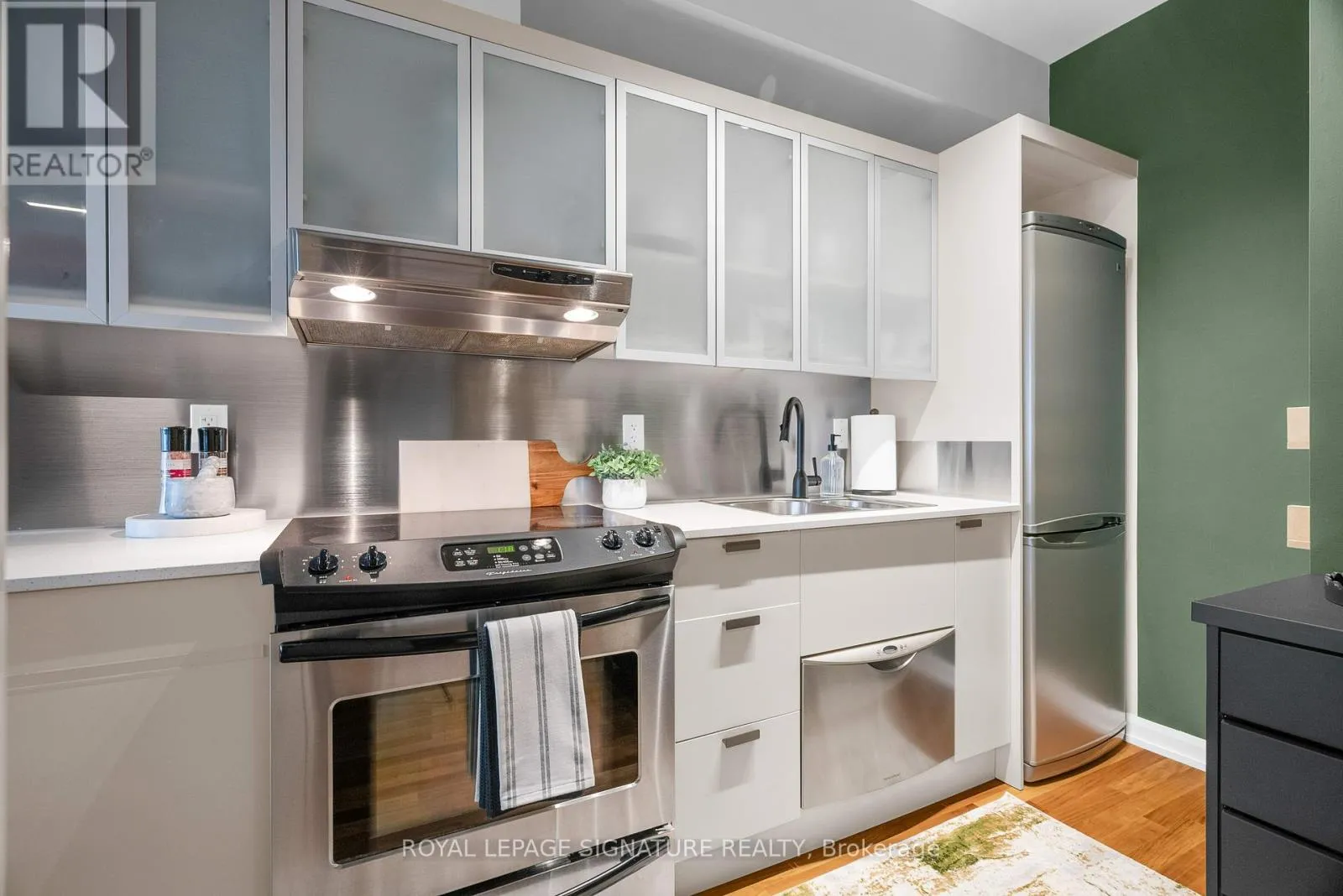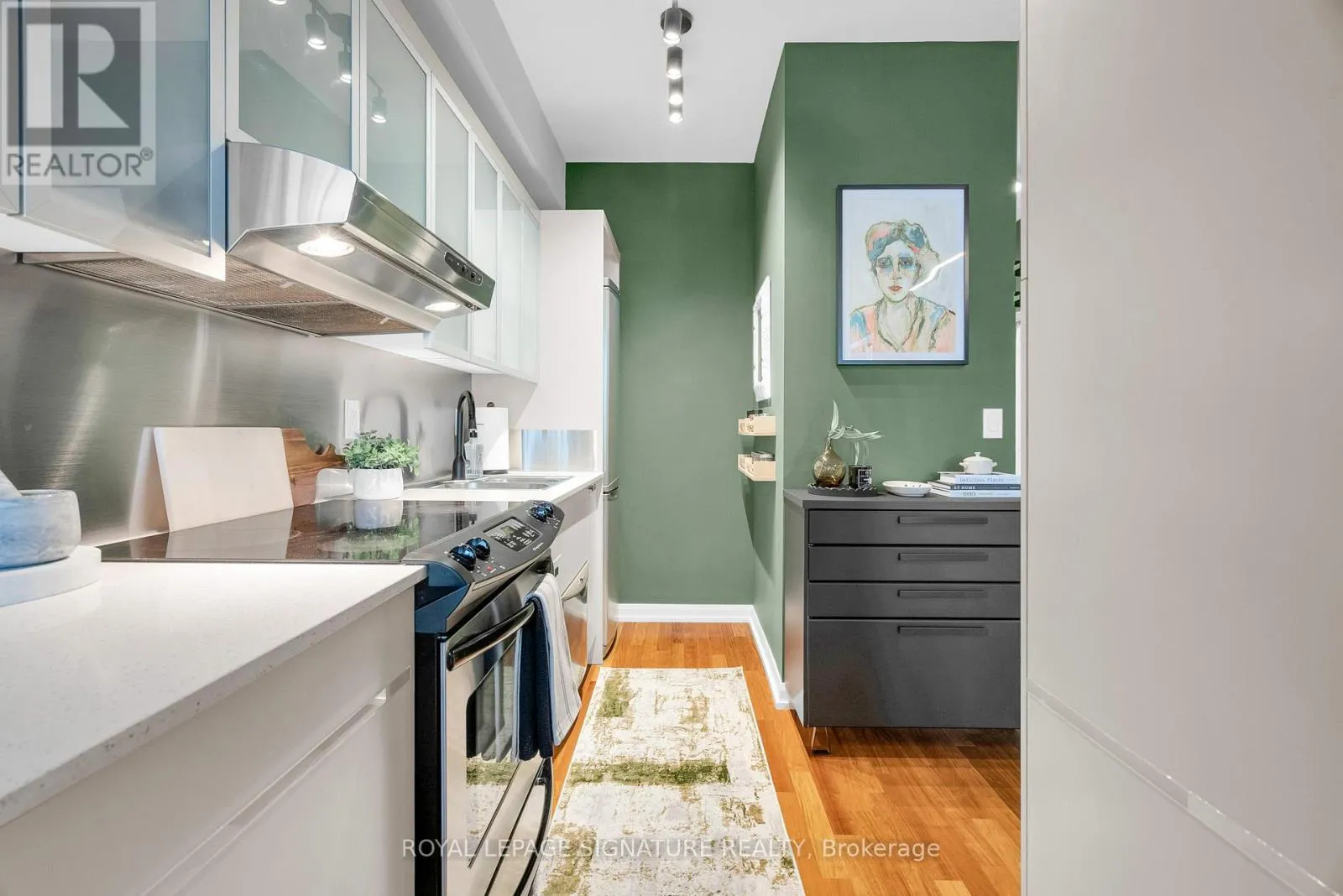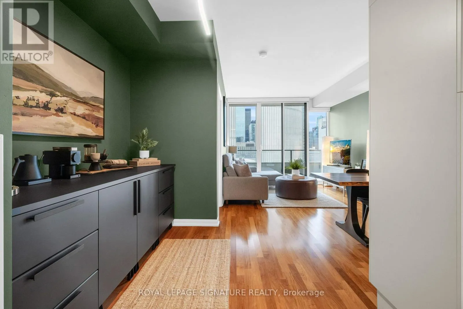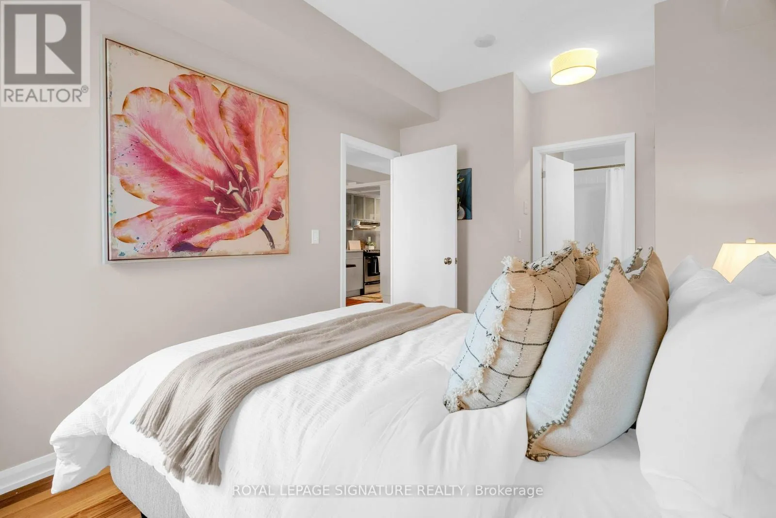 Dundas & Bay Discover elevated downtown living in this beautifully updated 1+1 bedroom, 2-bath suite with stunning south-facing views. Boasting 779 sq ft of thoughtfully designed space, this sun-drenched unit features engineered hardwood floors throughout, a sleek modern kitchen with stainless steel appliances, full oven, and quartz countertops, plus two recently renovated spa-like bathrooms with new modern vanities. Wake up to iconic CN Tower views from the generous-sized primary bedroom w/ a stunning ensuite. The spacious den, complete with custom closets, offers incredible versatility and can easily be converted into a second bedroom, home office, or nursery perfect for your evolving lifestyle. Step out onto the balcony to soak in the stunning city views or unwind in your open-concept living space flooded with natural light. Your new home will include a prime parking spot on P3, a large 6' x 6' locker conveniently located nearby, and an owned, upgraded heat pump (2024). Located in a well-managed building with a newly updated 24-hour concierge and security desk (2024), offering seamless package reception and secure delivery handling. Residents enjoy access to top-tier amenities: a pool, jacuzzi, sauna, updated gym (2025), and a stylish multi-purpose room with kitchen, boardroom, and two-level entertaining space. EV charging is available for installation at your parking spot. Perfectly positioned in one of Torontos most dynamic and connected neighbourhoods, this location offers a 99 Walk Score and 100 Transit Score. You're surrounded by Torontos top hospitals including Mount Sinai, Toronto General, SickKids, and St. Michaels. Directly next to Toronto City Hall and the Eaton Centre, and with a full-service Longos at the bottom of the building, every convenience is at your doorstep. Experience the best of city living with acclaimed restaurants, cafes, and attractions just around the corner. (id:27476)