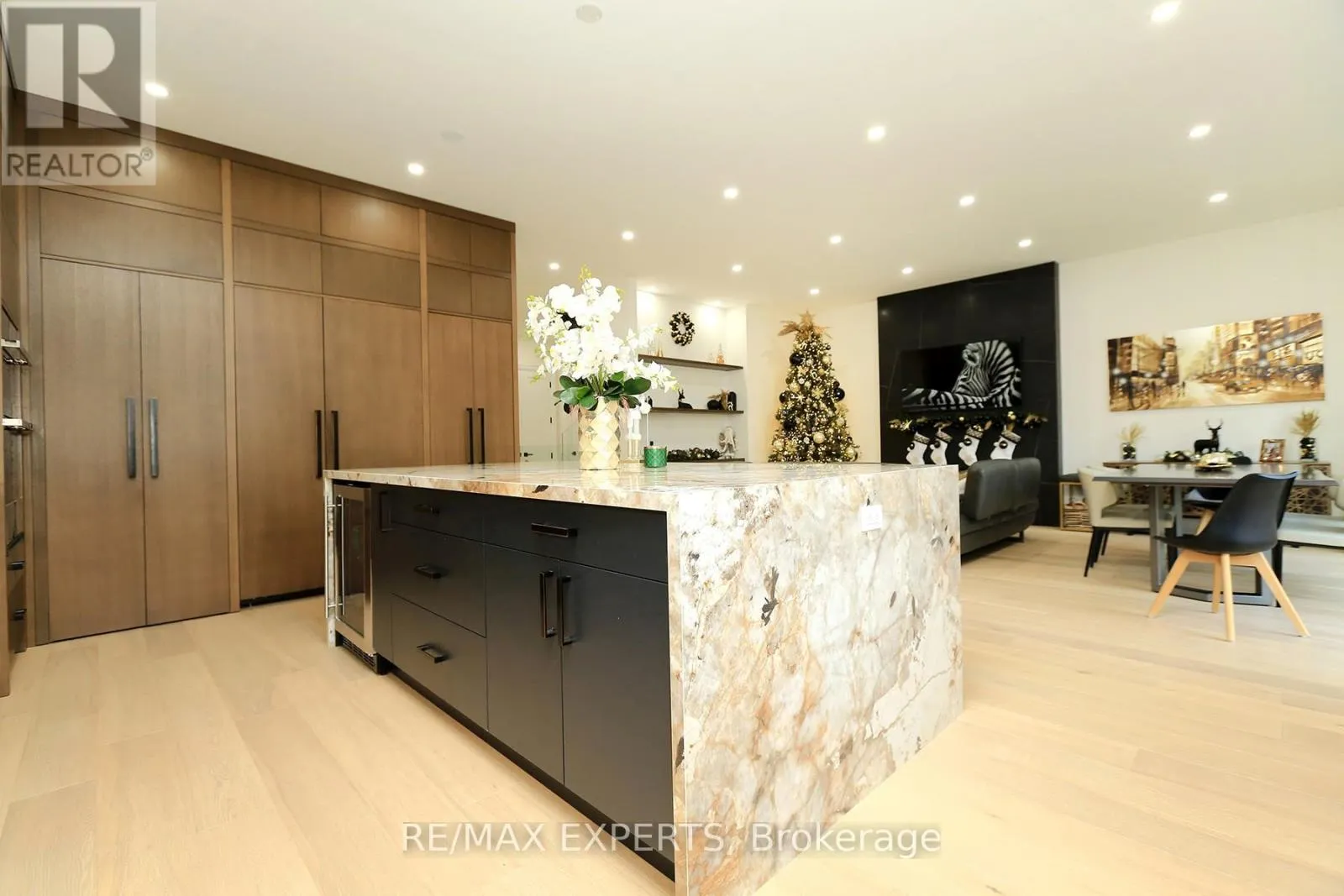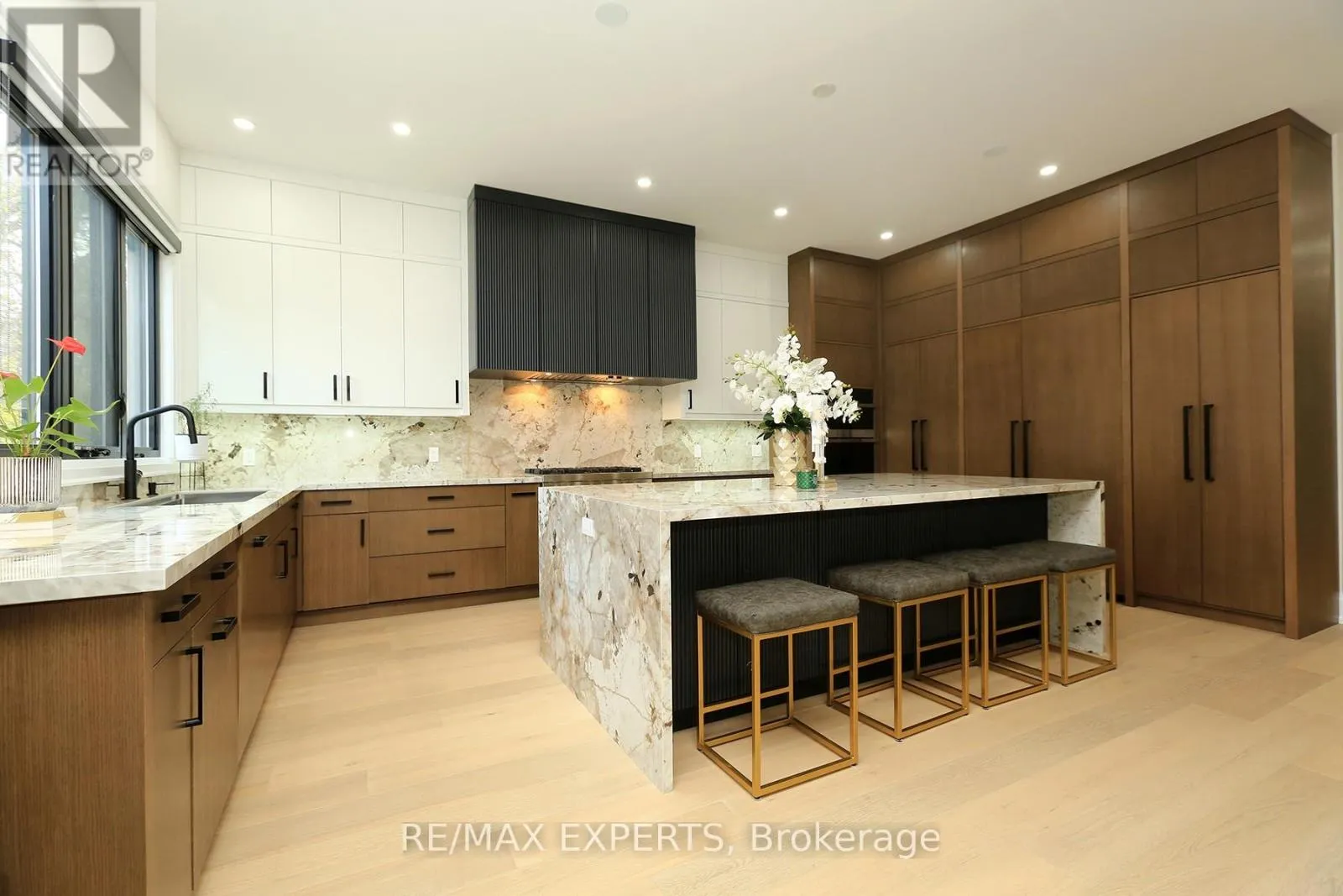 Brownsline and Valermo This 4 bedroom, 5-bathroom home seamlessly blends the warmth of a modern residence with the clean lines and open-concept design of modern living. Floor-to-ceiling windows flood the interior with natural light, creating a harmonious connection between indoor and outdoor spaces. The gourmet kitchen is both inviting and sophisticated, featuring an oversized waterfall porcelain island, hidden shelving, porcelain counter top and backsplash features a butlers pantry, professional appliances, and stunning designer lighting. Flowing effortlessly into the main floor family room, this space is enhanced by a grand fireplace, bold open shelving, and oversized retractable windows that open onto a covered backyard porch. The main floor also boasts a spacious dining and living area, a private office, and a mudroom with abundant storage conveniently located off the OVER SIZE SINGLE garage. The powder room adds to the homes thoughtful design. The primary suite is a peaceful retreat, featuring grand windows overlooking the backyard. Its luxurious walking closet hidden behind the headboard Five piece ensuite makes feel a luxury resort retreat .Three additional bedrooms, which one with its own private ensuite and 2 sharing a 4 piece washroom, provide comfort and privacy. A spacious and functional upper-level laundry room is conveniently located for easy access. The fully finished lower level offers exceptional versatility with a heating floors, full play room and ,family room, one 3 piece bathroom. Located in Alderwood, Etobicoke, this home is situated in a family-friendly neighbourhood with top-rated schools, parks, and a variety of amenities, offering the perfect blend of urban convenience and suburban tranquility. Easy access to highways and shopping mall (id:27476)