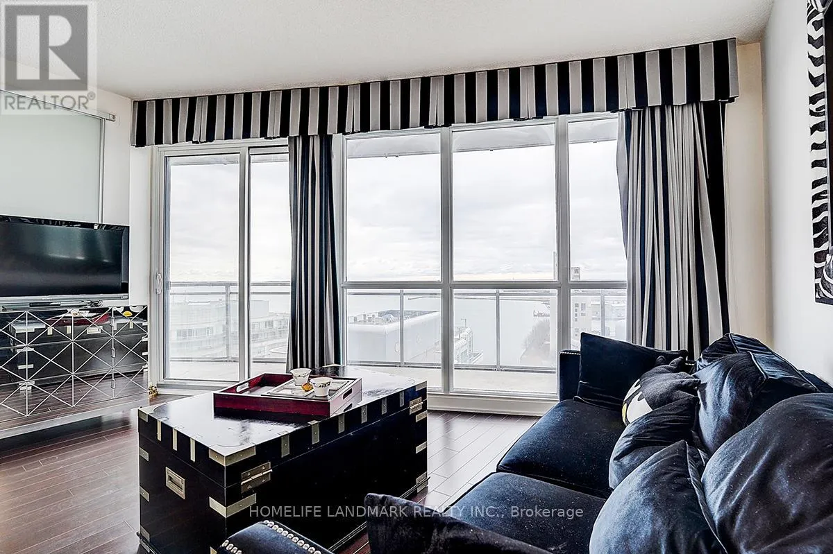 Bathurst/lakeshore very bright & unique 2+Den, 2 Bathroom corner suite offers unobstructed lake and city skyline views from every room, with a stunning wrap-around that perfect for morning coffees or evening sunsets. Bright and inviting with floor-to-ceiling windows, featuring a modern open-concept layout, two full bathrooms, and a versatile den that works perfectly as a home office or guest room. Along with million-dollar views, the building also offers great amenities, and with the waterfront, parks, transit, grocery stores, and downtown Toronto's finest attractions right at your doorstep, this is truly a must-see condo that blends lifestyle, comfort, and convenience. (id:27476)