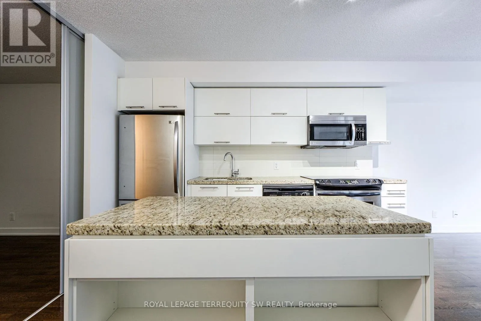 University/Adelaide Live A Truly Cosmopolitan Urban Lifestyle In The Entertainment District At Boutique Condominiums! Functional 2 Bedroom Plan, Nicely Finished With Wood Floors & 9 Ft Ceilings Throughout + Granite Counters, White Kitchen Cabinets, Subway Tile Backsplash & Centre Island. Kitchen & Bathroom Cabinetry Recently Updated. New Washer/Dryer Combo. Open Concept Living Room, Combined With Kitchen, Featuring Direct Patio Door Access To The Balcony. Large Primary Bedroom With 4 Piece Ensuite, An Additional Walkout To The Outdoor Space, And Also Featuring A Huge Walk In Closet. Fantastic Downtown Financial & Entertainment District Location With Perfect Walk Score & Steps From Subway, Theatres, Restaurants, Bars, King St W, Shopping, Markets & Across From The Shangri-La Hotel! Resort Style Amenities, Expansive Rooftop With Pool, BBQ's, Outdoor Cabanas, Bike Parking, Party Room & Fitness Centre! Downtown Living At Its Best! Make It Yours Today. (id:27476)
