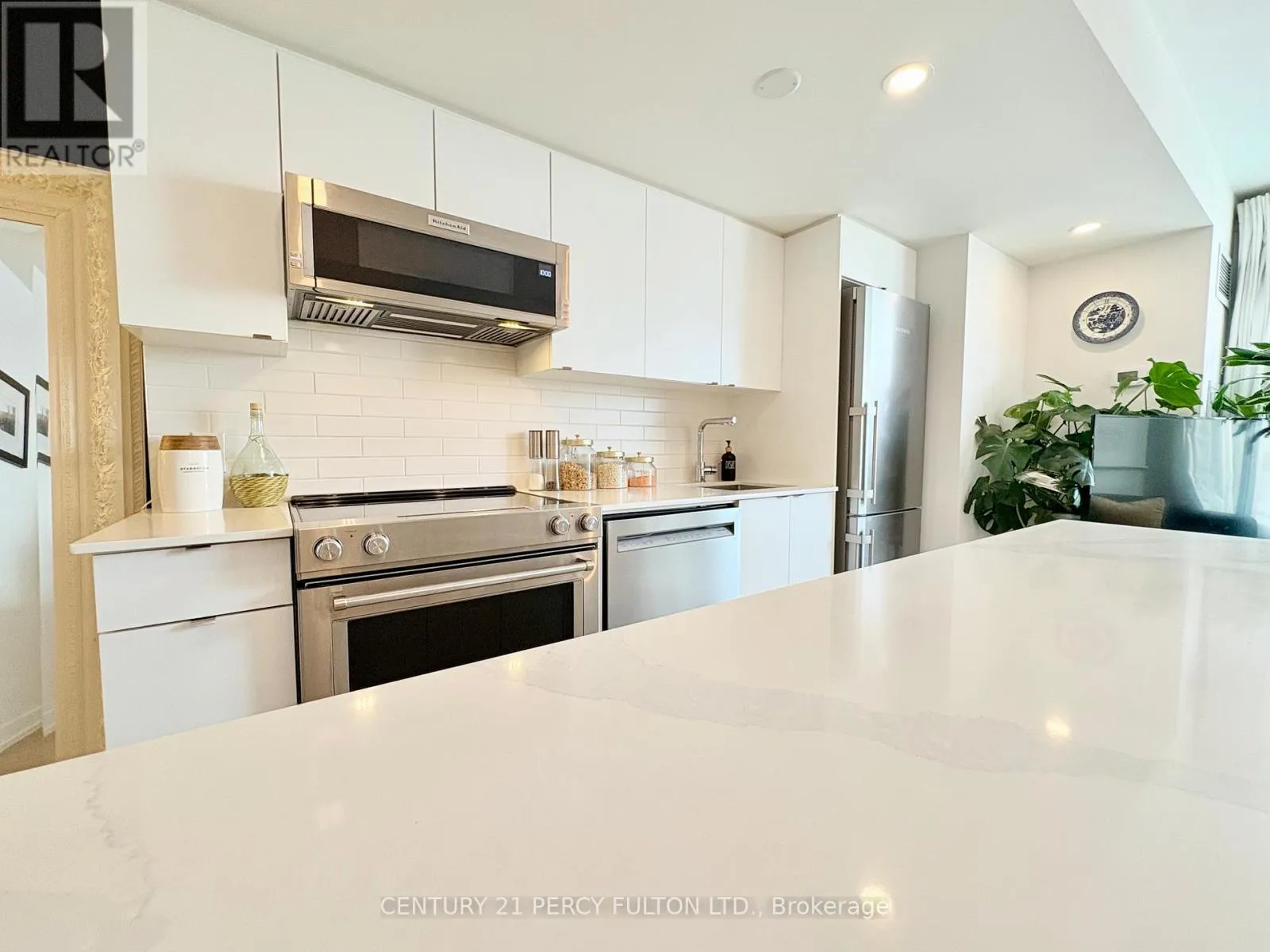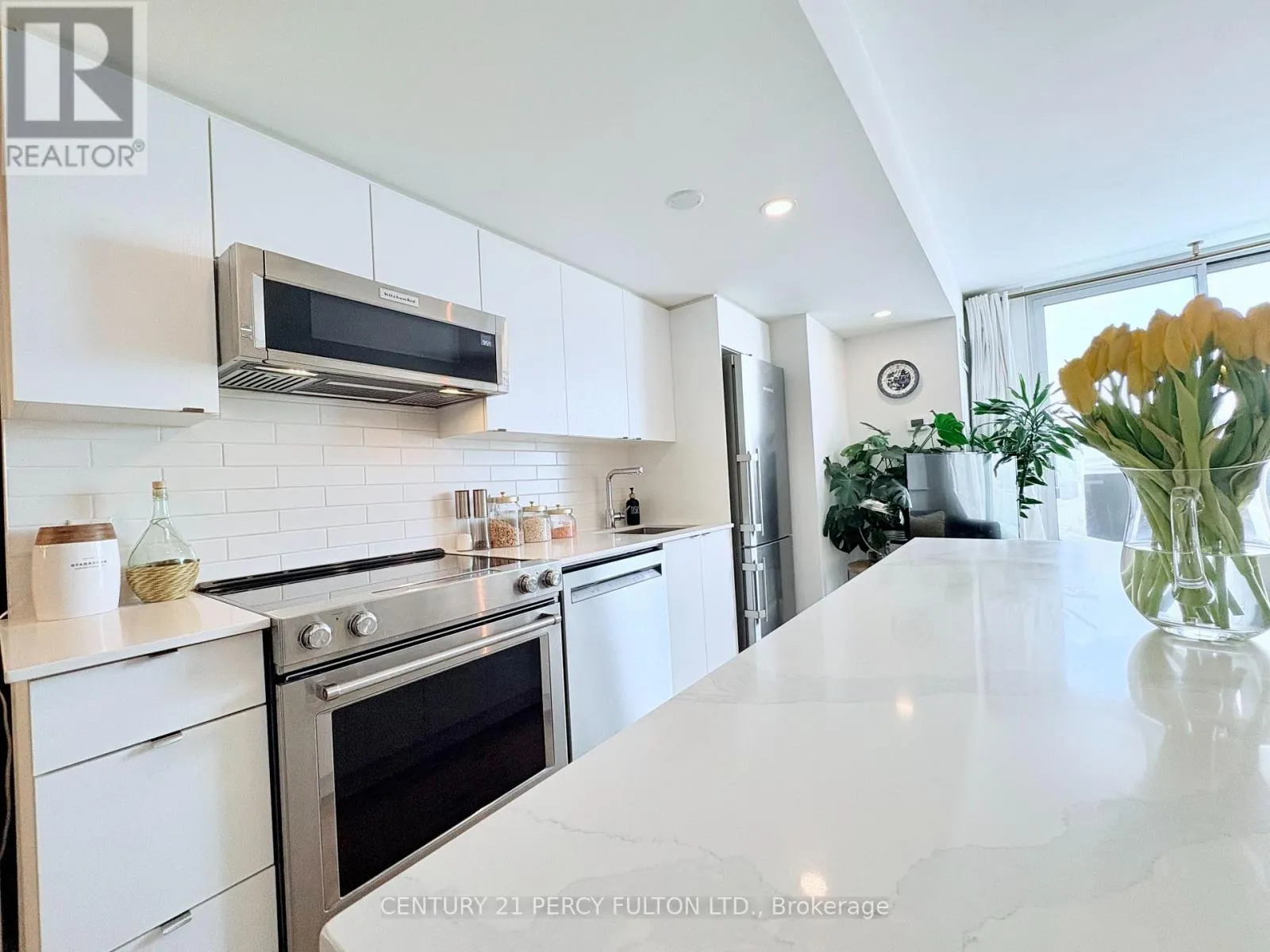 Cross Streets: O'CONNOR AND BERMONDSEY. ** Directions: DVP, EGLINTON EXIT EAST TO BERMONDSEY. Welcome to The Lanes, a boutique condo in East York. Beautifully upgraded 747sqft 2 bedroom, 2 bathroom sunlit corner unit with wrap around south-western facing terrace. Bright kitchen features a custom 6ft waterfall island with seating for 4, tons of storage and upgraded KitchenAid appliances. Wide plank oak hardwood flooring and LED pot lights throughout. Deluxe large capacity LG Steam washer and dryer. Walk-out to terrace from living room. Amazing views from entire suite. Primary bedroom features walkout to terrace, 8ft spacious closet and ensuite washroom featuring walk-in glass shower. 2nd bedroom boasts walk-in closet and large window. Be apart of a community within The Lanes Condo. Close walk to Topham Park and schools. Quick access to DVP/404. 1 Parking and 1 locker included. Dog friendly building. Amenities include guest suite, yoga studio, media room, party room, billiards and foosball table, visitor parking, Concierge (9-5), rooftop sun deck, BBQ area and fitness room with a view. Maintenance includes building insurance, common elements, heat, water, Rogers high speed internet and cable. (id:27476)