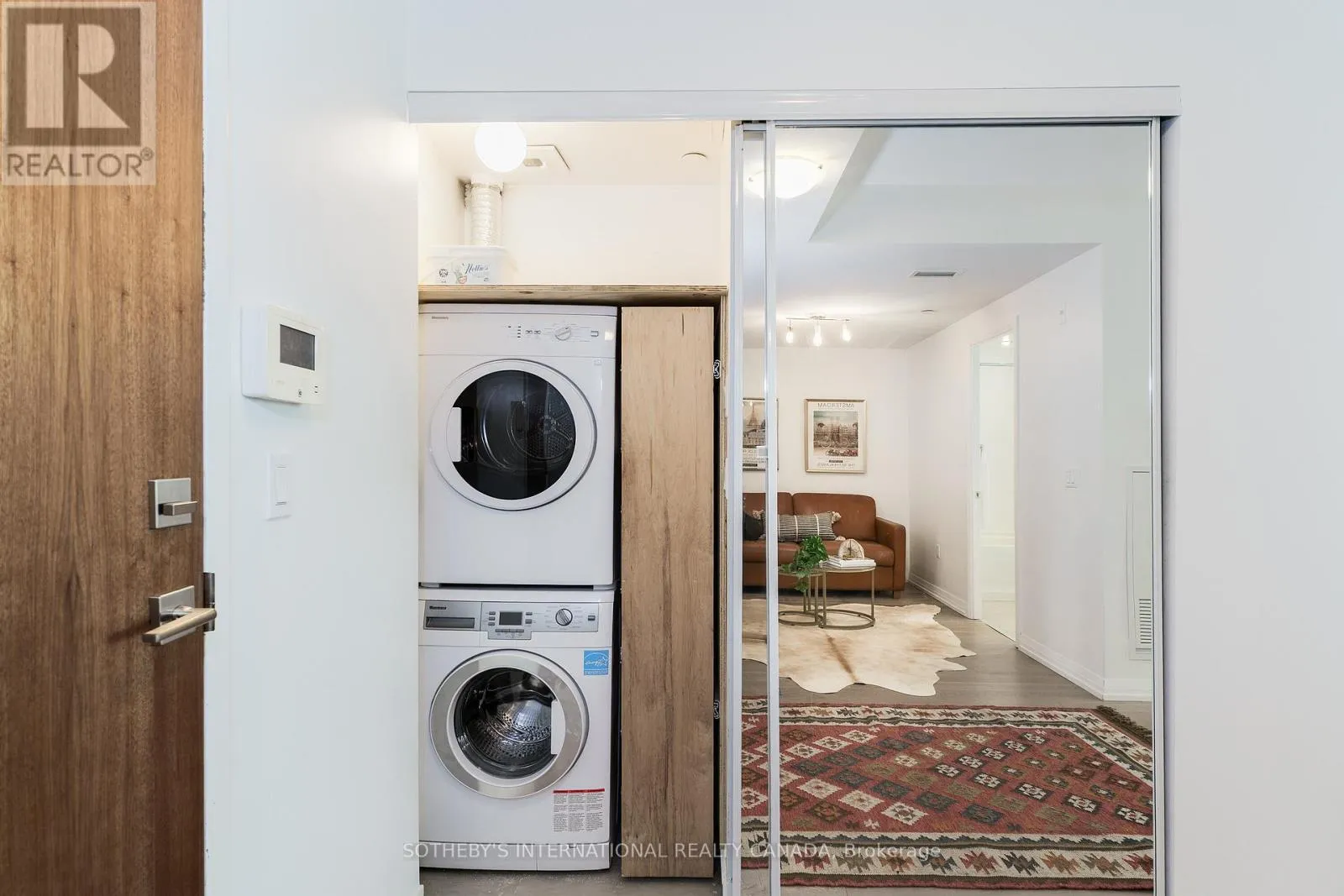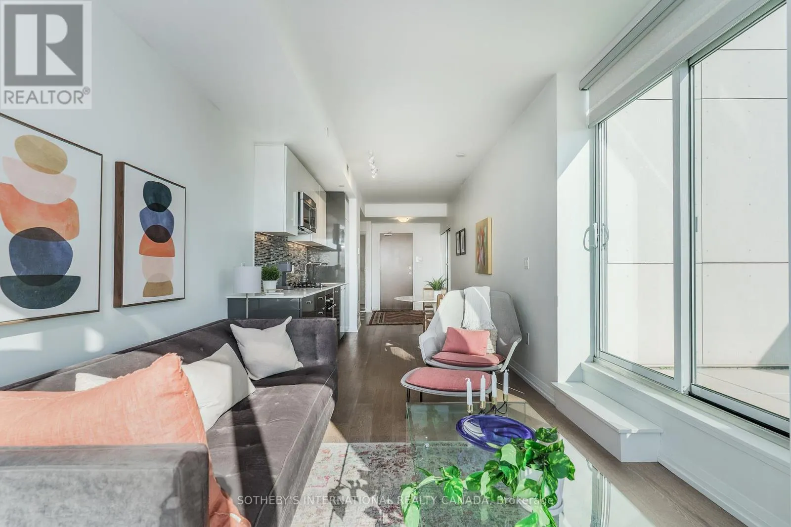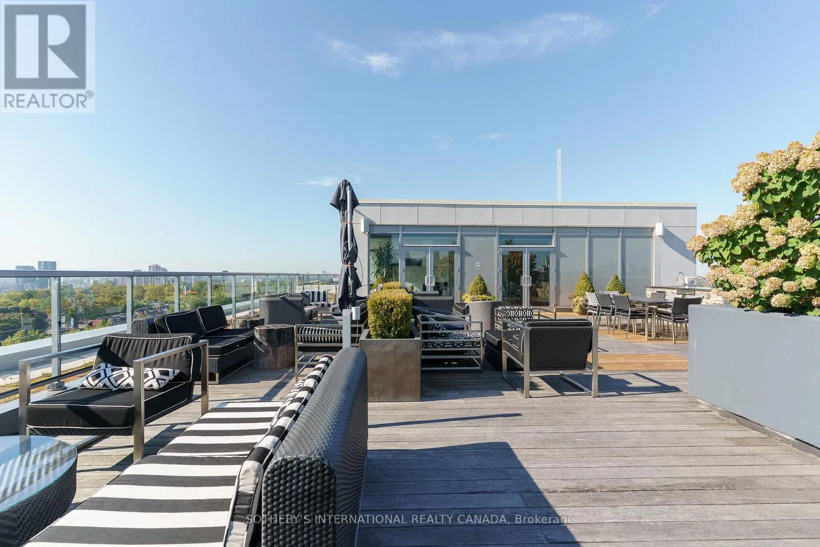 Cross Streets: St. Clair Avenue West at Winona. ** Directions: St. Clair Avenue West, west of Christie street, on north side. Welcome to The Nest Condos, Modern Living in the Heart of Hillcrest Village/Wychwood, This immaculate 1-bedroom plus den, 2 bathroom suite is nestled in one of Toronto's most vibrant and walkable neighbourhoods. Beautifully maintained, the condo features a spacious, open-concept layout with bright south-facing exposure that floods the space with natural light. Enjoy stunning views of the CN Tower and city skyline from both your living room window and private 96 sq. ft. balcony. The sleek, modern kitchen is outfitted with built-in European appliances, quartz countertops, an upgraded backsplash, and a gas cooktop-perfect for home chefs. Step out onto the oversized balcony, equipped with a gas BBQ hookup, ideal for outdoor dining and entertaining. The primary bedroom retreat includes a stylish 3-piece ensuite and a custom built-in closet. A separate Den and second full bathroom offer excellent versatility-perfect for guests, remote work, or additional living space. Residents enjoy access to premium amenities, including one of the city's best rooftop party rooms and patios with panoramic views. Located just steps from local shops, cafés, restaurants, bakeries, and the year-round Wychwood Barns farmers' market. You're also minutes from Corso Italia and within easy reach of public transit just 12 minutes to St. Clair West Station and 22 minutes to Yonge-St. Clair. This is a rare opportunity to own in a highly desirable boutique building in one of Toronto's most dynamic communities. Maintenance fees include gas and high-speed internet. (id:27476)