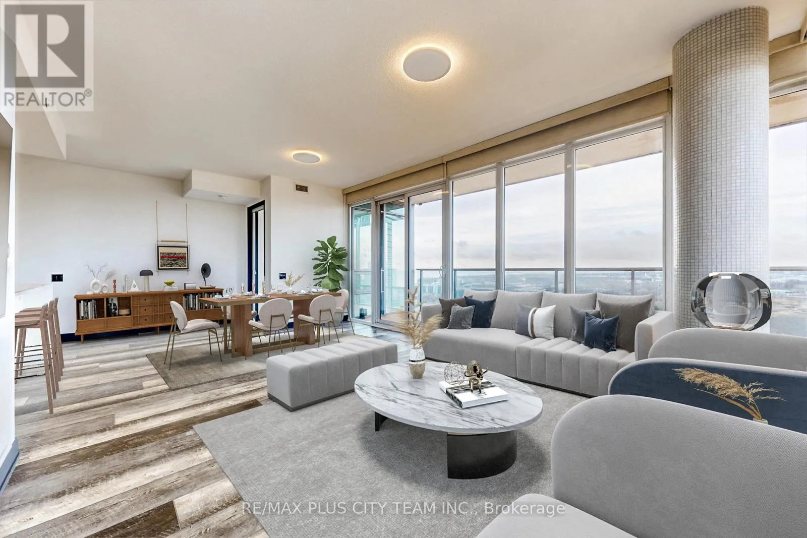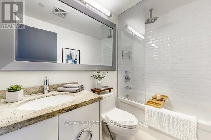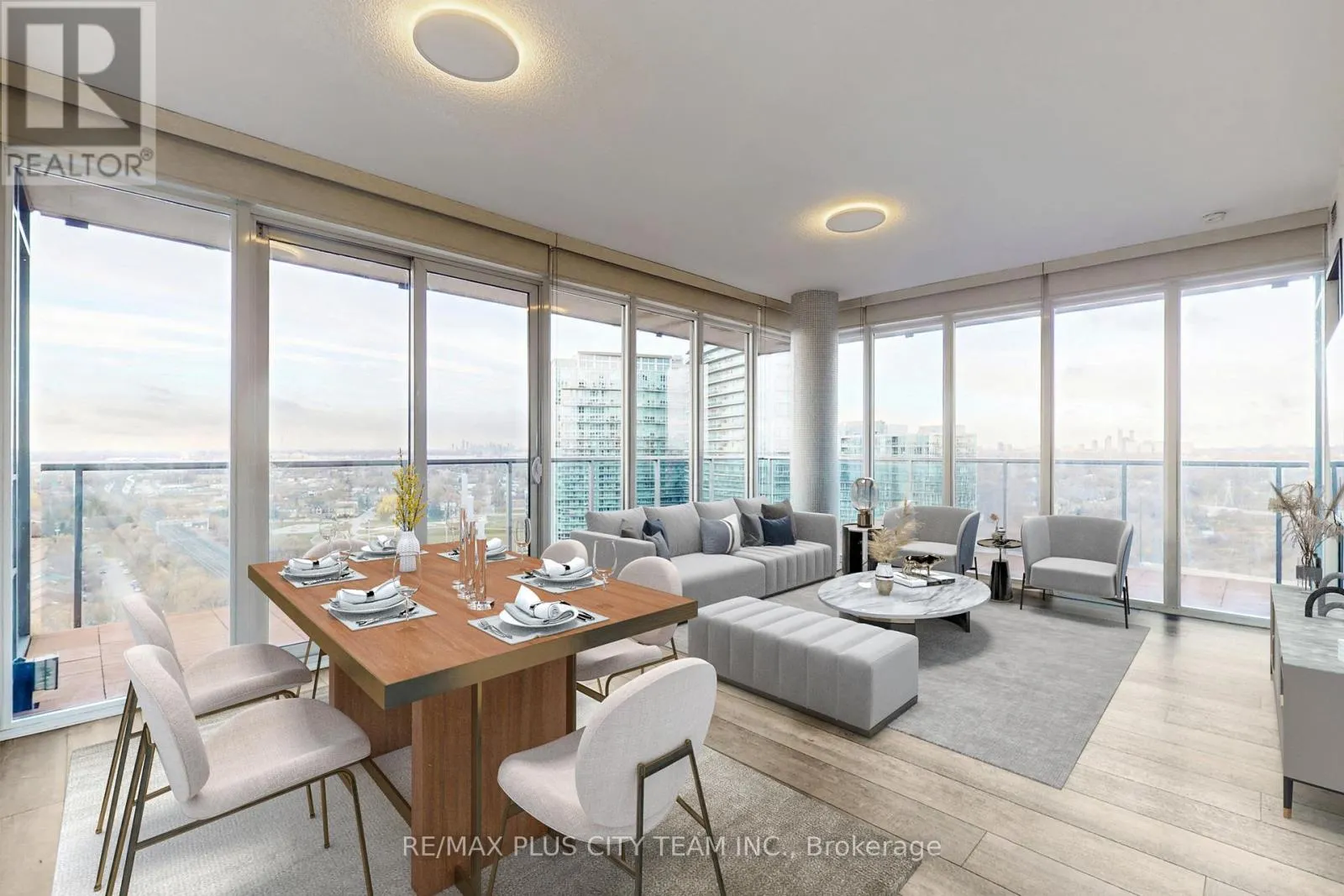 Park Lawn & Lake Shore Blvd W Welcome to The Collins, where Luxury Meets Lifestyle! This stunning 2-bedroom + den, 2-bathroom corner suite boasts 971 sq. ft. of well-designed living space, including a rare 237 sq. ft. wraparound terrace ideal for outdoor dining, entertaining, or simply unwinding in the fresh air. Inside, the open-concept layout is bathed in natural light, with a spacious living and dining area (24' x 13'4") that flows seamlessly into a modern kitchen featuring a full-size island with breakfast bar seating, sleek cabinetry, and premium finishes. The split-bedroom floor plan ensures added privacy and comfort for both residents and guests. The primary bedroom offers a serene retreat with a walk-in closet and a spa-like 4-piece ensuite. The second bedroom is bright and generously sized, complete with large windows and a full closet. A versatile den provides the perfect space for a home office, reading nook, or creative studio. Elegant, functional, and filled with natural this exceptional suite at The Collins is the perfect place to call home. **Please note that the photos are virtually staged (id:27476)