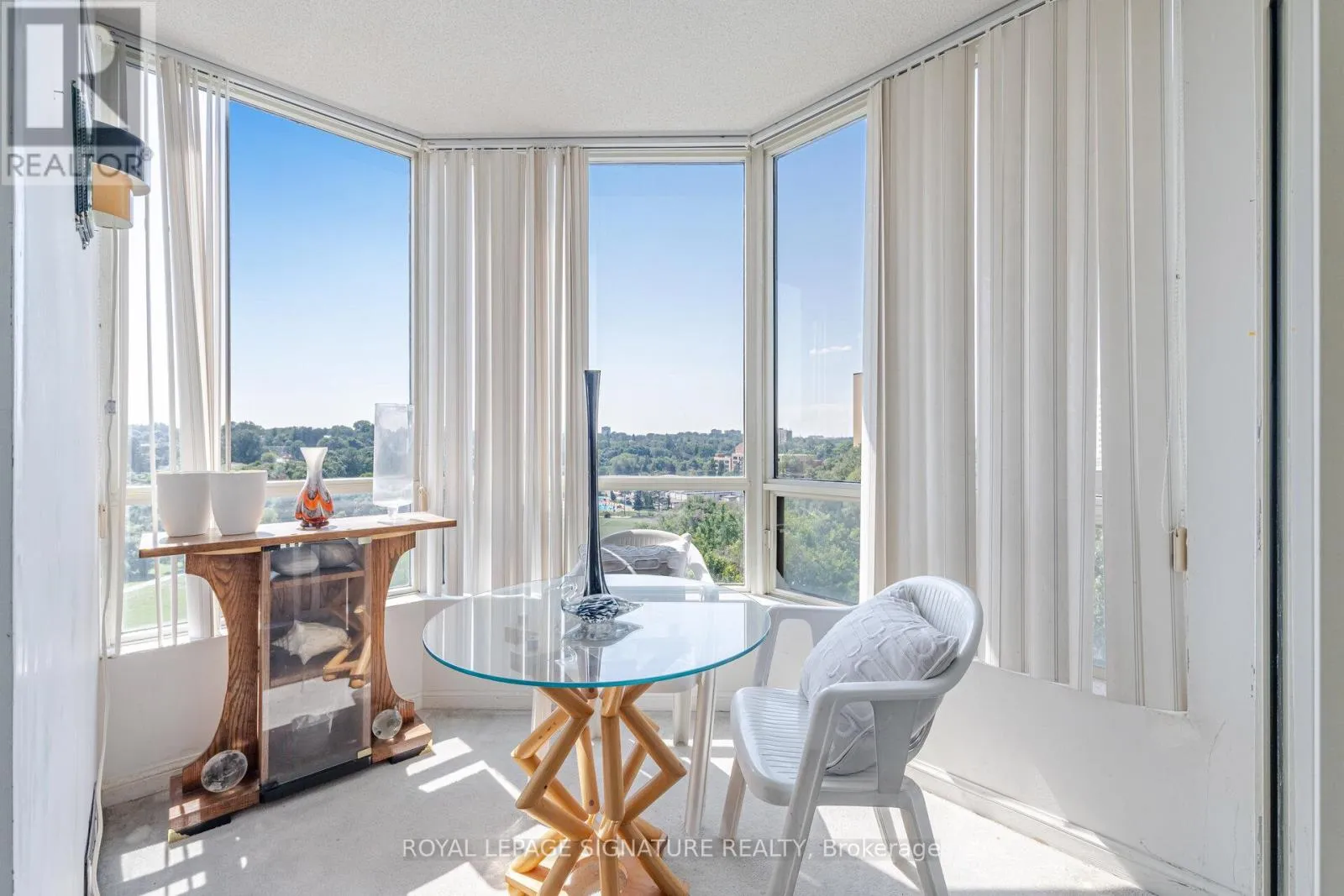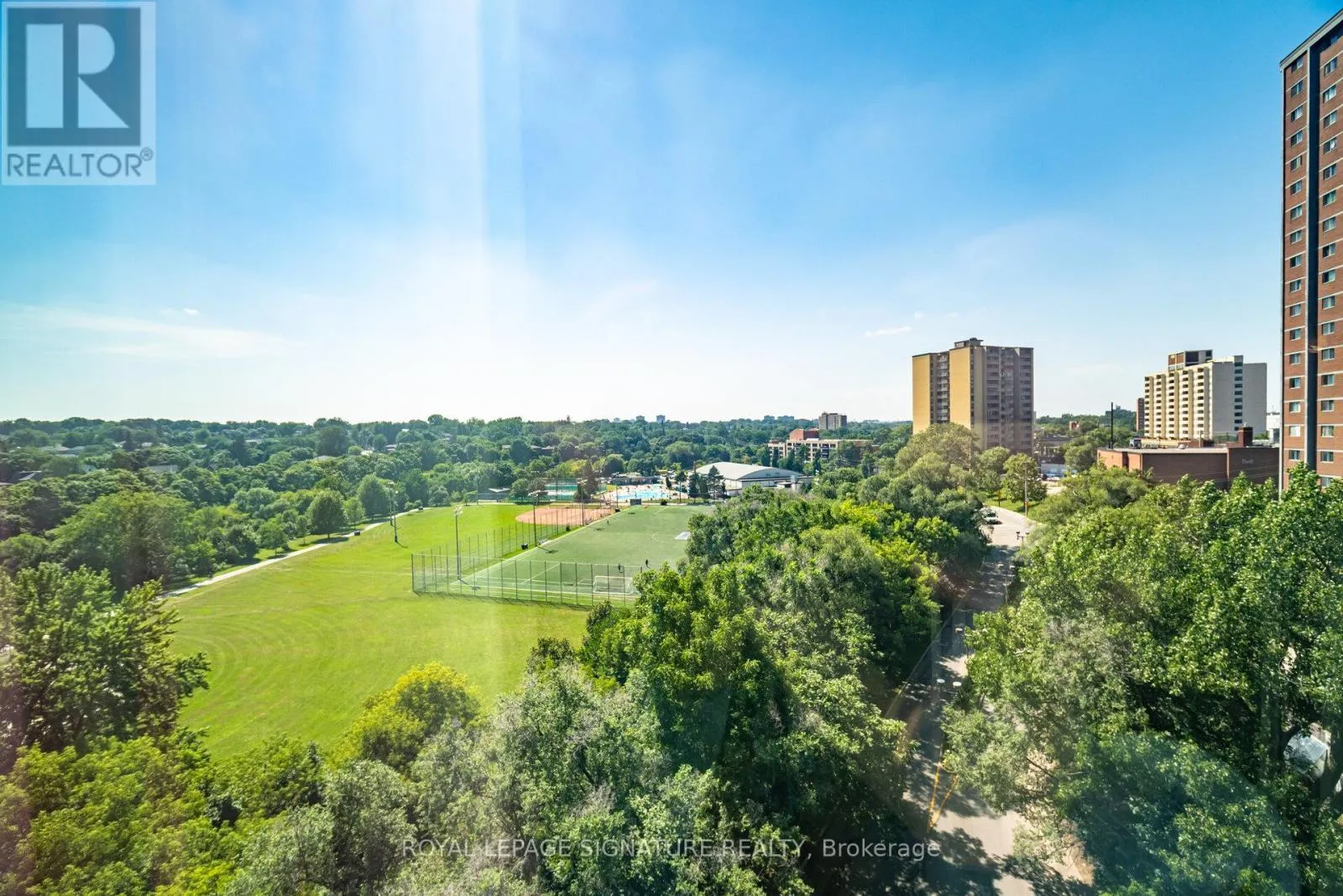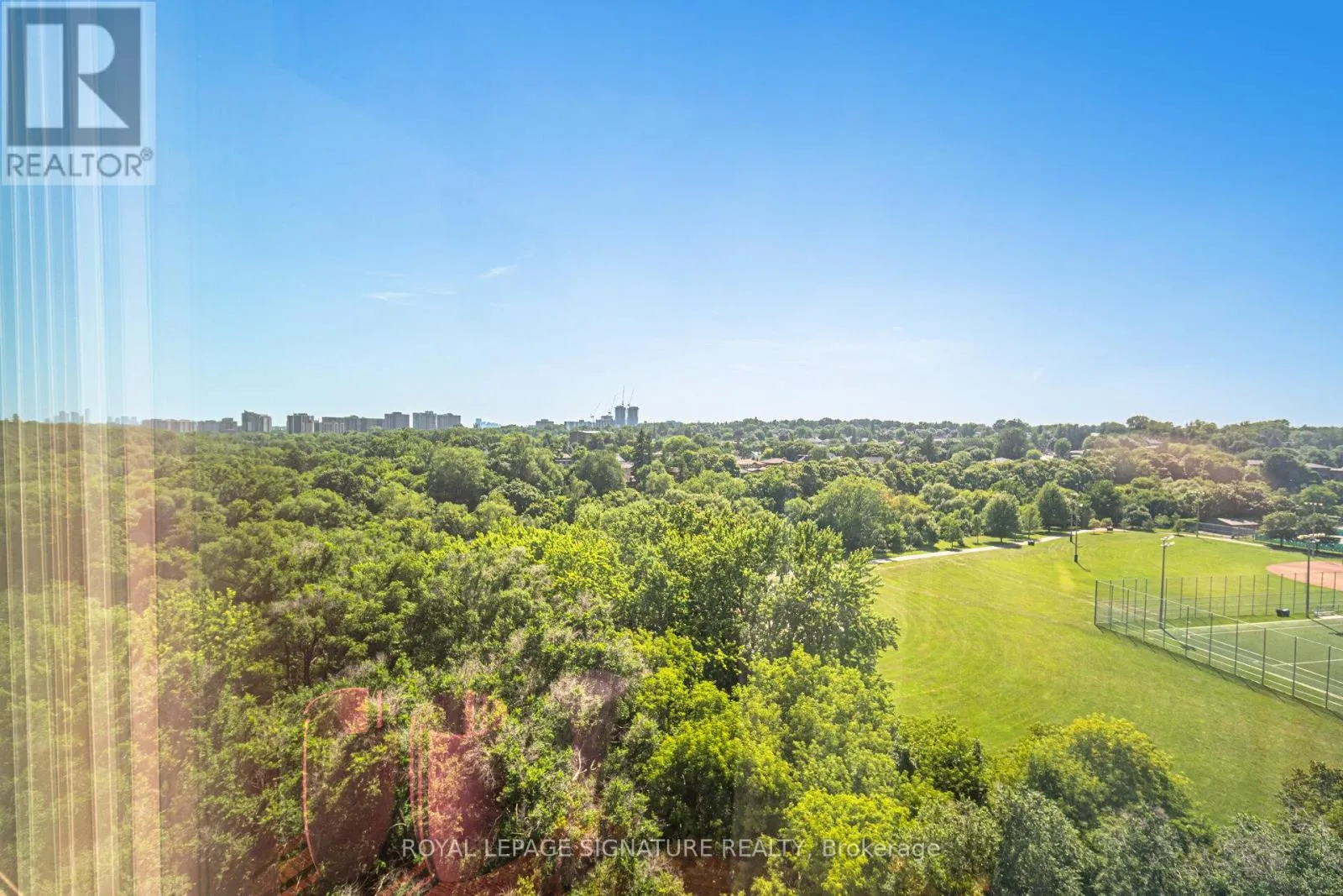 Lawrence / Weston Opportunity knocks, so open the door to this fabulous layout over looking Humber River Recreation Trails and Park. 2 Bedroom and 2 Full Bathrooms Condo just shy of 1000sqft. Large primary bedroom with 4pc Ensuite, His & Hers closets. Second children's bedroom + extra living space in bright and sunny den/ solarium. This is a wonderful clean slate to put your personal artistic touches and make this your dream home! Overlooking wonderful lush green vistas, this building has one underground parking and one storage. Incredible resort-like features: Concierge, Library, Party Room, BBQ Patio, Gym, Pool, Guest Suites, Sauna, Rooftop Garden, Tennis Court, Underground Parking and Visitors Parking. Minutes to 401 Hwy, UPExpress Go! Unit is sold "AS-IS" condition "Let's Make A Bond" (id:27476)