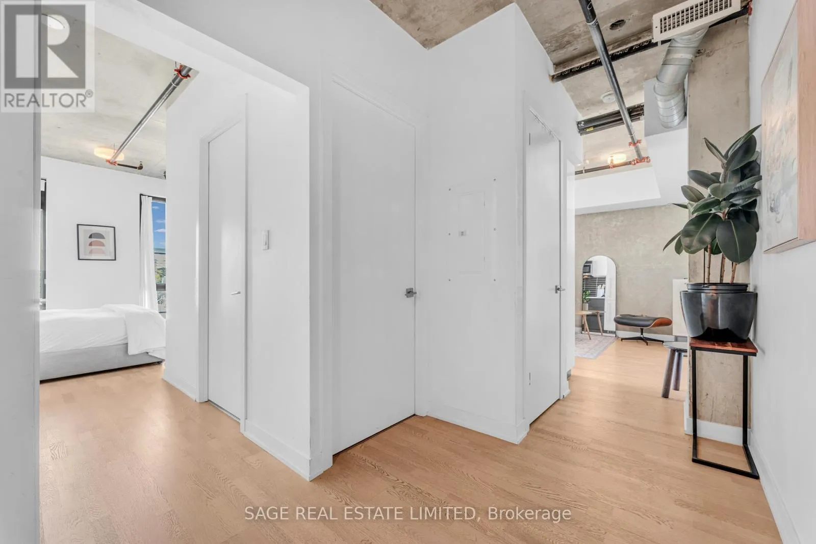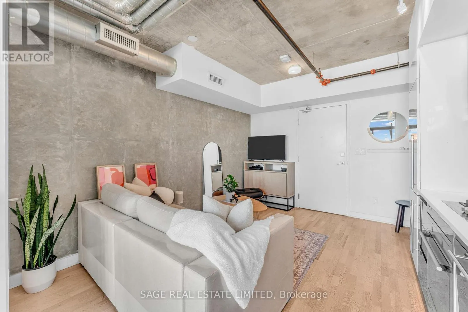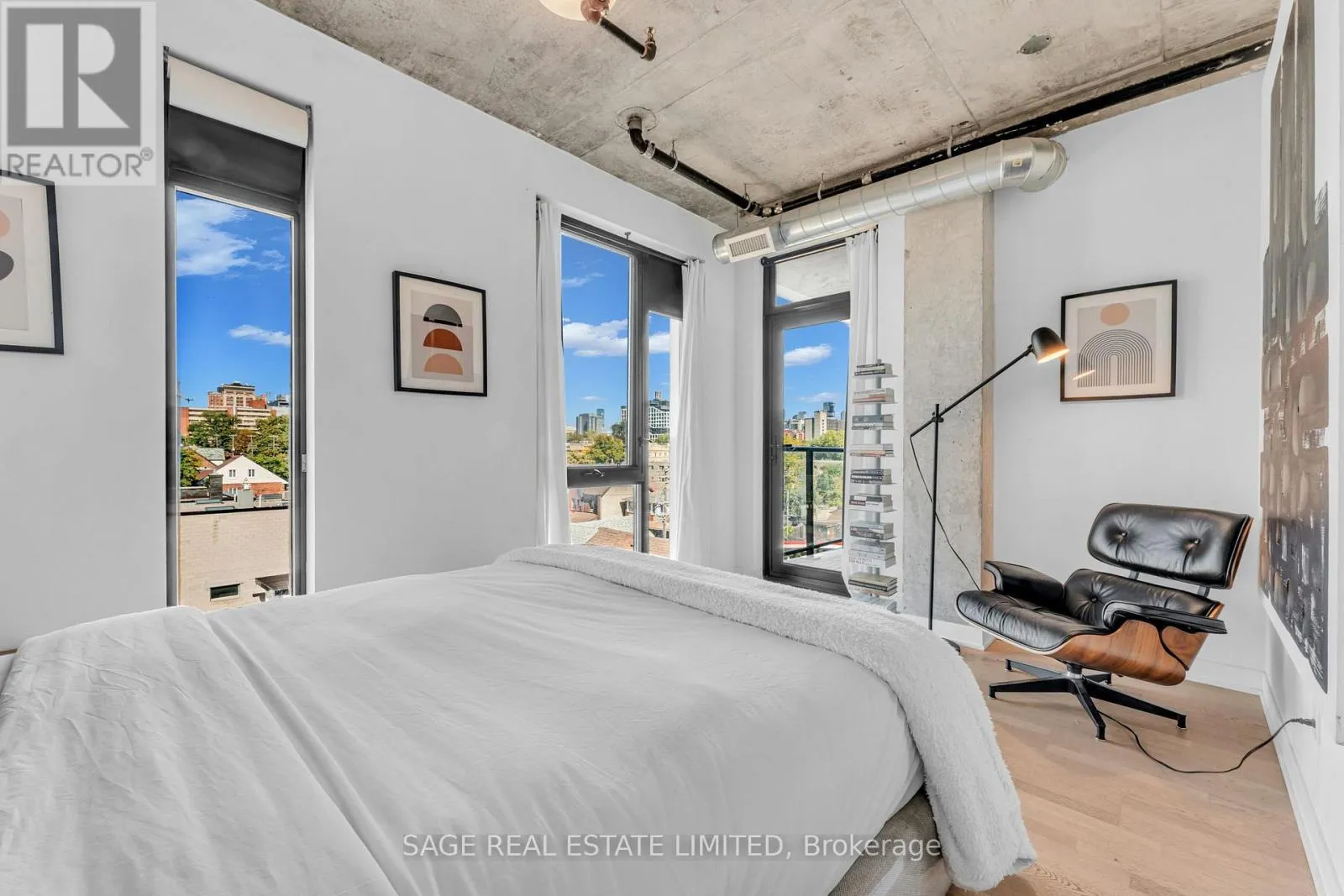 Queen & Bathurst Welcome to 109 Wolseley #502, a rare opportunity to live in one of Toronto's most intimate boutique loft residences, just steps from Trinity Bellwoods and Queen West. This 1-bedroom + true den (yes, it actually fits a guest nook or proper home office!) offers 600 sq. ft. of interior space with soaring 9 ft. ceilings, exposed concrete, and a sunlit east-facing city skyline view that will never be obstructed. The large primary bedroom comes with full-height windows, and the open living space flows seamlessly onto your private 50 sq.ft. balcony-complete with a gas BBQ hook-up for those epic summer nights.This boutique soft loft checks every box: Thoughtful layout with a versatile den, Gas BBQs permitted on balconies (rare find!), Amenities include a fitness room, rec lounge, and more. Perfectly positioned between Queen West's buzz and Trinity Bellwoods' greenery (id:27476)