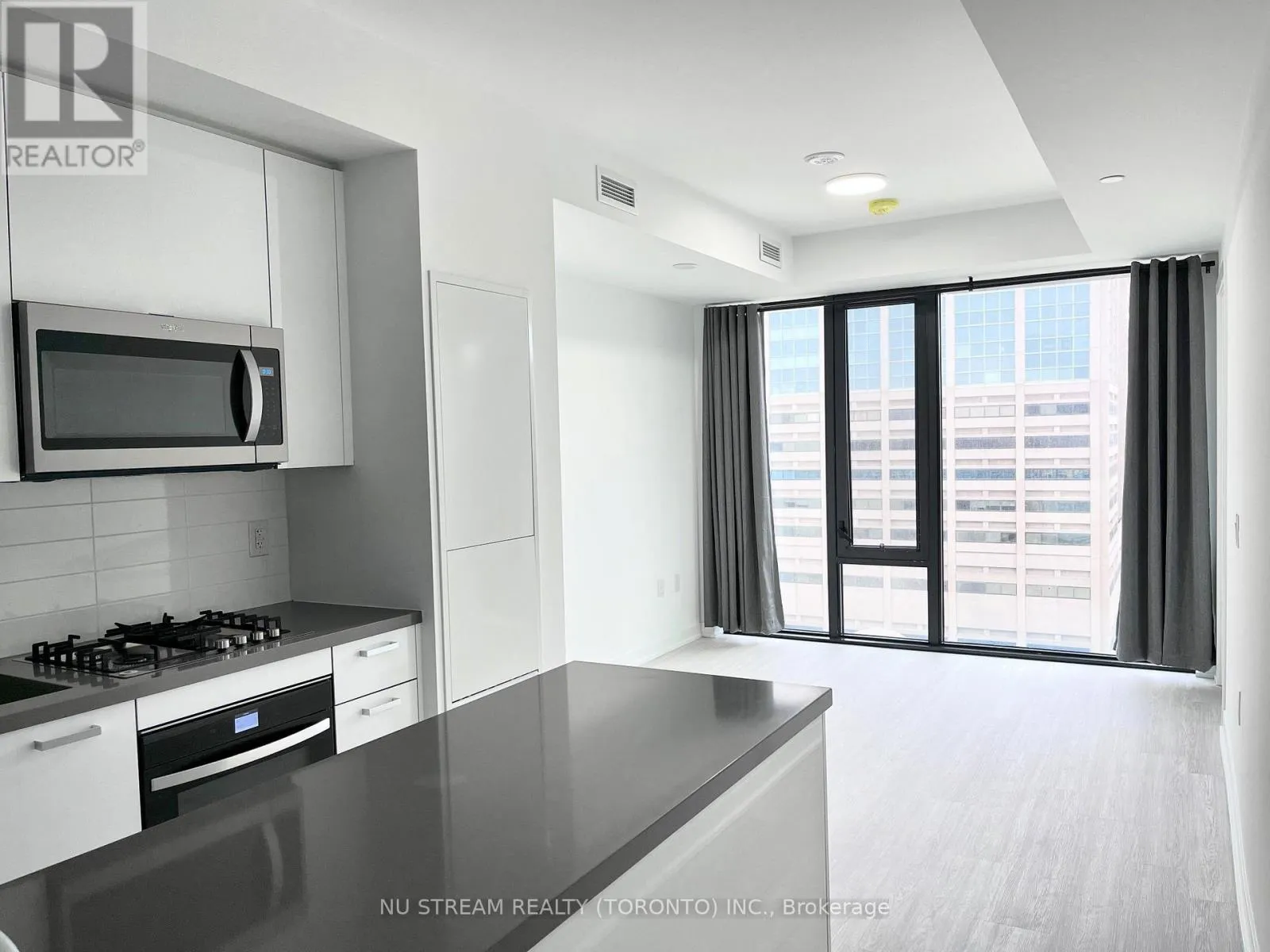 College St / University Ave Welcome to Bread Condo, a stylish one-year new residence in the heart of Downtown Toronto. Ideally located just steps from U of T, OCAD, Queen's Park, and St. Patrick Subway, its perfect for medical professionals, students, and families. Enjoy easy access to restaurants, cafes, bars, and shopping, all just a short walk away. This bright and spacious 3-bed, 2-bath corner suite boasts unobstructed CN Tower views, an open-concept layout, 9-ft ceilings, and floor-to-ceiling windows. The European-inspired kitchen features high-gloss cabinets, quartz countertops, a gas range, and stainless steel appliances, with a central island for added counter space. Premium finishes throughout complete this modern living space. Building amenities include 24/7 concierge, fully equipped fitness studio, co-working space, and tech center. Relax or entertain in the expansive sky park with lounge, BBQ, and dining areas. Upgrade features: Ceiling lights in all rooms; black-out curtains; premium coating finish for all walls and ceilings, high gloss kitchen cabinets, premium flooring. (id:27476)