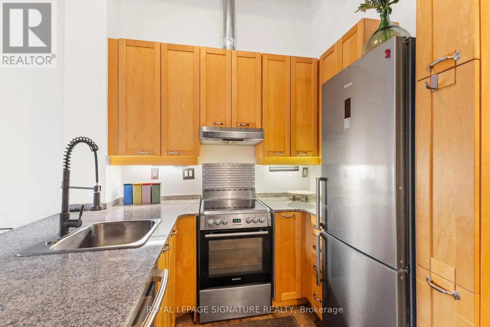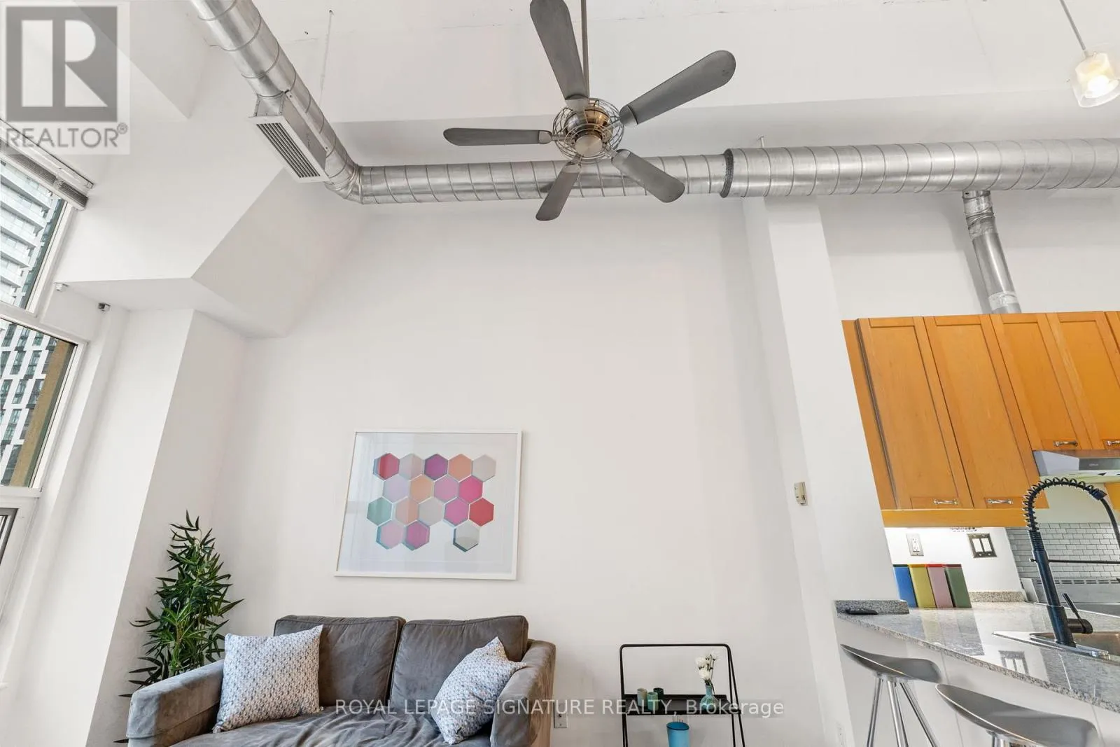 Church and Dundas Unit 404 at 135 Dalhousie Street, located in the iconic Merchandise Lofts, offers the perfect blend of industrial style and downtown Toronto living. This impressive 1-bedroom with open concept kitchen with soaring 14-foot ceilings, polished concrete floors, and a striking bank of south-facing windows that fill the space with natural light. The functional layout includes a spacious bedroom, a versatile den ideal for work or creative use, a modern 4-piece bathroom,ensuite laundry, and a dedicated locker for extra storage. Situated in the heart of the city,the Merchandise Lofts place you less than a 10-minute walk from Yonge-Dundas Square, TMU, the Financial District, Massey Hall, transit, shopping, and countless amenities. Residents enjoy world-class building features including a fully equipped gym, indoor pool, basketball court,games rooms, and an incredible rooftop patio complete with lounge areas, BBQs, and a dog-friendly play zone. Combining authentic loft character with unbeatable convenience, Unit404 delivers a true downtown lifestyle experience. (id:27476)