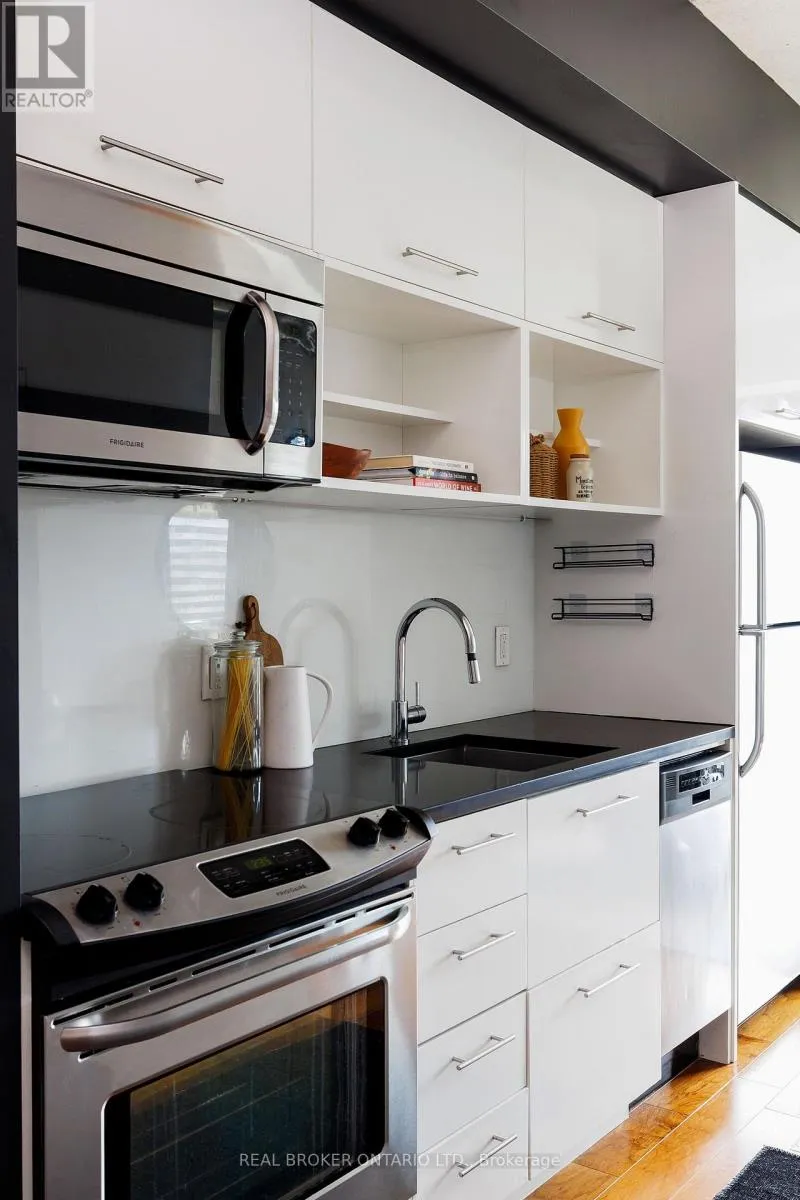 Cross Streets: King and River. ** Directions: South of King on Lower River. Trendy And Modern One Bedroom Condo In River City! Fantastic Green Building In Toronto's Don West Expansion, Surrounded By Green Spaces And Parks. Thoughtfully Laid Out Unit, With Open Concept Kitchen/Living Room/Dining Room, 9' Exposed Concrete Ceilings, Modern Kitchen, Huge Windows And A Juliette Balcony With A View Of The Cn Tower. Amazing Outdoor Pool, Well Equipped Gym, And Great Party Room For Entertaining! Walking Distance To Distillery District, Corktown, Shops, Cafes, Restaurants, George Brown, And Ryerson! (id:27476)