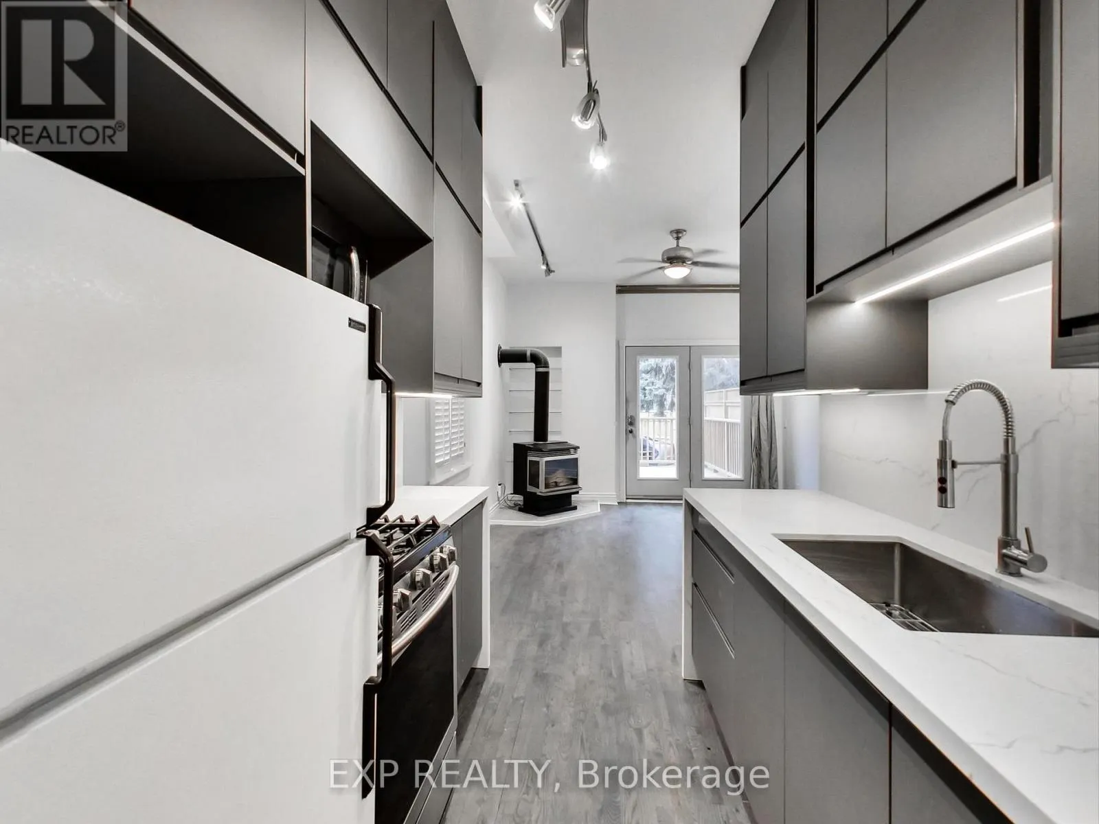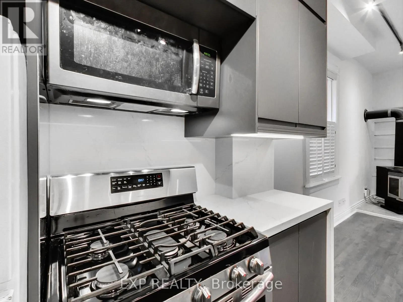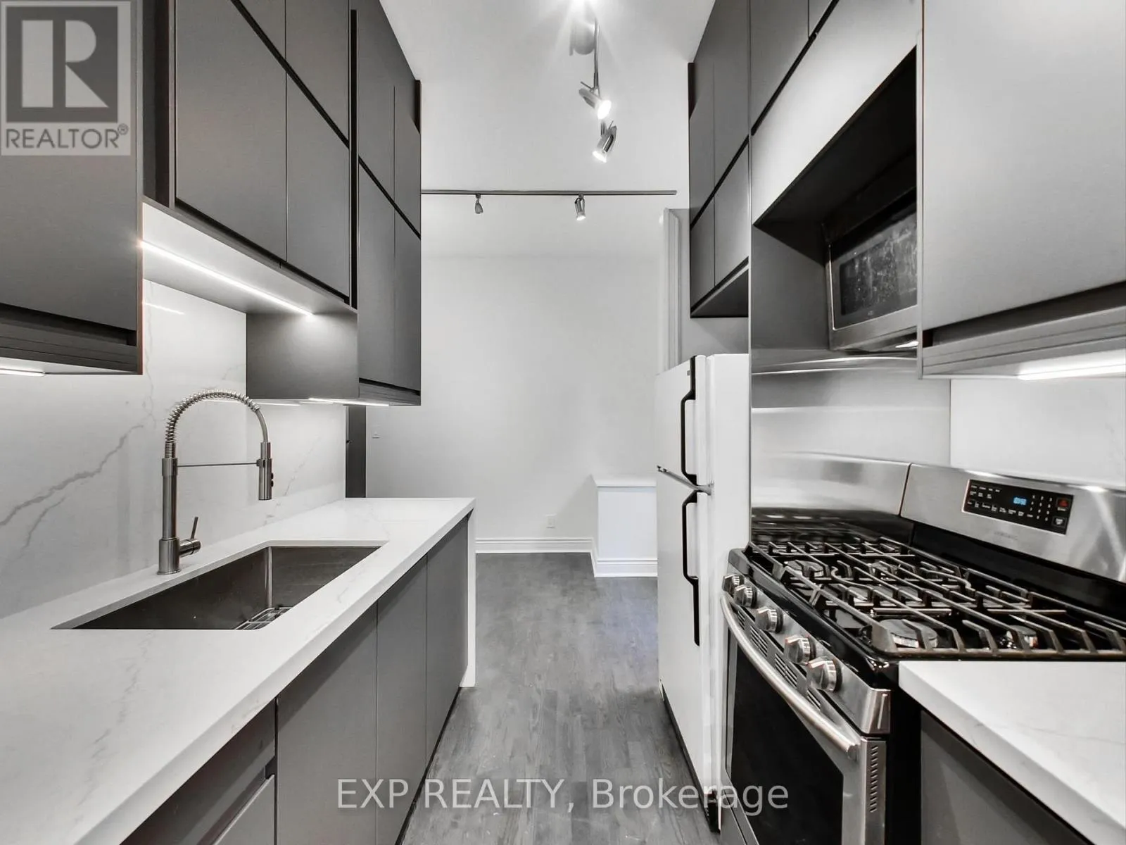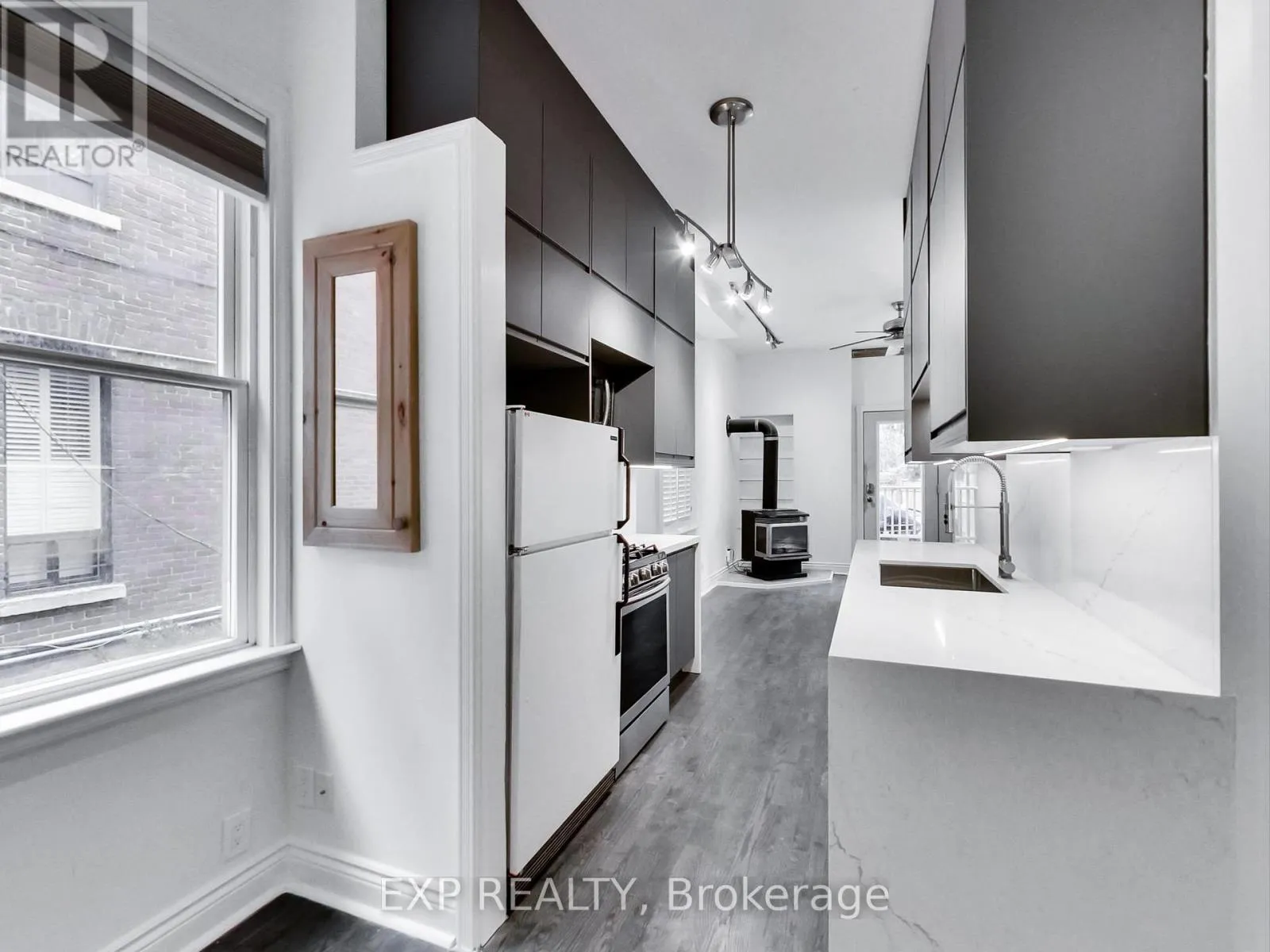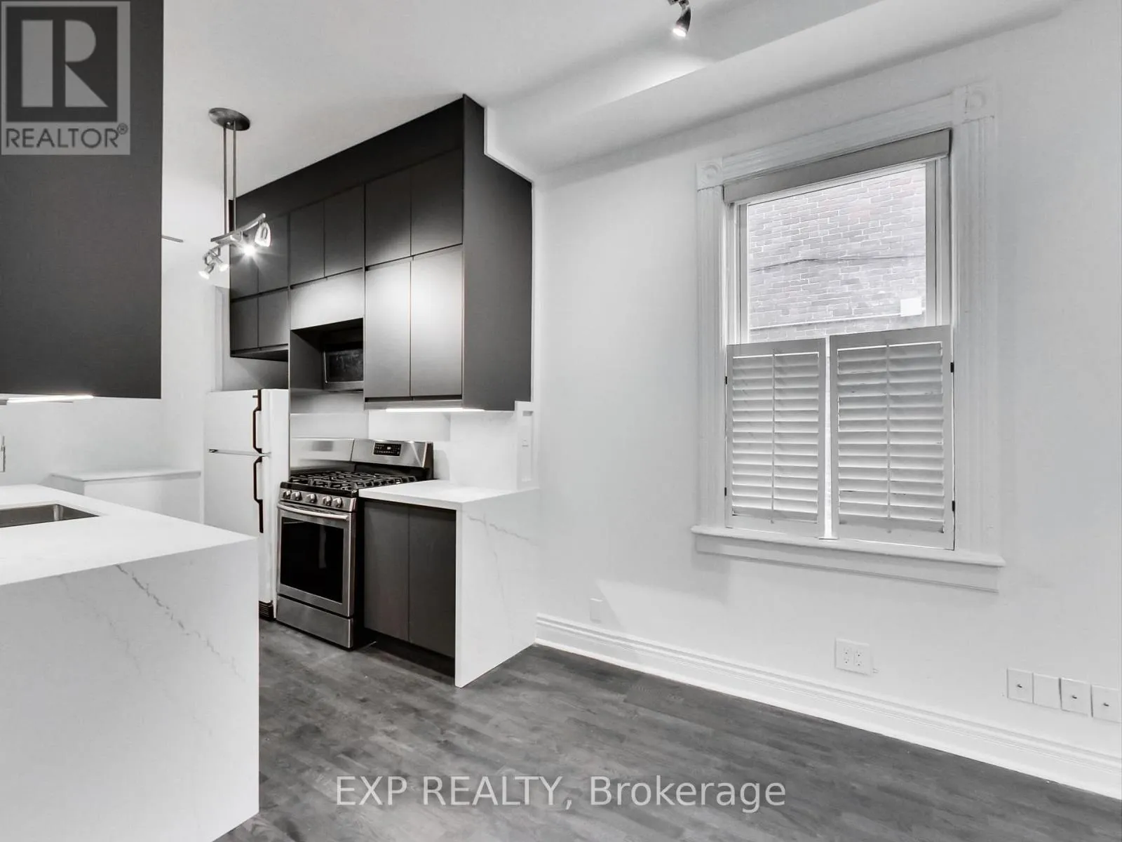 Cross Streets: River St and Queen St. ** Directions: North on Queen St. Spacious 1 bed + den, 1 bath light filled apartment spanning the entire main floor of a Victorian home. Featuring 10.5 foot ceilings this large 813sq/ft apartment has a brand-new modern kitchen with custom cabinetry, waterfalled quartz counter tops and backsplash, gas stove, microwave, and refrigerator. Enjoy summer evenings on your private walk out deck (260sq/ft) with gas BBQ hook up, work from home and entertain in the large open living area overlook from the kitchen. Start your days in modern and over sized bathroom with impressive walk-in shower. The private light filled master bedroom has more then enough room for a sitting area or Pelaton bike across from your king size bed. With 3 generous closets for ample storage and laundry on site this can be your Oasis in the city. (id:27476)