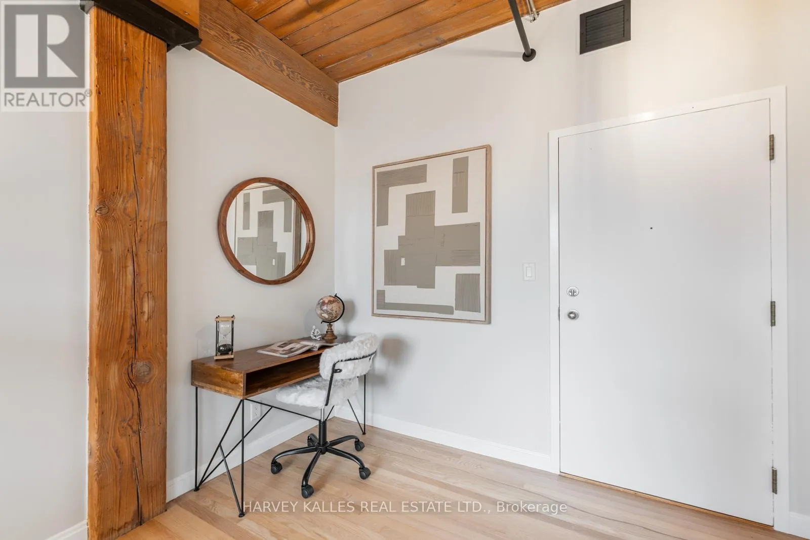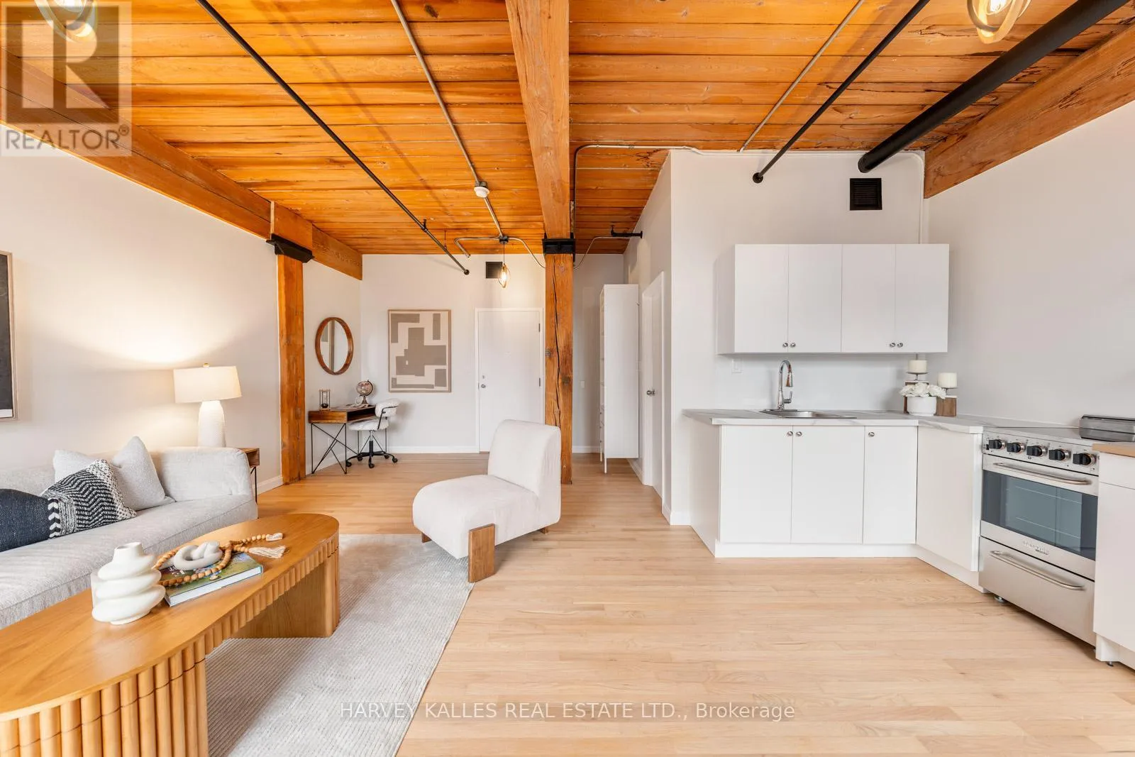 Queen & Dufferin Step into this beautiful updated hard loft in one of Toronto's most coveted boutique buildings at 24 Nobel Street. This bright and airy studio features authentic loft character with soaring ceilings, exposed brick, original beams, and over-sized factory windows that bring in exceptional natural light. Enjoy a desirable south-facing exposure, offering warmth, brightness, and an inviting atmosphere through-out the day. The open layout provides flexible living, dining, and sleeping arrangements, creating a seamless blend of style and functionality for modern urban living. With its refreshed interior and clean comtemporary feel, this loft is truly move-in ready. Located on a quiet residential street just steps away from Queen West's cafes, restaurants, transit, shops, and galleries, this is a rare opportunity to own in a true hard-loft conversion with low maintenance fees and unbeatable walkability. Perfect for first-time buyers, investors, or those seeking a minimalist city lifestyle in one of Toronto's most iconic buildings. (id:27476)