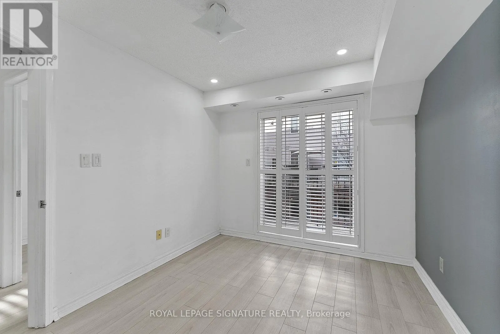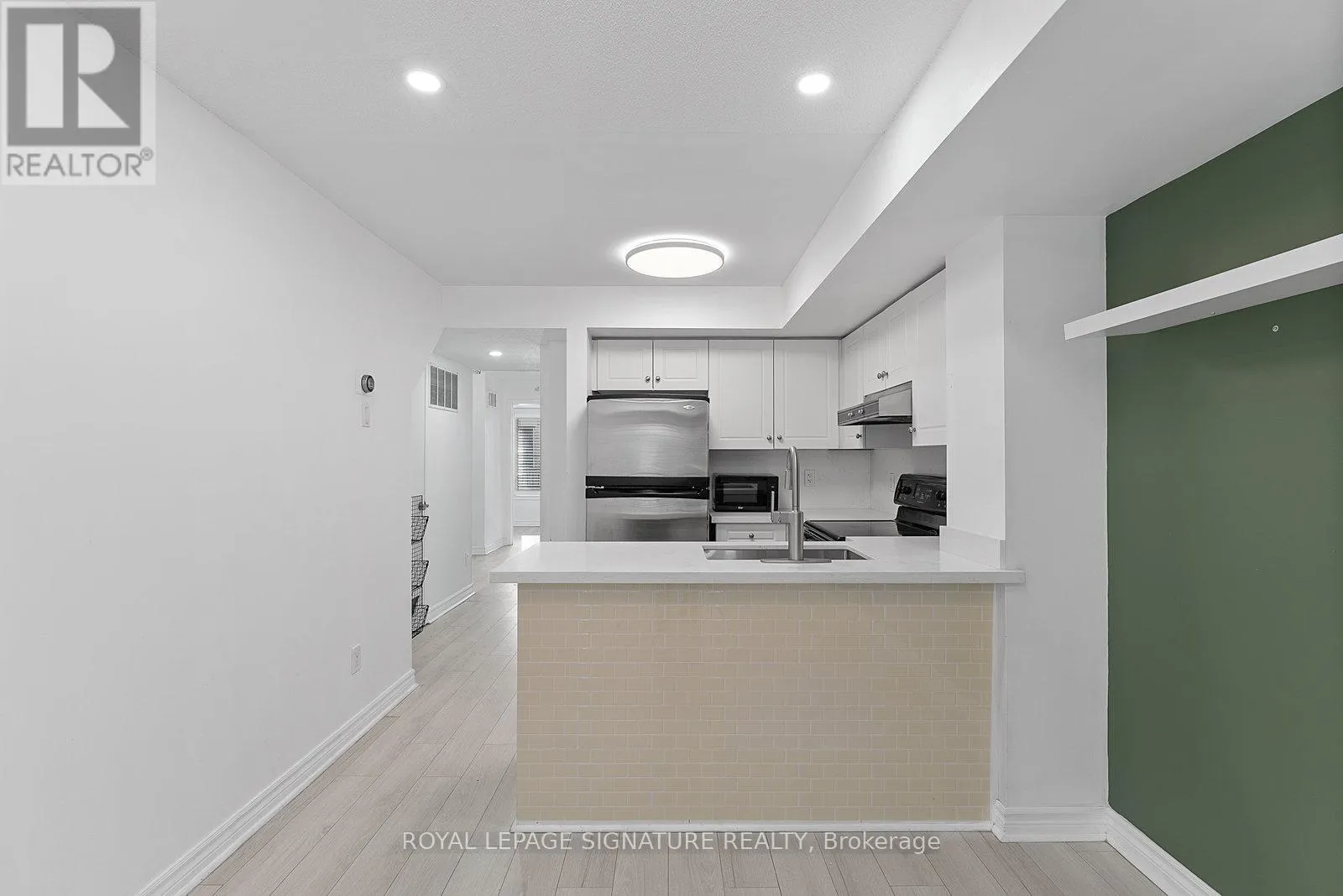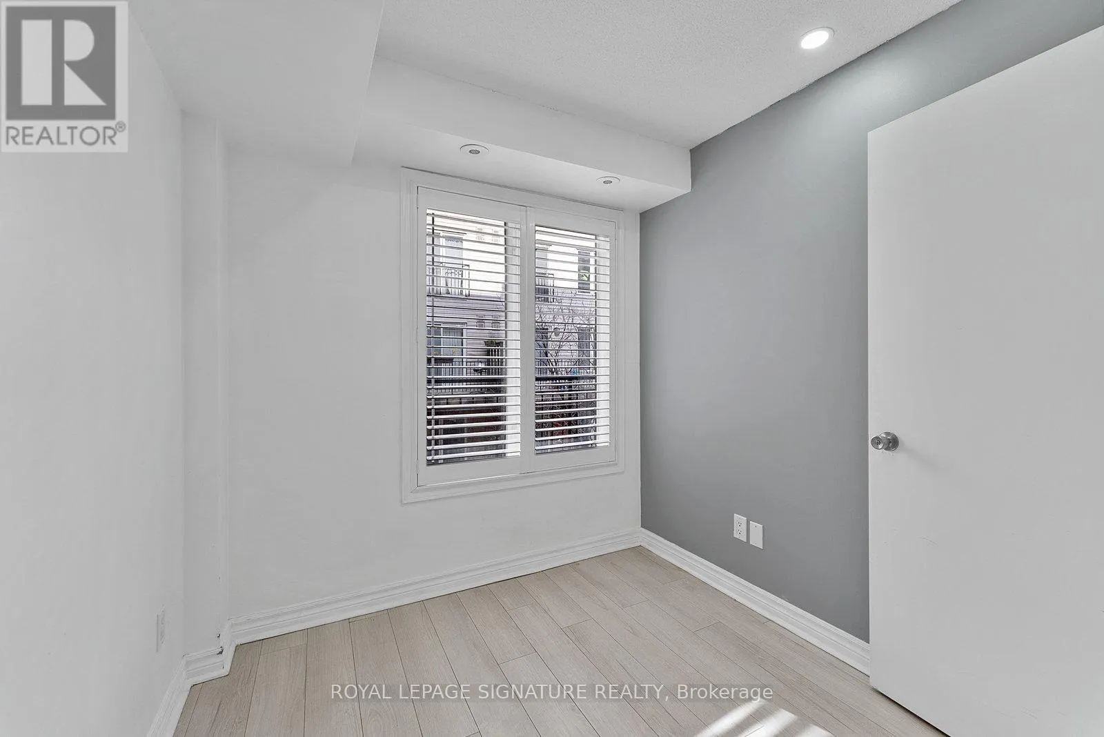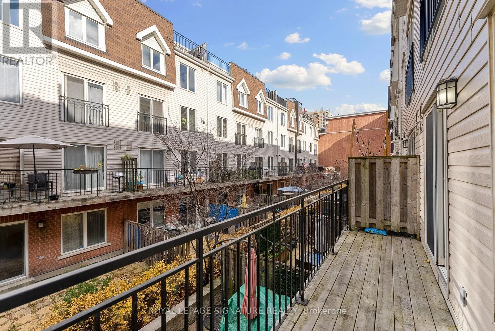 King St W/Dufferin St Tastefully Upgraded Tranquil Two Bed + Den Townhome With A Terrace & Juliette Balcony! An Entertainer's Dream Suite Featuring Smooth White Oak Laminate & Premium Wood Shutters Throughout! An Open Concept L-O-N-G Living/Dining Space With A Sage Green Accent Wall, Juliette Balcony, Floating Shelves & A Built-In Media Unit. The Expansive Gourmet Kitchen Features A Navajo White Subway Tiled Breakfast Bar, Quartz Counters, Stainless Steel Full-Sized Appliances, Marble-Style Backsplash & Loads Of Upgraded Cabinetry. The Primary Suite Will Sweep You Off Your Feet With A Walk-In Closet, *Bonus* Linen Closet, Floor-To-Ceiling Windows, Silver Bullet Grey Accent Wall & Walk-Out To The Private Terrace. The Second Bedroom Makes The Perfect Gym, Yoga Studio, Home Office, Little Kid's Room Or Nursery With A Large Window, Open-Faced Closet & Silver Bullet Grey Accent Wall. The Open Concept Den Features A Zen Green Geometric Wooden Feature Wall & Makes The Ideal Playroom, Home Office or Reading Nook. Relax & Unwind In The 4-Piece Bath With A Sage Green Accent Wall, 2-In-1 Subway Tiled Shower/Tub, Mirrored Medicine Cabinet, Under-Sink Storage & Bonus Shelving. Super Convenient Ensuite Stackable Laundry! Slide The Juliette Balcony Open For Fresh Air Or Retreat To The Decked Private Terrace Off The Primary Suite - Enjoy A Warm Cup Of Coffee In The Morning Or Glass Of Bubbly In The Evening! (id:27476)