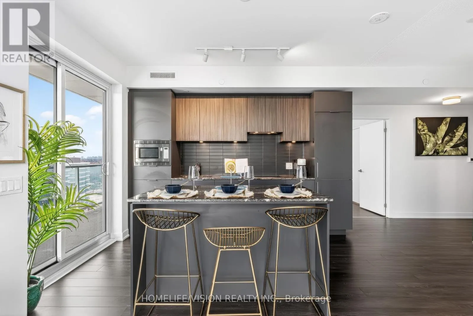 Don Mills And Lawrence If location is everything, then 50 O'Neill has it all. Rodeo Drive condominium brings Beverly Hills vibes to Don Mills. Highly desirable address to live. Breathtaking south west view. Forever unobstructed. Steps to Shops At Don Mills; one of the most high end open air shopping mall of all Toronto. Beautiful interiors by award-winning designer Alessandro Munge, detailed with the finest features and finishes. 5 Star amenities easily accessible and shared between 2 buildings such as fitness centre equipped with the latest cardio, weights and exercise machines, unisex dry sauna indoor/outdoor pool, hot tub, lounging deck, outdoor garden with BBQ areas, bar lounge game room, pet spa and visitor parking. 936 sq feet of interior living area plus over 300 square feet outdoor terrace. 2 bedroom plus Den. Live-Work-Play Community! 24 Hr Concierge, 24 Hr security cameras in select garage/parking areas. Property Taxes Not Yet Assessed (id:27476)