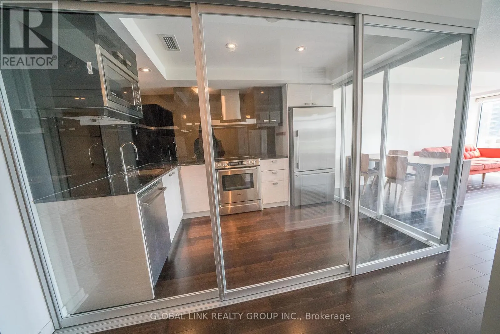 LESLIE/SHEPPARD Welcome to Tango at Concord Parkplace. A Rarely Offered 1+Den with Unmatched Features! Step into this immaculately maintained 668 sq ft suite with an additional 38 sq ft balcony, offering west facing unobstructed views of the park. This thoughtfully upgraded unit stands out from the crowd with hardwood floors, high-end stainless steel appliances, luxurious stone counters, and upgraded cabinetry in both kitchen and bath. The sleek kitchen boasts upgraded sliding glass doors, allowing you to enclose the space completely. Ideal for separating the space or keeping cooking aromas contained while adding a touch of modern elegance. The oversized closet in the foyer offers exceptional storage or can function as a personal locker. Enjoy natural light through premium blinds in both the living area and primary bedroom. The open, versatile den is perfect for a home office or creative studio. Tango residents benefit from resort-style amenities: a large gym, sauna, three outdoor hot tubs plus one indoor hot tub, two guest suites, party room, 24 hour concierge, ample visitor parking, and inviting outdoor seating areas under a canopy. Located in the vibrant Bayview Village / North York corridor, you're just minutes from Bayview Village Shopping Centre, IKEA, Leslie and Bessarion subway stations, Oriole GO Station, and North York General Hospital. Quick access to Highway 401 and 404 puts the entire city at your doorstep. Enjoy nearby parks, top-rated schools, cafes, and restaurants, making this an ideal home for professionals, couples, or investors seeking style, convenience, and value. (id:27476)