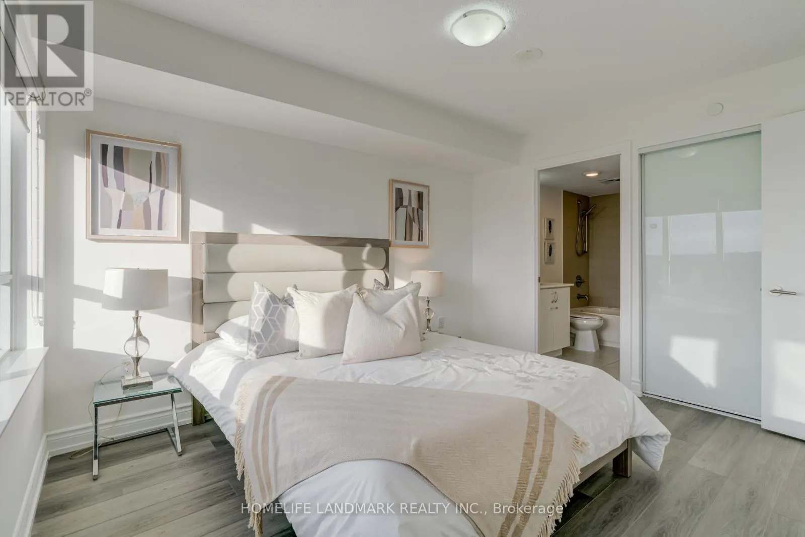 Cross Streets: Eglinton Avenue E & Danforth Rd. ** Directions: Use Waze :). *Rare 2 Bedroom Plus Den, 2 Bathroom Corner Suite*. One Of Only Four Units On The Coveted Park-Side Of The Building Featuring An Expansive Wrap-Around Balcony! 882 Sqft Of Exquisite Living Space. Enjoy Panoramic, Unobstructed Views Of The City Skyline, Ravine, Trail And Even The CN Tower. This Tastefully Updated Residence Showcases Brand New Vinyl Flooring (2025), Freshly Painted With New Baseboards (2025), And Updated Kitchen & Washroom Countertops (2025). The Modern Kitchen Is Equipped With A New Stainless Steel Stove And Dishwasher (2025). The Bright, Open-Concept Living And Dining Area Flows Seamlessly Onto The Wrap-Around Balcony, Creating The Ideal Indoor-Outdoor Space For Relaxing Or Entertaining. The Spacious Primary Bedroom Includes a 4 Pc Ensuite, A Secondary Bedroom With Large Windows, While The Versatile Den-Filled With Natural Light-Can Be Easily Transformed Into A Third Bedroom Or Dedicated Home Office, Offering Exceptional Flexibility. Steps to TTC and 5 minutes To GO Station Easy Access To Downtown Union Station. An Owned Underground Parking Spot Next To Elevators Provides Ease Of Access. Residents Enjoy A Well-Managed Building With Top-Tier Amenities, Including A Fitness Centre, Party Room, 24/7 Concierge, And Visitor Parking. Ideally Located Steps From Transit, Shopping, Restaurants, Schools, Highway 401 And Expansive Green Space. A Special Place Your Guests Won't Stop Talking About, This Is The One You've Been Waiting For! (id:27476)