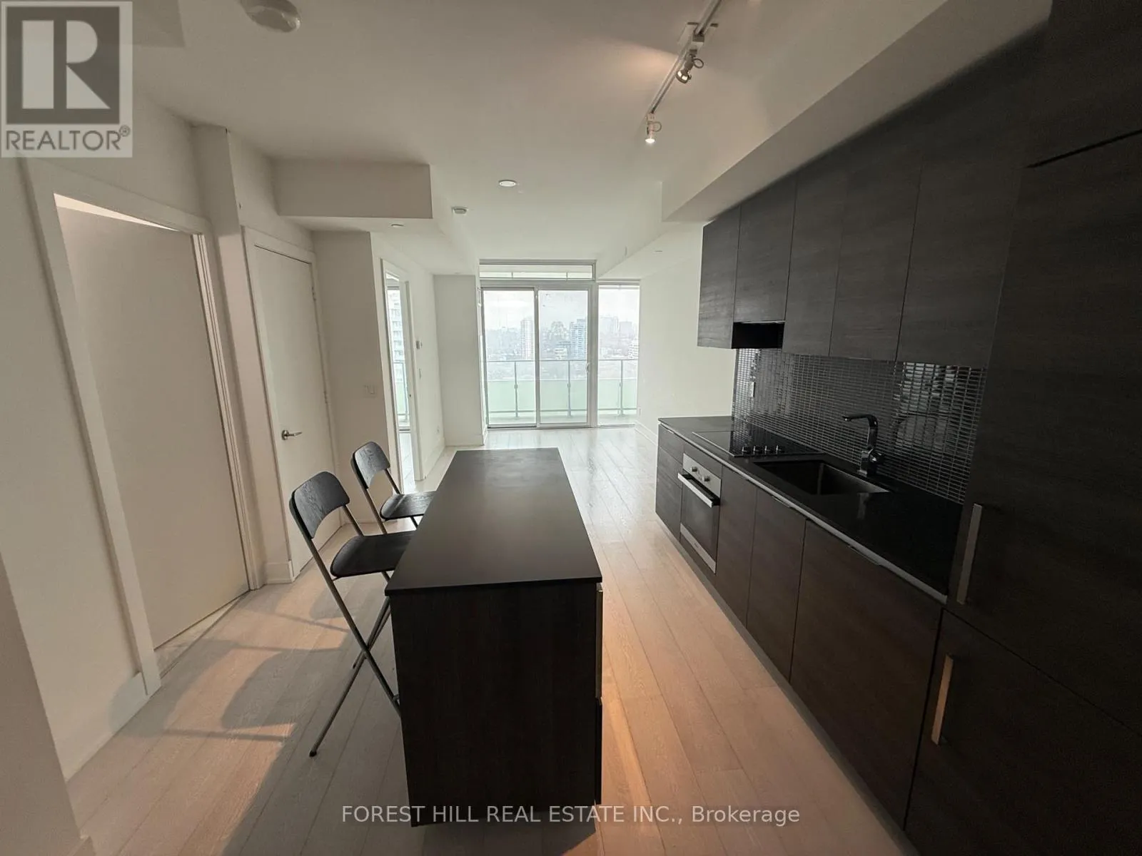 Bloor / Avenue Just a five-minute walk to Yorkville! Welcome to Exhibit Residences - a luxurious one-bedroom suite offering modern elegance in the heart of downtown Toronto. This bright and spacious unit features hardwood floors, a contemporary kitchen with stone counters, stainless steel appliances, an island, and sleek cabinetry. Floor-to-ceiling windows fill the space with natural light and open to a private balcony with views of Yorkville and The Annex. Enjoy unbeatable convenience with a 100 Walk and Transit Score-steps to U of T, the ROM, subway stations, designer shopping, fine dining, and entertainment. Building amenities include a 24-hour concierge, fitness centre, outdoor terrace, party room, guest suites, and more. Urban luxury at its finest. Six-month lease available , with month-to-month option available after. The unit is virtual staged.. (id:27476)