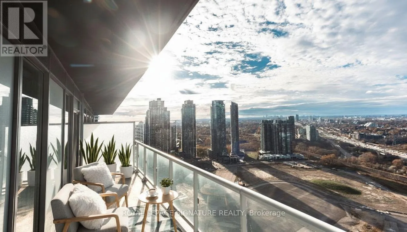 LAKE SHORE & PARK LAWN Step into elevated living at Lago at the Waterfront, where this spacious corner suite offers uninterrupted water and skyline views from every room. This bright 2-bedroom layout is flooded with natural light thanks to its desirable southeast exposure as well as north-facing afternoon sun. Enjoy the luxury of a wraparound balcony with multiple access points from the living room as well as both bedrooms - perfect for seamless indoor-outdoor living. The sleek, modern kitchen is equipped with quartz countertops and stainless steel appliances, flowing effortlessly into an open-concept living and dining space designed for everyday comfort and effortless entertaining. Enjoy breathtaking downtown, CN Tower, lake, and cityscape views right from your living room. The primary suite features a large walk-in closet and direct balcony access. Spacious second bedroom has a large closet and balcony access. Parking & Locker Included. Exceptional Building Amenities include: Indoor Pool, Hot Tub & Sauna, Fully Equipped Fitness Centre, Party Room & Guest Suites, Outdoor BBQ Terrace, Dog Wash Station & Car Wash, 24-Hour Concierge & Ample Visitor Parking. Located in the sought-after Humber Bay Shores community, you're steps to waterfront parks, scenic trails, local cafés, restaurants, shopping, and transit. This is a rare opportunity to secure a move-in-ready waterfront home with resort-style amenities at a price that offers exceptional value. (id:27476)