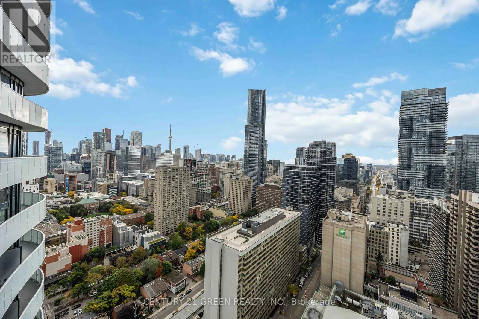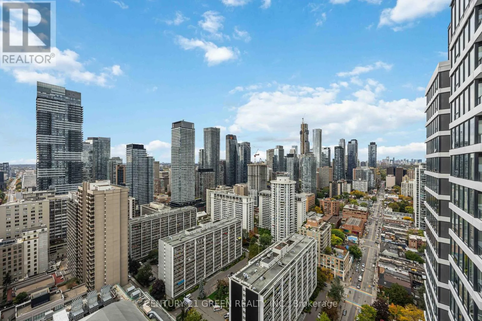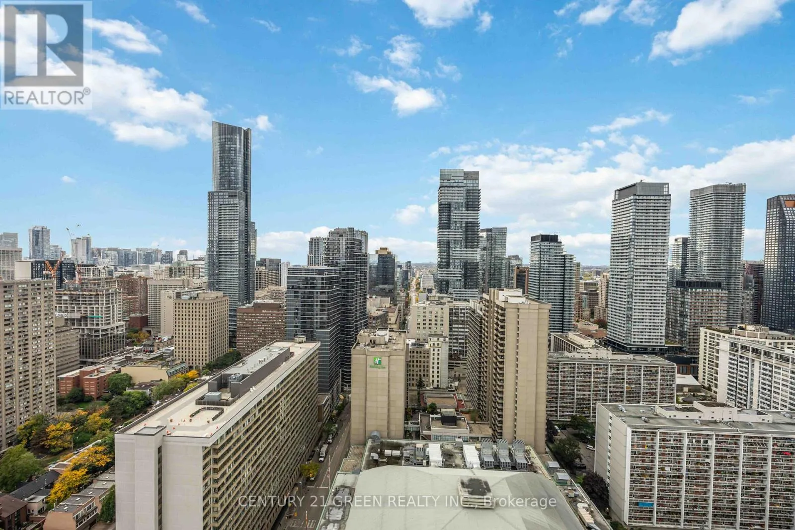 Church St/Carlton St Welcome to The Stanley Condominiums! This bright and spacious 2-bedroom corner suite is a masterpiece of design, showcasing floor-to-ceiling wrap-around windows that flood the home with natural light and offer spectacular, unobstructed views of the C.N. Tower and the city skyline. The kitchen features granite countertops, stainless steel appliances, and under-cabinet lighting. Enjoy the outdoors on your huge 216 sq.ft. balcony with a desirable North West exposure. The open-concept layout is enhanced by laminate flooring and customized roller shades throughout. The main bedroom includes a 3-piece ensuite and a walk-out to the balcony, while the 2nd bedroom offers ample closet space.Perfectly positioned just steps from the TTC Subway (College Station), Toronto Metropolitan University (TMU), U of T, Hospital Row, Loblaws, and the Eaton Centre. Enjoy outstanding building amenities including a 24-hour concierge, state-of-the-art gym, party room, sundeck, and yoga studio, making this an ideal home for those seeking a vibrant and connected downtown lifestyle! (id:27476)