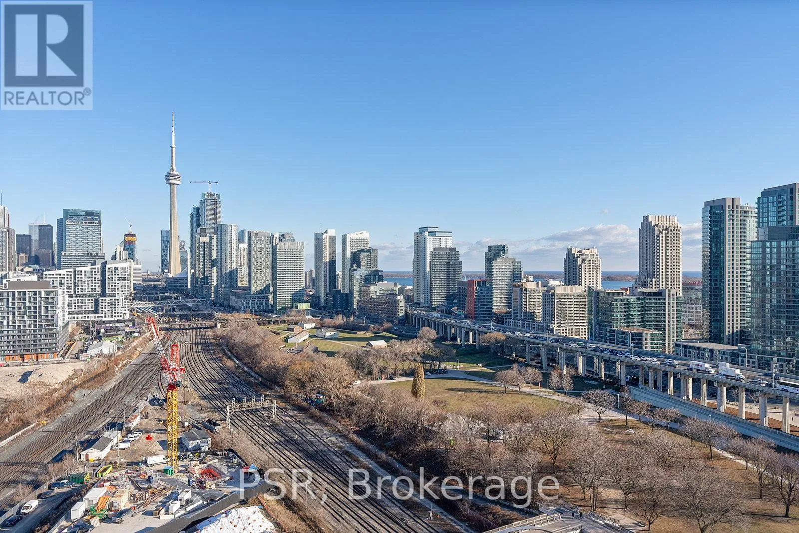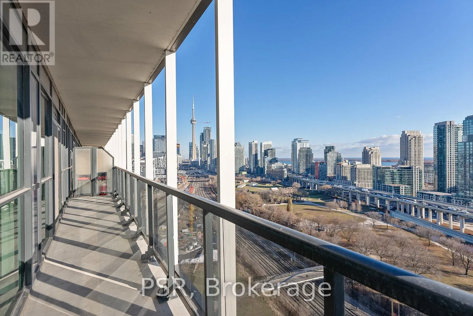 Strachan & King Experience True Corner-Suite Living At 30 Ordnance St. This Bright And Beautifully Designed 2 Bedroom, 2 Bathroom Home Offers A Rare Combination Of Unobstructed South Lake Views, West-Facing Sunsets, And Two Private Balconies That Extend Your Living Space In Every Direction. Inside, The Functional Split-Bedroom Layout Is Wrapped In Floor-To-Ceiling Windows And 9 Ft Ceilings, Creating An Airy, Open Feel Throughout The Living, Dining, And Kitchen Areas. The Modern L-Shaped Kitchen Features Full-Size Stainless Steel Appliances, Quartz Counters, And Excellent Storage Ideal For Cooking And Entertaining. The Primary Bedroom Is A True Retreat With A Walk-Out To A Private Balcony, Double Closet, And A Sleek 3-Piece Ensuite. The Spacious Second Bedroom Also Enjoys Lake Views And Great Closet Space. A Proper Foyer With Double Closets, Stylish Finishes, And In-Suite Laundry Add Even More Comfort And Convenience. Located In One Of Liberty Village's Newest buildings (2021), You're Steps To Shops, Restaurants, Transit, Parks, The Waterfront, King West, And Everyday Essentials. Parking And Locker Included. A Standout Corner Residence With Views That Truly Elevate Daily Living. (id:27476)