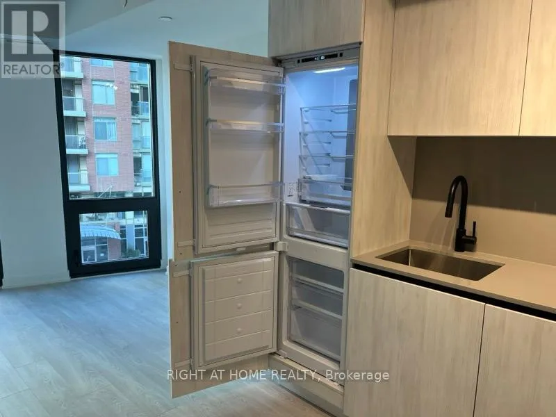 Cross Streets: Parliament St & Front St E. ** Directions: Google Maps. Brand new, never-lived-in 1 Bedroom + Den suite at The Goode Condos, ideally positioned beside Toronto's iconic Distillery District. This thoughtfully designed home offers a functional layout with soaring ceilings and floor-to-ceiling windows, filling the space with excellent natural light and showcasing clear NW urban views of the skyline. The open-concept kitchen features contemporary cabinetry, stone counters, built-in cooktop, integrated fridge/freezer, dishwasher, and sleek finishes. Upgraded flooring and a fully tiled bathroom elevate the quality throughout. The den is generously sized and ideal for a dedicated home office, guest space, or hobby room. A truly turn-key, move-in-ready residence in a beautifully managed modern building.Step outside to charming cobblestone streets, boutique shops, galleries, and award-winning dining in the historic Distillery District. Walk to the waterfront promenade, Cherry Beach trails, St. Lawrence Market, and the emerging Canary District. Transit is effortless with TTC at your doorstep, the upcoming Ontario Line, and quick access to the DVP and Gardiner - making commuting and city exploration seamless. Enjoy the best of downtown living with nearby parks, cafés, culture, and everyday conveniences just steps away.Residents enjoy world-class building amenities including 24/7 concierge, outdoor pool with sundeck, fitness studio, co-working lounge, party room, pet spa, and more - providing both lifestyle and luxury. With a walk score of 90, transit score of 100, and bike score of 100, this location delivers premier urban convenience in one of Toronto's most desirable neighbourhoods. The Goode Condos embody modern living in a historic district, offering community charm with sleek contemporary design. A rare opportunity to live in a brand new suite in an unbeatable location - immaculate, modern, and move-in-ready! (id:27476)
