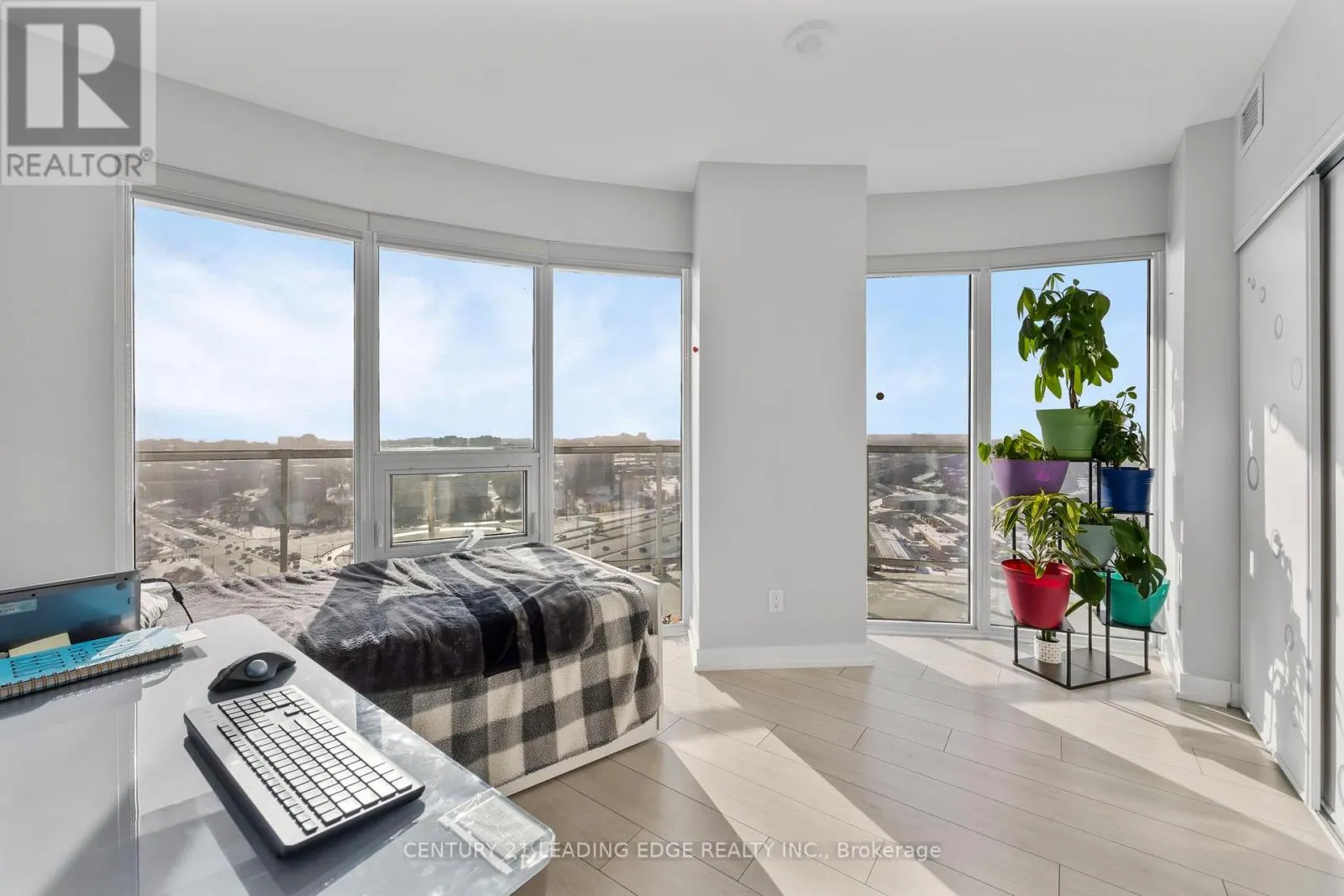 401 and Kennedy Modern 2 bedroom condo. Ideal for first time buyers. Unobstructed view, 2 baths, ensuite laundry, wrap around balcony, floor to ceiling windows, quality laminate floors thoroughout, w/o from living and bedroom to balcony. Stunning grand lobby, sport lounge, yoga room, exercise room, outdoor terrace with BBQ facilities. Minutes to HWY 401, steps to TTC, shopping, parks, and other amenities. All existing appliances, (fridge, stove, b/i microwave, washer and dryer) Electrical light fixtures and one parking spot. (id:27476)