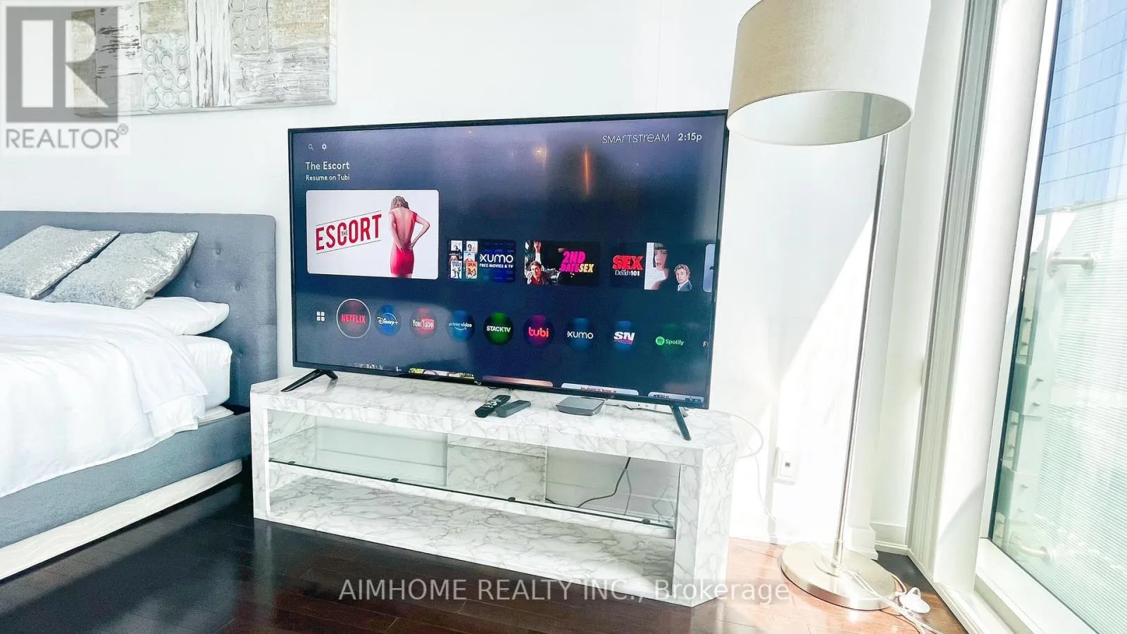 Cross Streets: York & Bremner. ** Directions: 14 York st. Spacious 1+1 suite, 1-6 months rental, term is flexible but maximum 6 months. Fully furnished Suite with new renovated bathroom ! just carry your bag and move in! Waterfront Community ICE Condo with PATH System Connection . 9' Ceiling, Gorgeous Lake View. Hardwood Floors Throughout. Direct underground access to Financial Corridor, Union Station, Maple Leaf Square. Longo Grocery Store, L.C.B.O. & Hotel. 24 Hr Concierge. WiFi and hydro is included. Electricity is extra. Parking is possible for additional $200 per month. (id:27476)