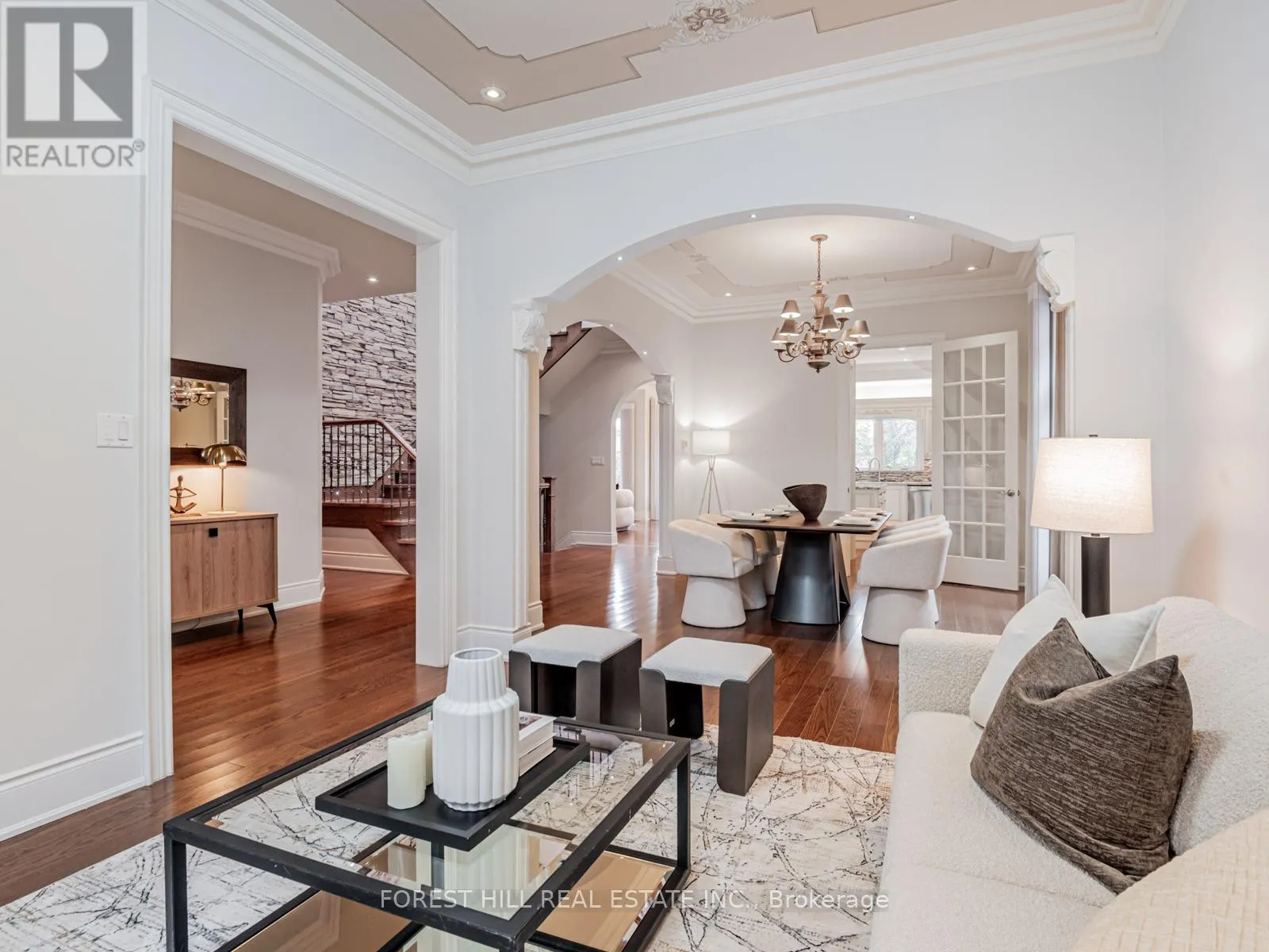 E.Bathurst St & South of Finch Ave W ***One of The Biggest Floorplan ***An Architecturally Striking C/B Home In The Heart of North York ***Set on a Premium 50 X 127 Ft Lot, Blends Timeless Elegance With Superior Craftsmanship and High-end Finishes Throughout. **Approximately 4000Sf(1st/.2nd Floors) + Fully Finished Basement & 10-ft Ceilings On Main, Rich Hardwood Floors Throughout, and an Open-concept Living and Dining Area Anchored by a Cozy Gas Fireplace-perfect for Both Family Living and Entertaining. The Chef's Kitchen Boasts a Large Center Island, Granite Counters, Stainless Steel Appliances, Custom Backsplash, and Ample Built-ins. ***A Bright Sun-filled Breakfast Area Overlooks the Landscaped Backyard With a Walk-out to the Deck and Patio, Ideal for Indoor/outdoor Enjoyment. ***4 Good Size Bedrms On 2ND Lvl, Including a Primary Retreat Features a 6Pcs Spa-inspired Ensuite and Large Walk-in Closet. **A Second-floor Laundry Brings You The Convenience. ** While Elegant Iron Railings, Wide Wood Steps, and an Octagon Skylight Enhance the Home's Refined Character. The NEWER Finished Basement Extends the Living Space With a Recreation Room, Wet Bar, and Guest Suite-perfect for Family or Visitors. Additional Features Include a Security System, Custom Millwork, and a Thoughtfully Designed Layout That Balances Style and Function. (id:27476)