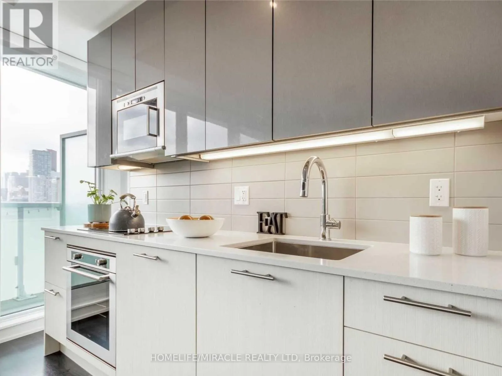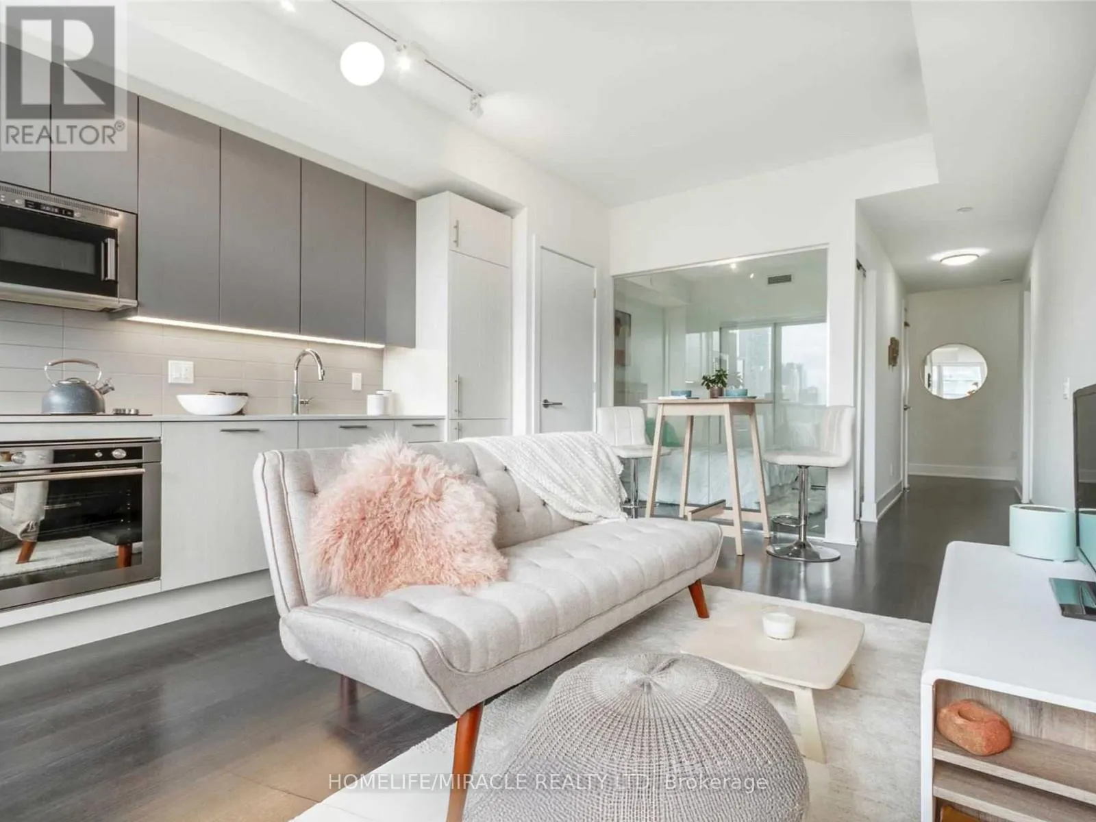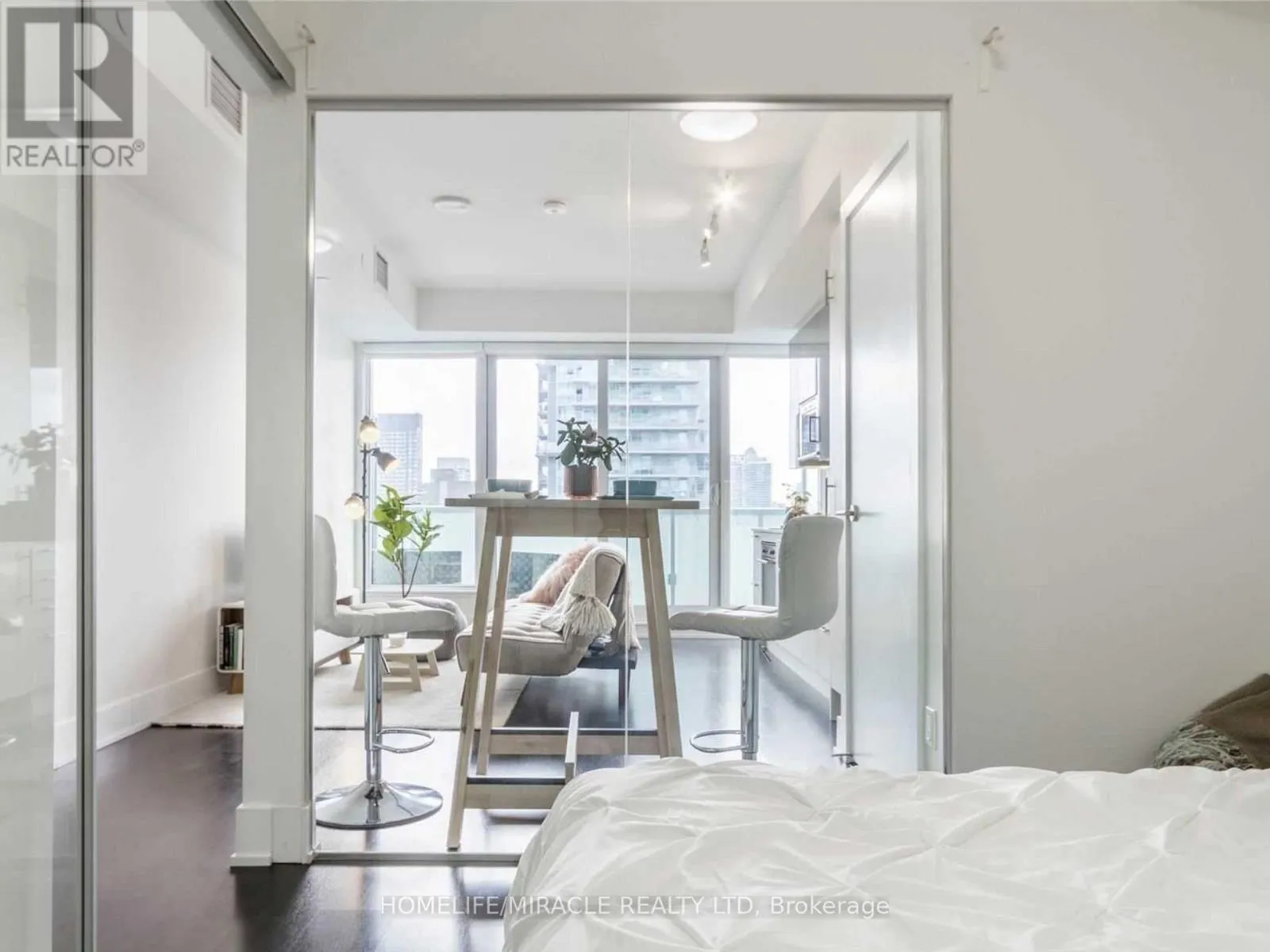 Church/Carlton Bright south-facing condo with floor-to-ceiling windows that flood the space with natural light, a functional open concept layout, and high ceilings that add a sense of openness. The modern kitchen comes with built-in appliances and quartz countertops, and the den is a truly practical workspace. This unit separates itself from others with custom wall paneling throughout, premium custom blinds, and an upgraded bathroom that gives a more refined feel. The large balcony offers clear views of the city, lake, and CN Tower, and the location puts you steps from transit, restaurants, parks, Eaton Centre, Yorkville, shops, TMU, U of T, Nathan Phillips Square, and the Entertainment District, with the flagship Loblaws conveniently across the street. (id:27476)