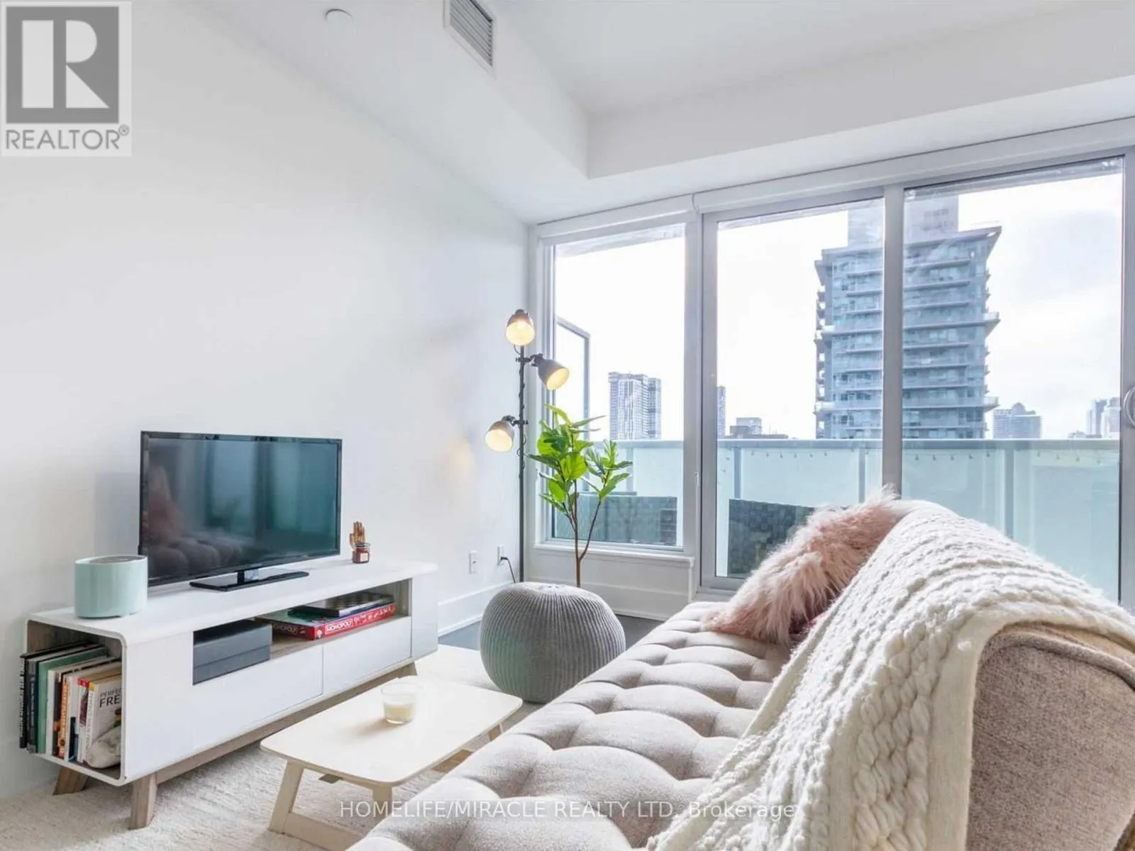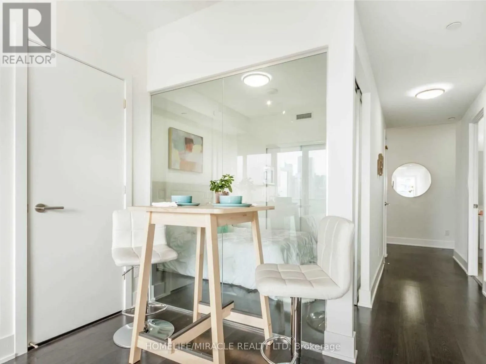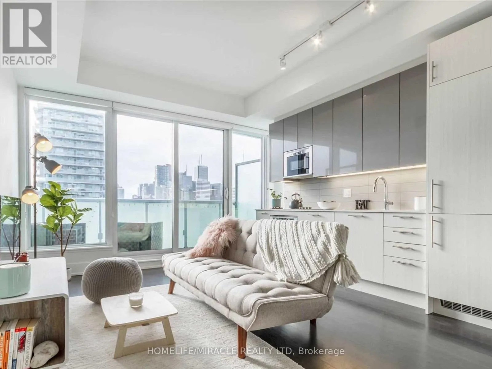 Church/Carlton Bright south-facing condo with floor-to-ceiling windows that flood the space with natural light, a functional open concept layout, and high ceilings that add a sense of openness. The modern kitchen comes with built-in appliances and quartz countertops, and the den is a truly practical workspace. This unit separates itself from others with custom wall paneling throughout, premium custom blinds, and an upgraded bathroom that gives a more refined feel. The large balcony offers clear views of the city, lake, and CN Tower, and the location puts you steps from transit, restaurants, parks, Eaton Centre, Yorkville, shops, TMU, U of T, Nathan Phillips Square, and the Entertainment District, with the flagship Loblaws conveniently across the street. (id:27476)