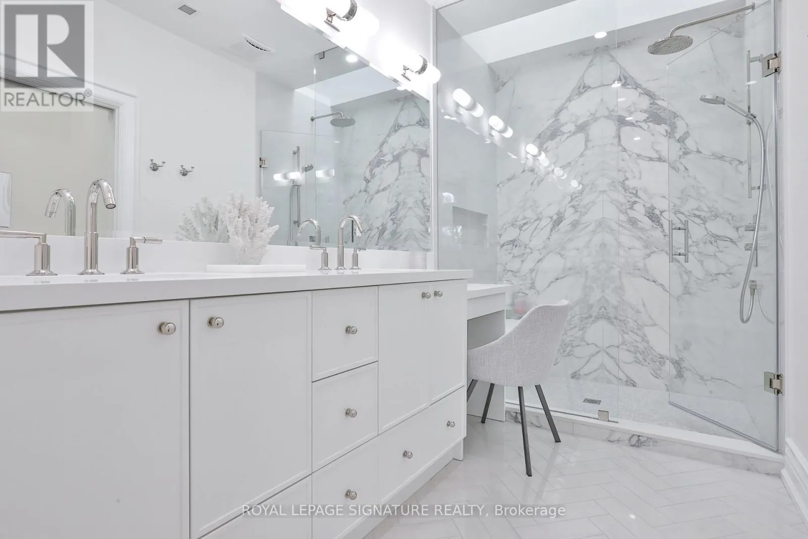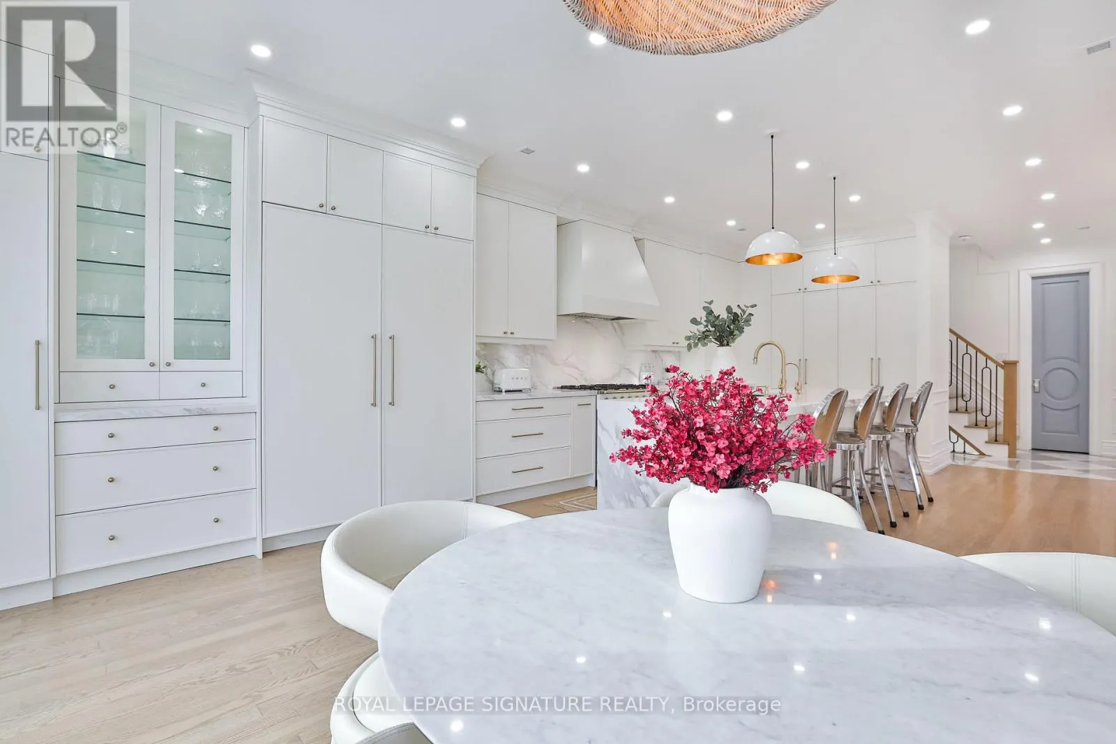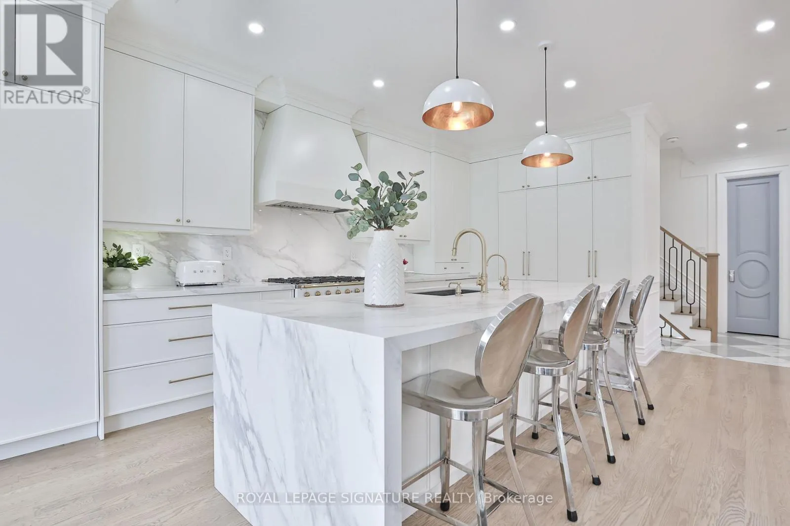 Cross Streets: Mount Pleasant & Millwood. ** Directions: Mount Pleasant Rd, East to Millwood Rd, South to Belle Ayre Blvd. It's the large white corner house. Welcome to 28 Belle Ayre Blvd, an exquisitely reimagined centre hall style residence on a rare 35 x 127.58 ft premium south-facing lot, in the coveted Maurice Cody PS district. Newly renovated throughout, this bright & spacious 4+3 bedroom home offers over 3,700 sqft of meticulous living space. Grand foyer with gleaming checkered tiles, double closet, powder room, large principal rooms with 9.5-10.5 ft ceilings, with wall-to-wall windows, generous spaces for entertaining, and filled with natural light. Oak hardwood floors, custom millwork, built-ins in every closet, tall solid core doors & hardware, elegant sconces & Serena & Lily wallcoverings elevate each level. Custom kitchen with a 10ft waterfall island, matched backsplash, Perrin & Rowe brass faucets with filtration, La Cornue French gas range, 60" SubZero panelled fridge/freezer, hidden coffee station & double SubZero beverage drawers. Side-door mud entrance with custom closet. The Primary Suite boasts a vaulted ceiling, stunning ensuite w/ glass shower, feature wall, heated floors, water closet with washlet & custom double vanity w/ makeup desk. Two walk-in closets complete the suite; one a decadent green with brass hardware; the other a 5th bedroom transformed into a luxurious dressing room/office with built-in desk & window seat. The three additional bedrooms upstairs are spacious & light-filled with walk-in or double closets & new sound-proofed windows. Second flr laundry with sink. The finished lower level features 8-9ft ceilings, heated floors, rec room, 2 flex bedrooms/gym, sleek bathroom, waterproofed, and abundant storage. Sunny oversized backyard with playground, hot tub, lots of grass for the kids to roam free while you dine alfresco on the patio. Extra-wide private double driveway & detached 1.5-car garage accommodate 3 oversized vehicles. Take a stroll to best of Bayview Village & Mt Pleasant's shops, cafes, restaurants, top schools, TTC, Davisville Station, June Rowlands Park, trails & more. (id:27476)
