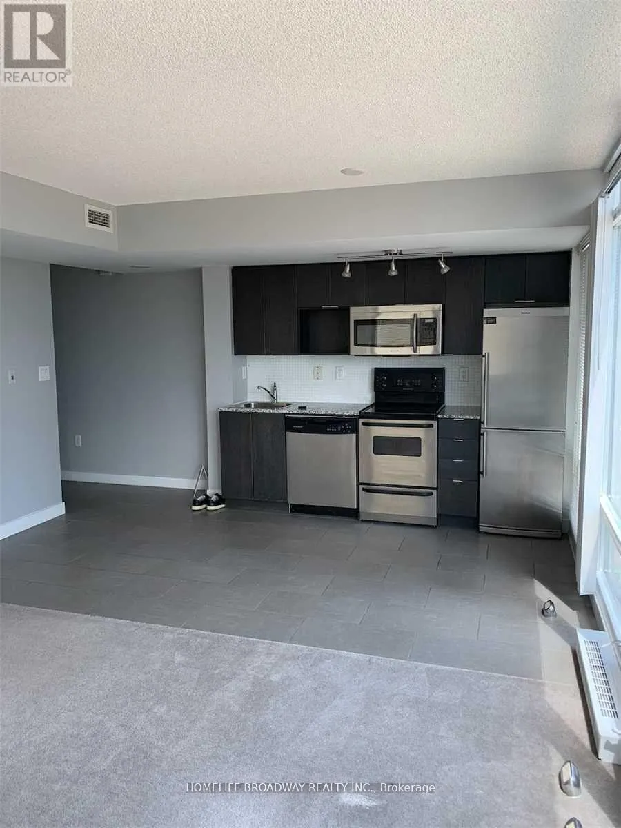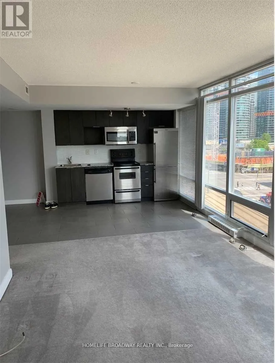 Spadina / Front Bright, floor to ceiling windows with an open concept kitchen, living and dining area. Don't miss the opportunity to live in this 1 bed plus den unit in Gallery Condos at Cityplace! Large closet in spacious bedroom and a den perfect for work / study space. Amenities include fitness room, basketball court, billiards, game/ lounge room, indoor pool, barbeques, etc. Steps to Toronto's Harbourfront, grocery stores, shopping, restaurants, and so much more! One parking space included. (id:27476)