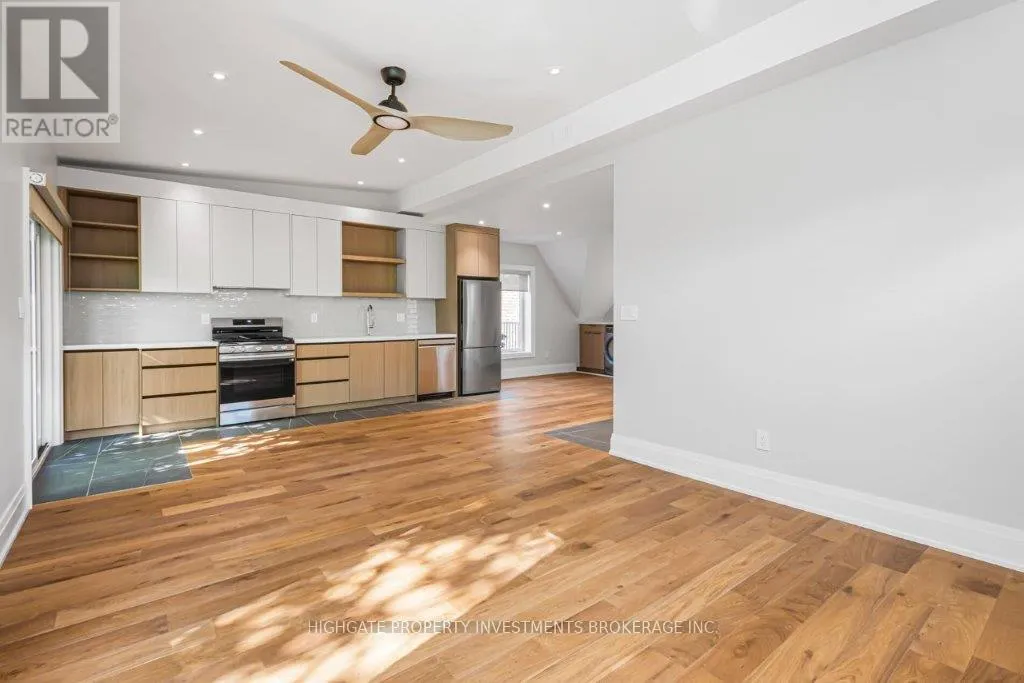 Dundas/High Park Ave Brand New. Never Lived In. Fully Renovated. Premium & Modern Finishes Throughout. Beautifully Designed. Premium & Modern Finishes Throughout. Open Concept Floorplan. Stunning Kitchen Featuring Built-In SHelving, Backsplash, Soft-Close Cabinets, Tile Flooring & Potlights. Sprawling Living/Dining Rooms With Wide Plank Hardwood, Large Windows, More Pot LIghts & W/O To Deck. Laundry Area With Built-In Storage & Table Top. Primary Bedroom Includes Vaulted Ceiling, Large Closet, Large Window & Hardwood Flooring. 2nd Bedroom - Perfect For Working From Home. Modern Bath Including Glass Enclosed Stand-Up Shower With Niche, Tile Floor, Vanity With Storage. Enclosed Deck With Privacy & Shade From Numerous Trees. Fire Escape For Safety. 1 Parking Space. Additional Storage. (id:27476)