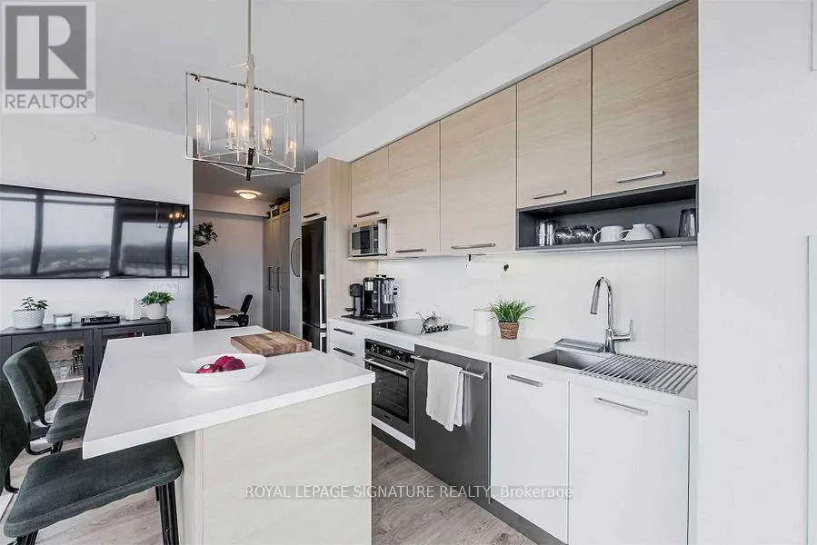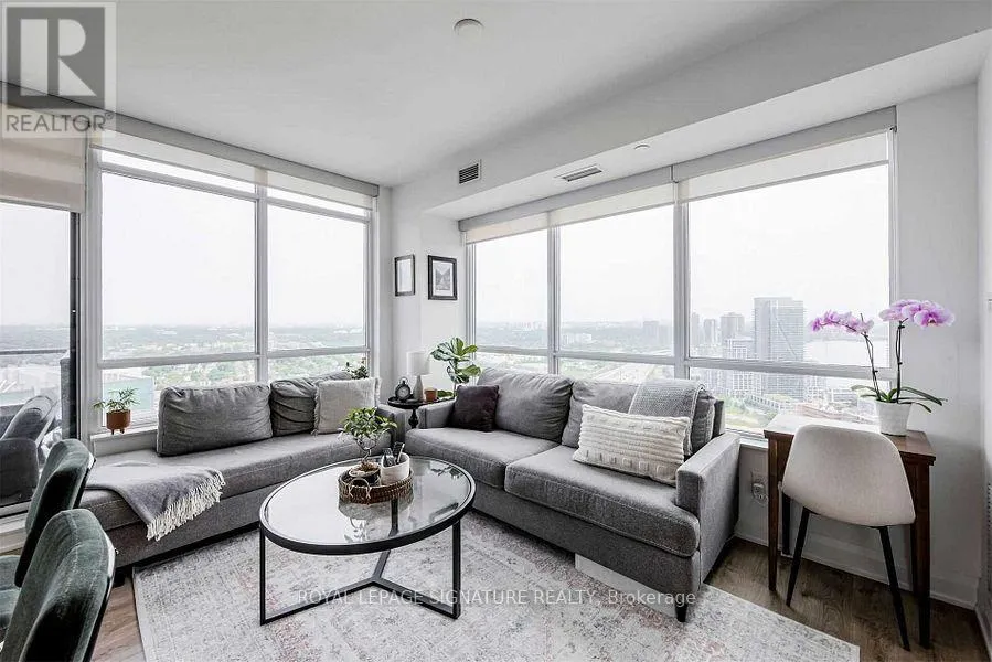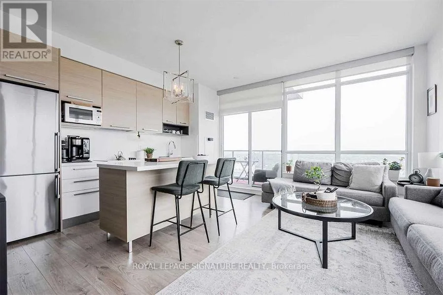 Park Lawn/Lakeshore Bright and modern 1-bedroom + den corner suite in the heart of Humber Bay Shores. This 640 sq.ft. layout features 10 ft ceilings, expansive windows, and an open-concept living and kitchen area with a centre island, quartz countertops, and stainless steel appliances-great for everyday living and entertaining. The den offers a functional space for a home office or additional storage. Located on the 34th floor, the suite showcases impressive city and lake views. Steps from groceries, LCBO, cafes, restaurants, transit, and the Waterfront Trail, offering convenience and vibrant lakeside living. Amenities: 24 Hr Concierge, Gym, Guest Suites, Outdoor Dining Area, Media Lounge & More! Convenient Access To Downtown Toronto, TTC & GO (id:27476)