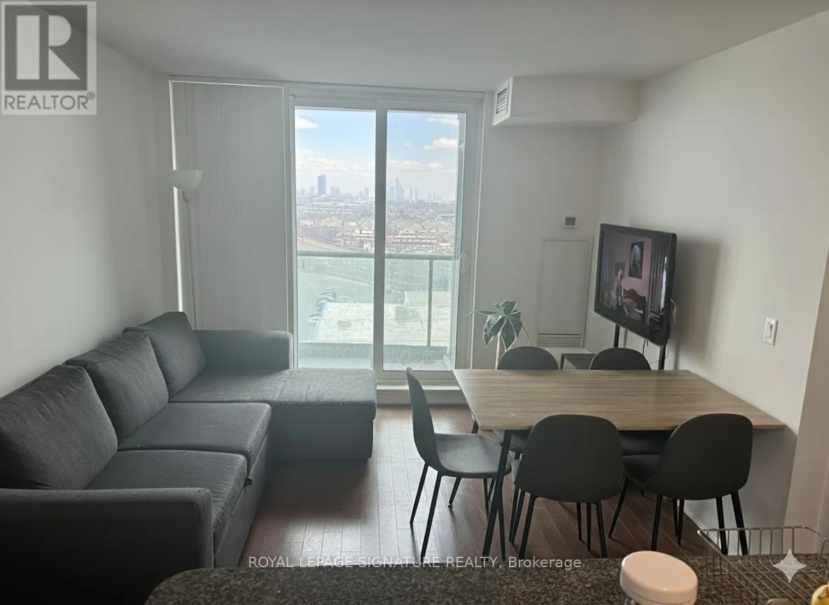 Gardiner/427 Bright and inviting, this east-facing executive one-bedroom suite offers soaring 9 ft ceilings, floor-to-ceiling windows, and a beautifully designed open-concept living and dining space with unobstructed city views. The upgraded kitchen - complete with a sleek breakfast bar - makes both cooking and entertaining a breeze. Hardwood flooring runs throughout, adding warmth and elegance to every corner. Plenty of storage space available including a walk-in closet and locker. Enjoy resort-style living with unmatched amenities: an indoor pool, hot tub, sauna, fully equipped gym, theatre, billiards room, library, party room, guest suites, and 24-hour concierge service. Perfectly situated just steps to the TTC and the upscale Sherway Gardens Shopping Centre, with quick access to major highways, the GO Station, parks, and scenic trails. Stunning views included. (id:27476)