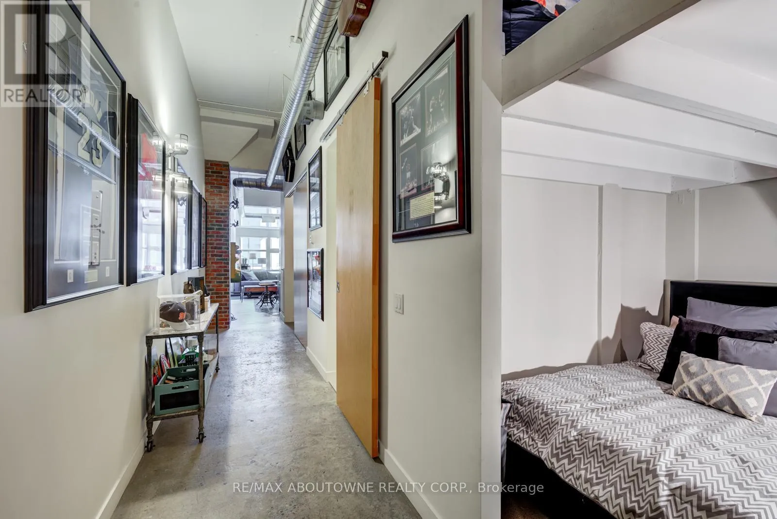Dundas / Church This 1+1 Bedrm Loft Is An Absolute Must See That Has All The "I Wants", Open Concept W/12'Ceilings W/ Exposed Ductwork, Concrete Flrs & 8' Wood Drs Sliding On Metal Barn Rollers Throughout. Uniquely Designed W/A Metal Ladder In The Bedrm To An Upper Level Studio That Can Be Used As A 2nd Bedrm, An Office Or Additional Wardrobe Space. The Industrial Vibe Kitchen Has Granite Countertops & Island, Wood Cabinetry W/ Undermount Lighting, & Brick Backsplash Extends Into The Living Room Accent Wall .Loft Style, Ss Apps, Granite Countertops, 12' Ceilings, Concrete Flrs, Exposed Ductwork, 1 Parking, and EV charger available. (id:27476)