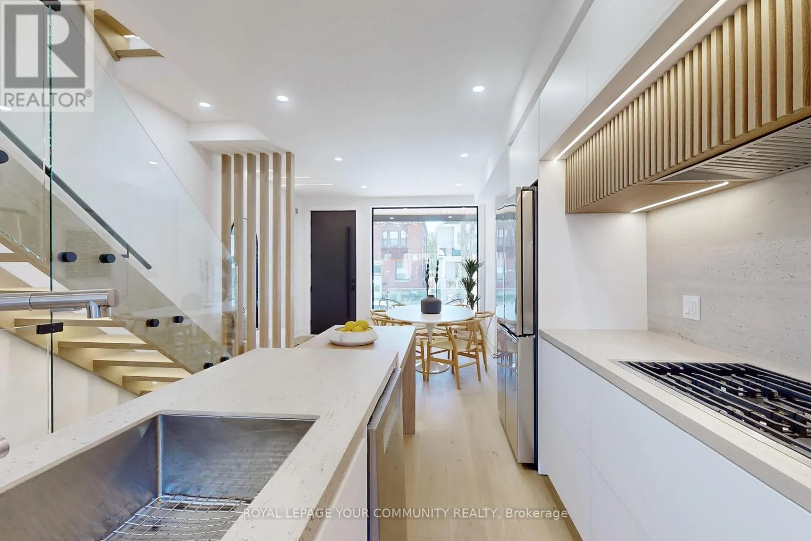 Gerrard str and Jones In the heart of Leslieville, discover the future of modern living in this newly built three-story home filled with character, Charm and thoughtful design. The main floor features a stylish open-concept layout with living, dining, and kitchen areas seamlessly connected-ideal for both everyday living and entertaining.Floating stairs lead to the second floor, which features a modern 3 piece bathroom and three bedrooms. One opens to its own private balcony overlooking the backyard, the second can serve as a cozy bedroom or home office, and the third faces the front of the house and includes a Juliet balcony, ideal for enjoying morning light and fresh air. A dedicated laundry is also conveniently located on this level.The entire third floor is a private primary suite, thoughtfully separated from the rest of the home. It features high ceilings, a spacious bedroom, two walk-in closets, a large balcony, and a luxurious 5-piece modern ensuite with a skylight that creates a spa-like experience. A second skylight above the staircase brings in even more natural light as you ascend to this stunning retreat.The walkout basement includes a separate entrance, one bedroom, a full kitchen, its own laundry, and is ideal for rental income, Airbnb, in-law, or teen suite.Step out to a cozy backyard with a deck, laneway access, EV charging plug, and a gas line-perfect for outdoor gatherings. The front porch, finished with sleek glass railings, offers a great spot to relax and enjoy the neighbourhood. (id:27476)