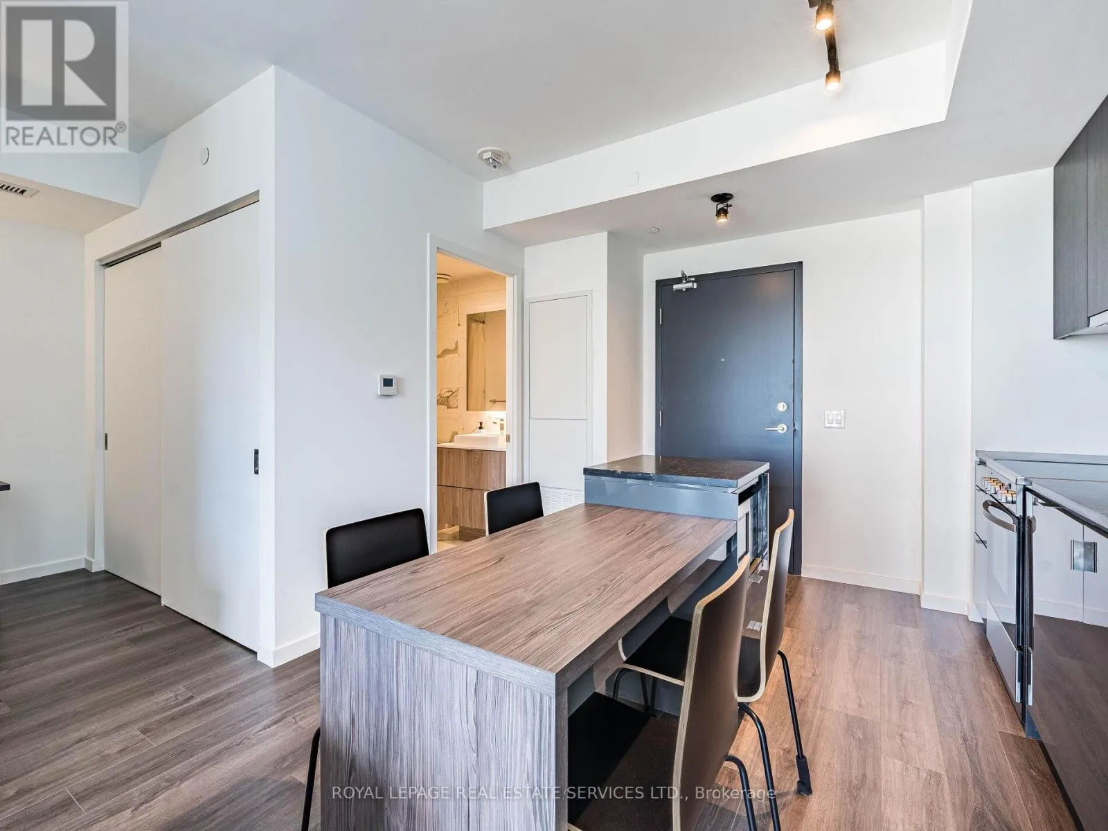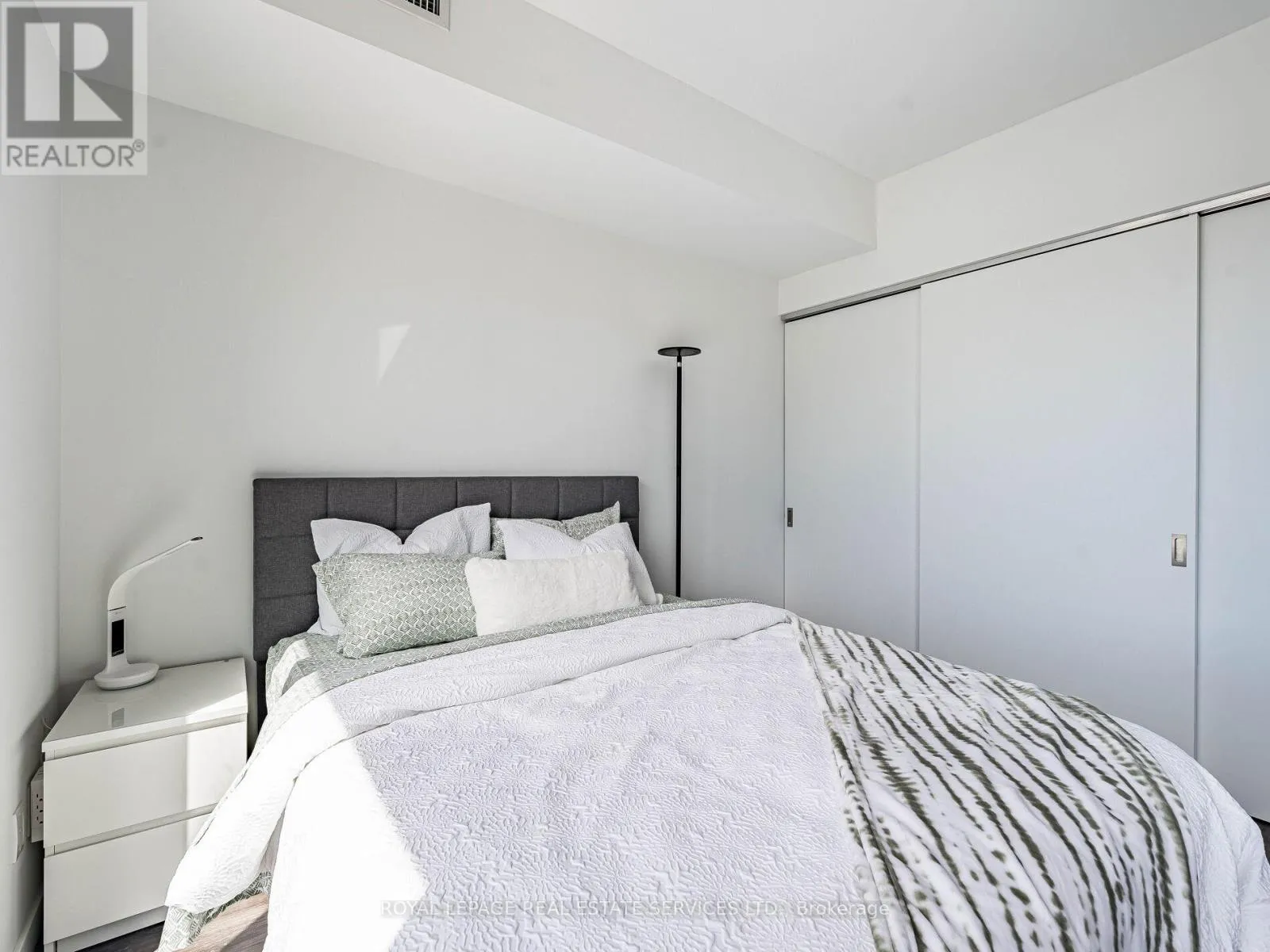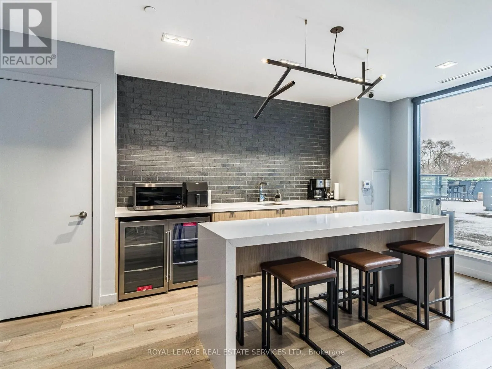 Cross Streets: Royal Torka nd Queensway. ** Directions: West of Royal York north oif Queensway. Priced to sell! This upgraded sun-filled 1 bedroom and den condo at Queensway Park Condos offers a functional open concept layout. With a walk score of 91 everything you need is steps away. (restaurants, shopping, parks). With easy access to Mimico GO station, 1 bus to Royal York subway station, and easy access to downtown Toronto so you can keep your car parked in your own parking space. Rarely offered in a 1 bedroom+den unit is aa storage locker. The inside of this condo suite offers a functional and practical layout, the kitchen with ample cupboard space, upgraded island offers additional storage and a dining area for 4. Open concept living space with walkout to private south facing balcony. Bedroom has a wall to wall closet. Complimenting the suite is the oversized den with closet, upgraded laminate floors throughout, blackout blinds, smooth finished ceiling, euro inspired appliances and an upgraded 4-piece bath. (id:27476)