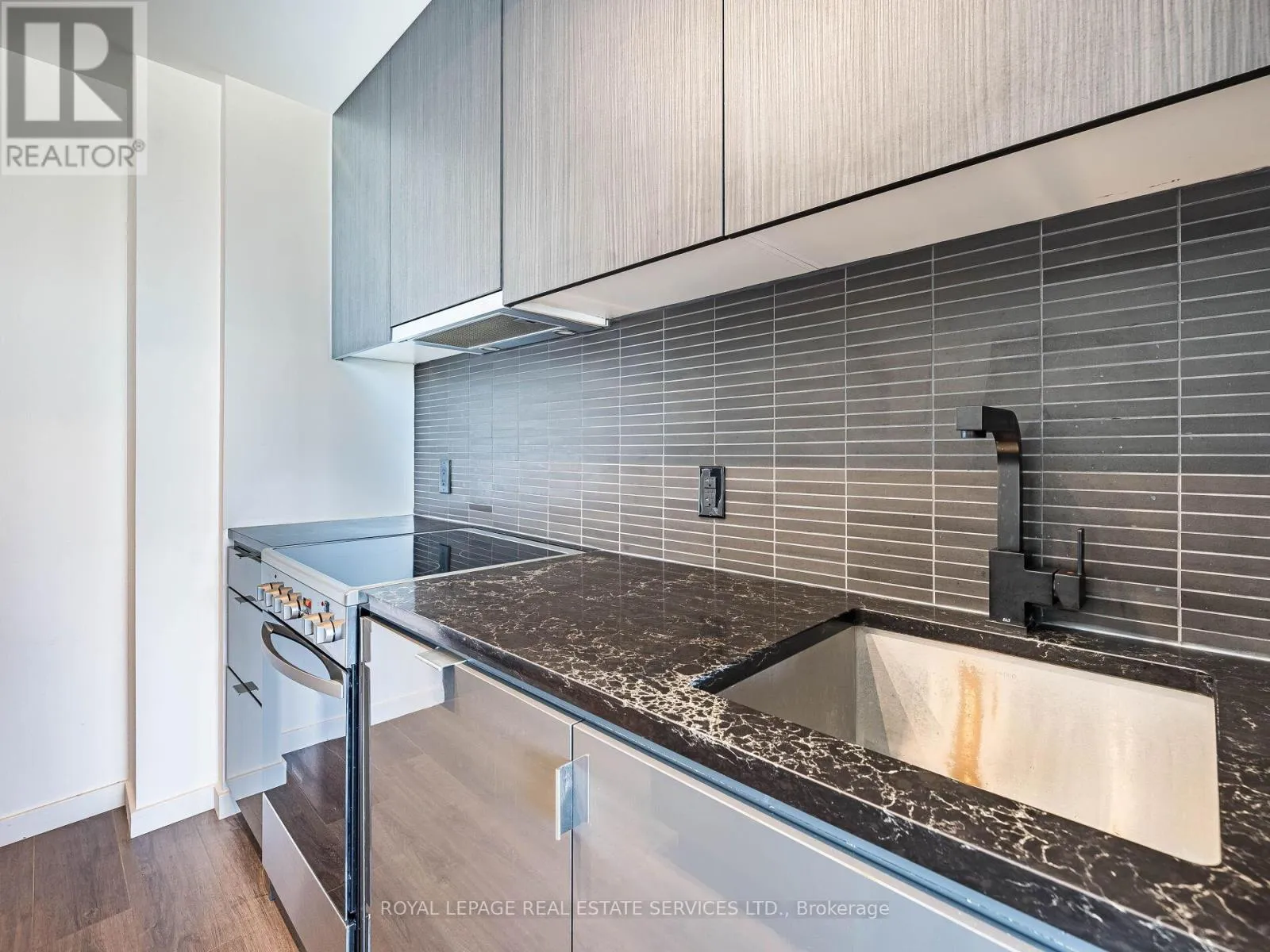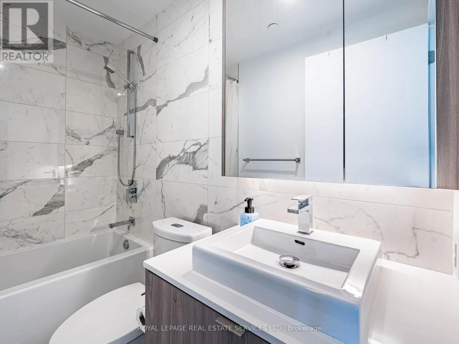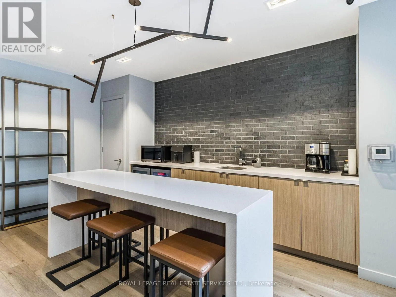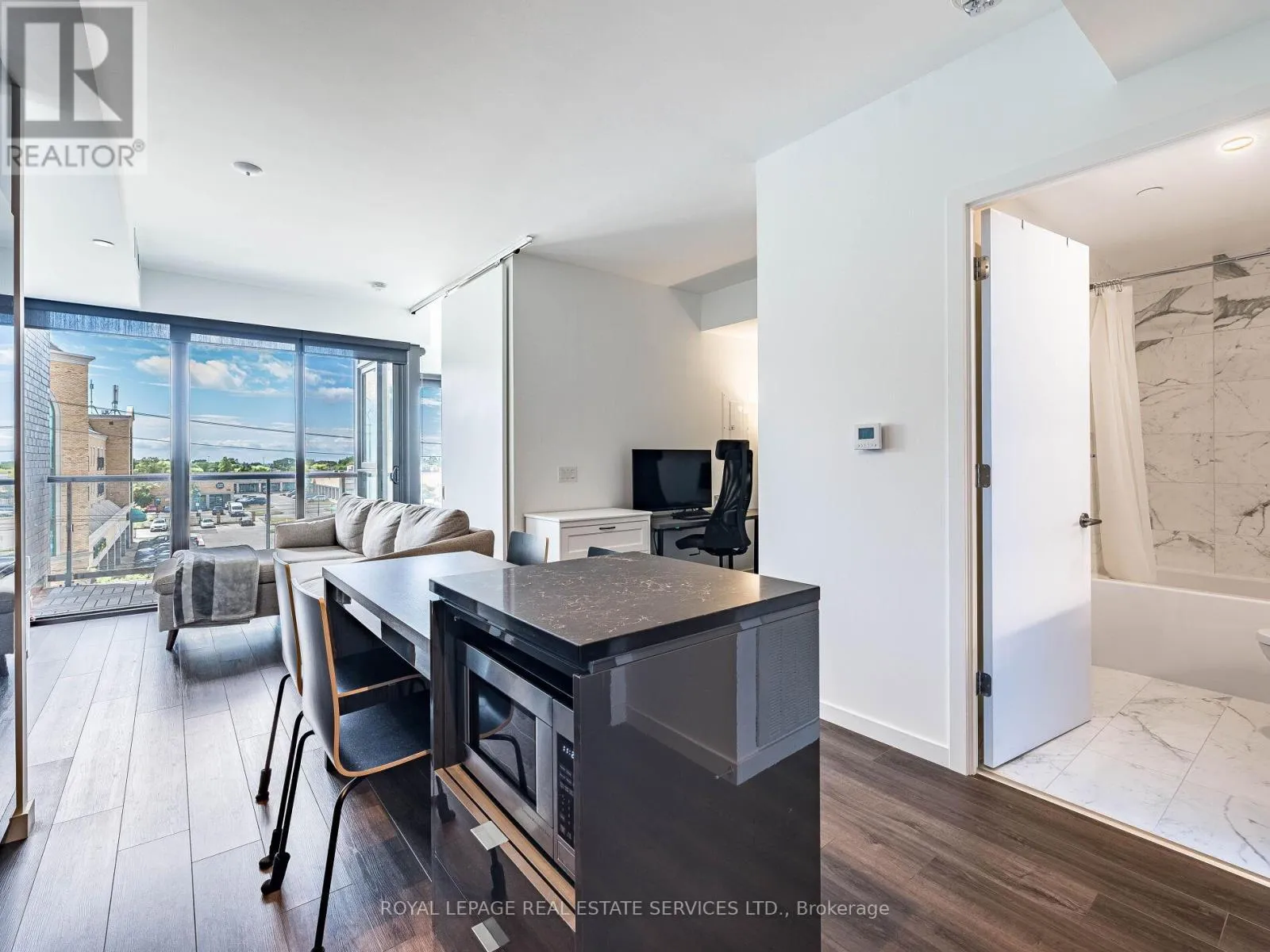 Cross Streets: Royal Torka nd Queensway. ** Directions: West of Royal York north oif Queensway. Priced to sell! This upgraded sun-filled 1 bedroom and den condo at Queensway Park Condos offers a functional open concept layout. With a walk score of 91 everything you need is steps away. (restaurants, shopping, parks). With easy access to Mimico GO station, 1 bus to Royal York subway station, and easy access to downtown Toronto so you can keep your car parked in your own parking space. Rarely offered in a 1 bedroom+den unit is aa storage locker. The inside of this condo suite offers a functional and practical layout, the kitchen with ample cupboard space, upgraded island offers additional storage and a dining area for 4. Open concept living space with walkout to private south facing balcony. Bedroom has a wall to wall closet. Complimenting the suite is the oversized den with closet, upgraded laminate floors throughout, blackout blinds, smooth finished ceiling, euro inspired appliances and an upgraded 4-piece bath. (id:27476)