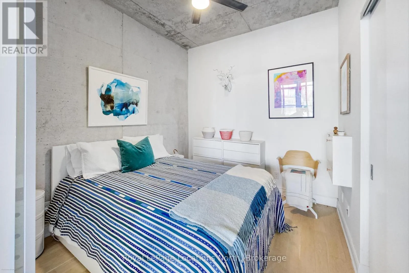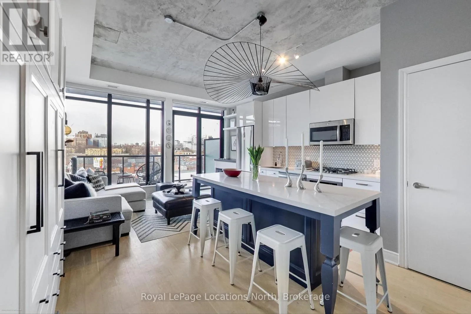 Cross Streets: Bathurst St. / Richmond St. W. ** Directions: Richmond St. W. to Bathurst St. Beautifully-designed one-bedroom loft at The Harlowe--a sleek boutique building where industrial cool meets modern luxury, in the heart of King West, Toronto. This fully-upgraded rare beauty with parking, a large balcony and unobstructed downtown views features 10 ft. ceiling height, tall windows, hardwood floors, exposed concrete, custom centre island with seating for four, B/I electric fireplace with concealed TV lift, B/I Murphy bed for guests, multiple storage cabinets throughout and gas hook-up on balcony. Approx. $50K in fixtures beyond builder premium finishes. Building amenities include: concierge, gym and party/meeting room, to name a few. Steps to both King West & Queen West to enjoy restaurants, bars, boutiques, parks, grocery stores and more! Easy commute to the core. Close access to Lakeshore paths and the Gardiner. (id:27476)