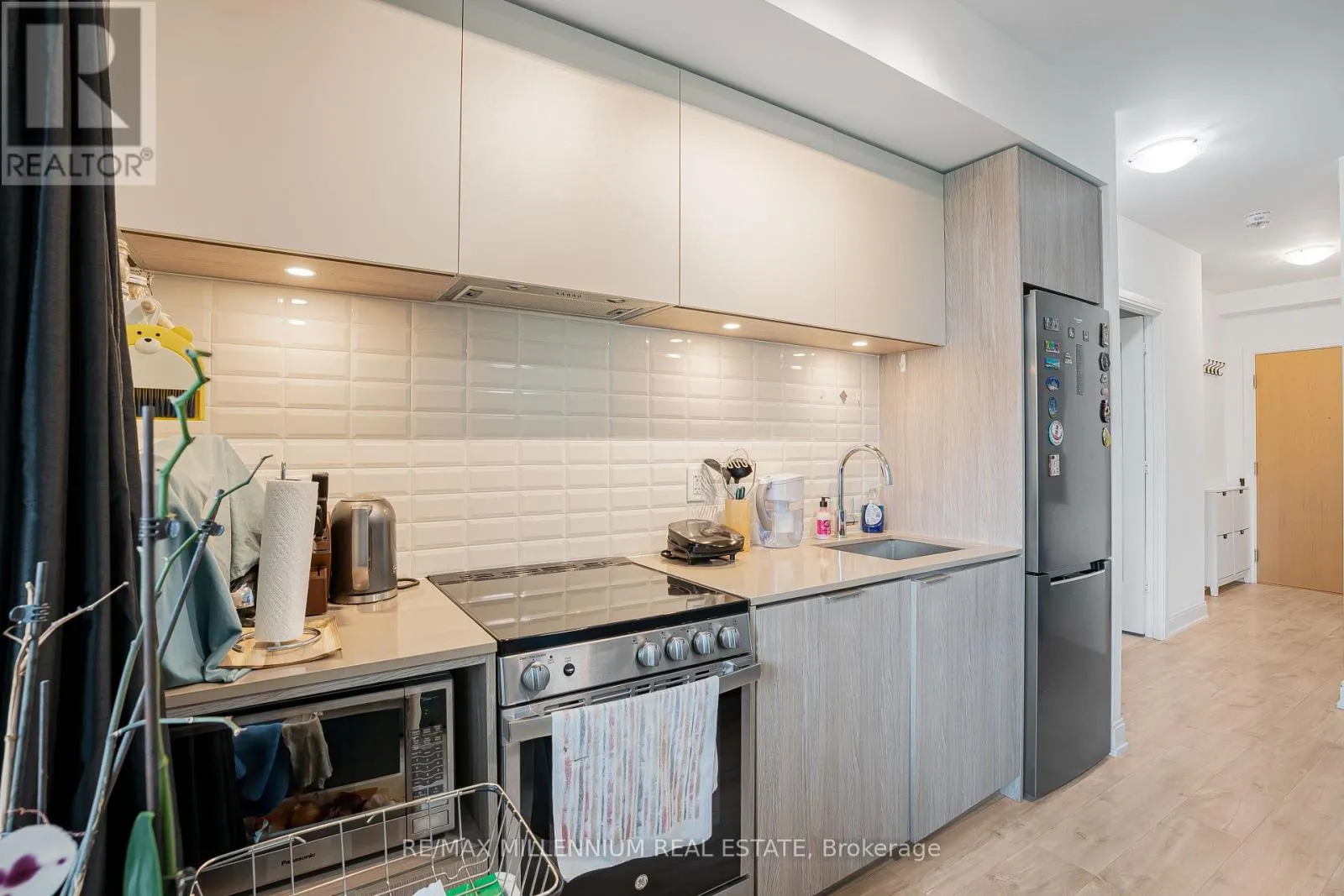 Park Lawn/Lakeshore Welcome to Vita Two Condominiums at 65 Annie Craig Drive where modern design meets lakeside living. This stunning 1+1 bedroom, 1 bathroom suite offers approximately 600 sq.ft. of thoughtfully designed space with an open-concept layout perfect for both everyday living and entertaining. The bright living area seamlessly flows onto a private balcony, providing breathtaking views of the surrounding cityscape and glimpses of Lake Ontario.The gourmet kitchen features contemporary cabinetry, quartz countertops, built-in appliances, and a stylish backsplash, making it as functional as it is elegant. The versatile den can be used as a home office, guest space, or reading nook an ideal option for today's lifestyle needs. The bedroom boasts floor-to-ceiling windows and ample closet space, while the modern 4-piece bath is designed with sleek finishes.Residents of Vita Two enjoy a long list of world-class amenities, including a fully equipped fitness centre, outdoor pool, yoga studio, party room, rooftop terrace with BBQs, and 24-hour concierge services. The building is also energy-efficient and well-managed, ensuring comfort and peace of mind.Located in the heart of Humber Bay Shores, this condo places you steps away from the waterfront trails, parks, boutique shops, trendy cafes, and fine dining. Quick access to the Gardiner Expressway makes commuting to downtown Toronto or the airport simple and efficient.Whether you're a first-time buyer, investor, or downsizer, this residence offers the perfect balance of luxury, convenience, and lifestyle. Don't miss your chance to be part of one of Toronto's most sought-after waterfront communities. (id:27476)