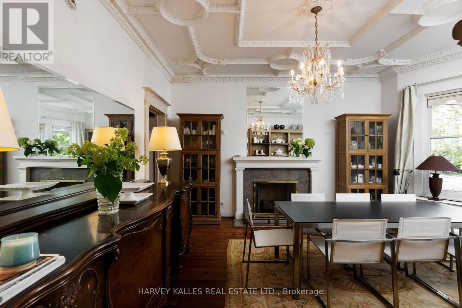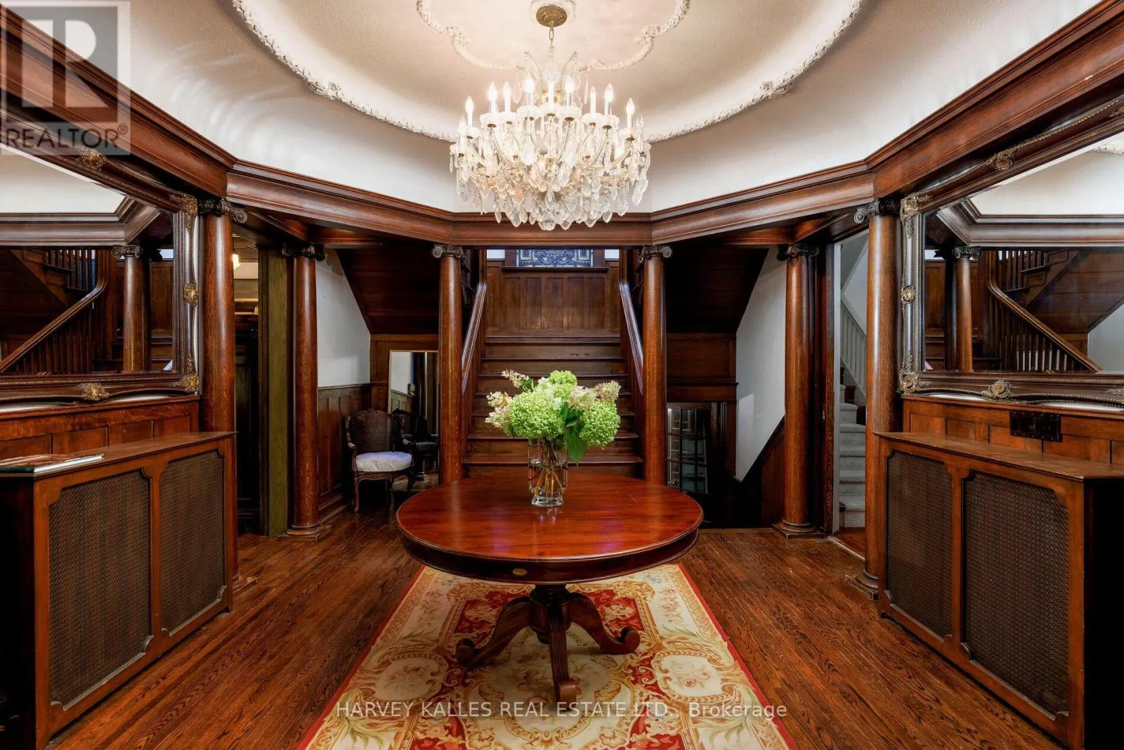 Glen & Highland Nestled in Toronto's prestigious Rosedale neighbourhood, this landmark mansion occupies an expansive 100' x 122' estate-sized lot and offers over 7,500 square feet of impeccably designed living spaces. With 7 + 1 generously proportioned bedrooms, 8 bathrooms, and an exceptional third-floor loft, this grand residence seamlessly blends historic architecture with the scale, elegance, and functionality. Originally built circa 1900 for the distinguished Applegate family, the home has been meticulously restored and thoughtfully maintained to preserve it's architectural heritage including a self portrait stain glass window of Mrs. Applegate herself. Drawing inspiration from the classical traditions of Italian Renaissance architect Andrea Palladiio - most notably his iconic Villa Rotunda in Vicenza, Italy - the home reflects timeless design and exceptional craftmanship. A majestic octagonal central hall, framed by twelve lonic columns, creates an unforgettable first impression and sets the tone for the rest of the residence. Throughout the home, rich period details abound: original oak hardwood floors, finely hand-craved oak mouldings and wainscoting, intricate millwork, and 6 fireplaces with decorative tile and brick hearths. The soaring 10-foot ceilings are adorned with ornate plaster crown mouldings, ceiling medallions, and oak-beamed details that speak to the home's historical significance. Expansive bow windows and beautifully preserved stained glass flood the interior with natural light and highlight the warm, elegant atmosphere. Outside, the property is a private oasis, surrounded by mature trees, lush landscaping, and tranquil gardens that offer rare serenity in the heart of the city. A detached two-car garage and additional parking for three vehicles provide added convenience. This is a once-in-a-generation opportunity to own a truly iconic Rosedale residence - an architectural treasure steeped in history and timeless charm. (id:27476)