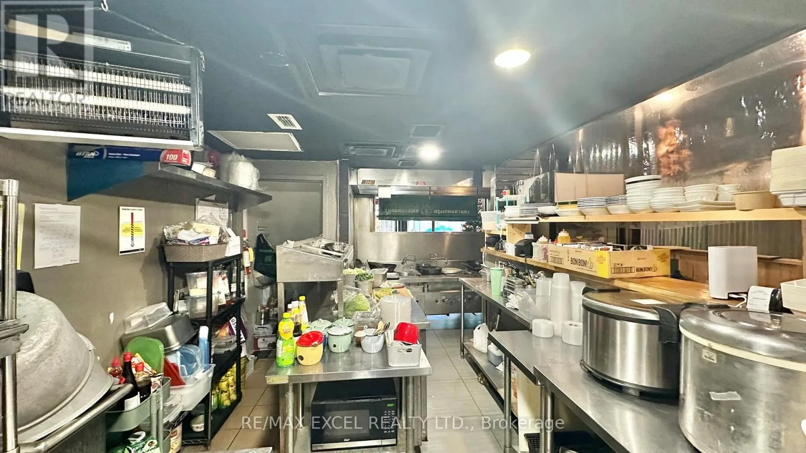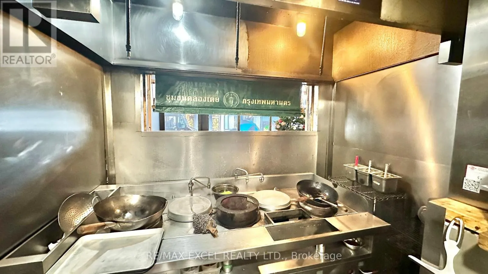 Cross Streets: Queen/Bathurst. ** Directions: NE Bathusrt. Situated at the intersection of Queen and Bathurst, this 952 sq ft space is currently a Thai restaurant offering dine-in and takeout, with a large basement for storage. Features include 8ft and 4ft kitchen exhaust hoods and a walk-in cooler in the basement. It's a prime spot for delivery and takeout. Rent is $6,723 inclusive of TMI and HST, with a lease running until June 2030 plus a 5-year renewal option. The space can be easily adapted to suit any concept. (id:27476)
