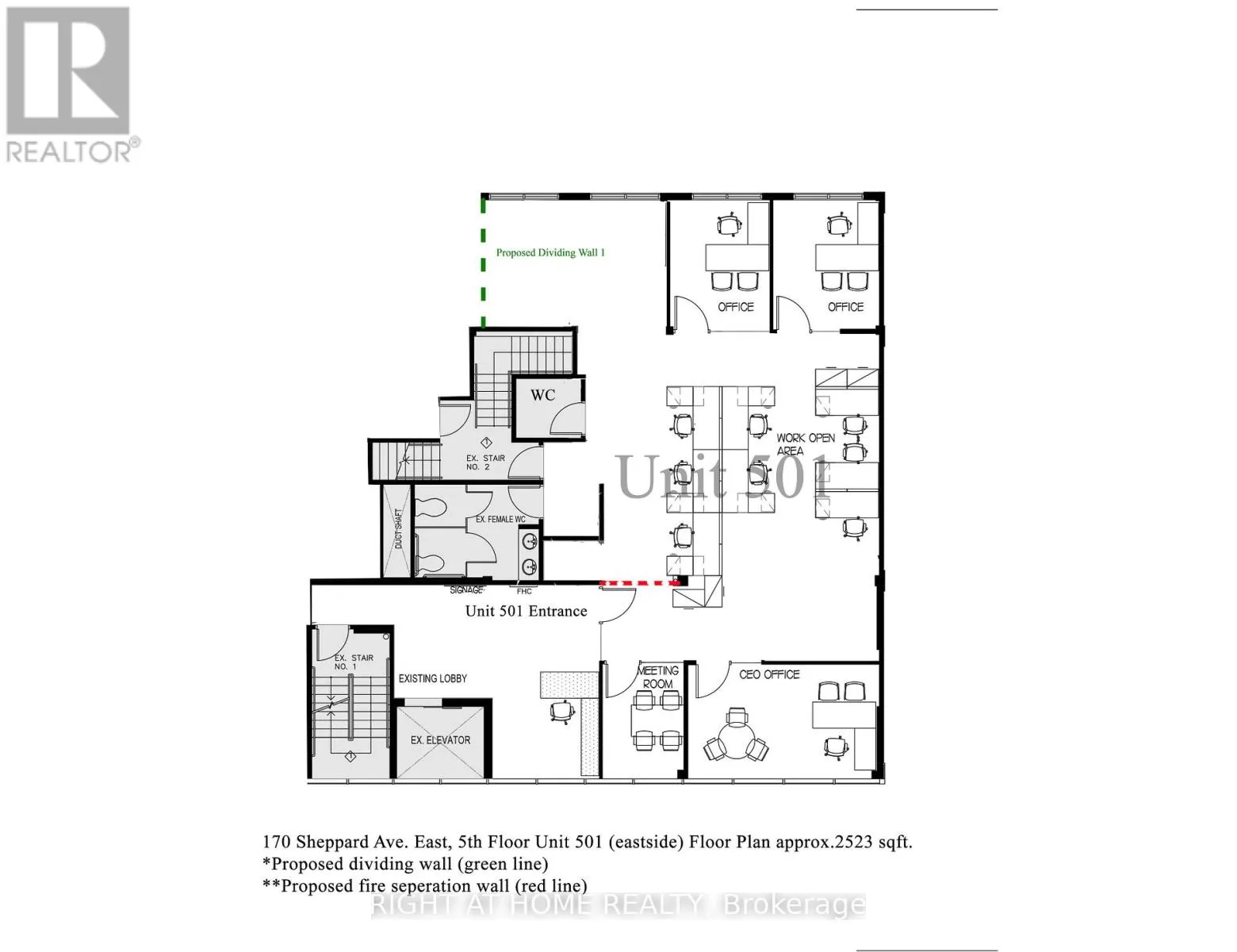 Cross Streets: Yonge & Sheppard. ** Directions: East of Yonge. Ideal Office Space in North York Located in a prime area with easy access to TTC and the 401, this 2,523 sq ft office on the 5th floor offers a bright and quiet work environment, surrounded by large windows. Perfect for professionals such as accountants, doctors, dentists, chiropractors, architects, travel agents, advertising specialists, and health centers. Enjoy the convenience of daily office cleaning included in the T&O. The TMI is the lowest in the area, the most cost-effective office space for new tenants. (id:27476)