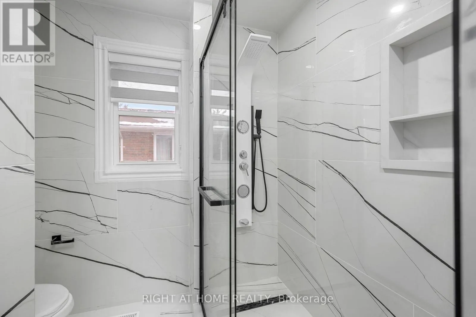 Lawrence and McCowan MUST SEE! Stunning 50-foot lot wonderful bungalow featuring 3 spacious bedrooms in main floor and 4 bathrooms. This property has been completely renovated with modern bathrooms, new windows, a contemporary kitchen, new flooring, a new roof, a furnace, and a gas water tank. Parking for 3 vehicles is included. Prime Location: Nestled in a quiet residential neighborhood near Lawrence and McCowan, just steps from Scarborough General Hospital. The upcoming Lawrence and McCowan subway station is only a 5-minute walk away, offering a convenient 30-minute commute to downtown Toronto. Scarborough Town Centre is within a 5-minute drive. Income Potential. The property features two separate entrances and a fully self-contained basement, with potential dual-family rental arrangements at $3,500 per month. Don't miss this exceptional opportunity! (id:27476)
