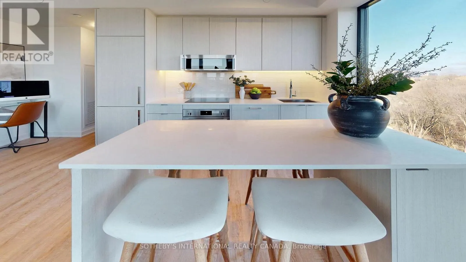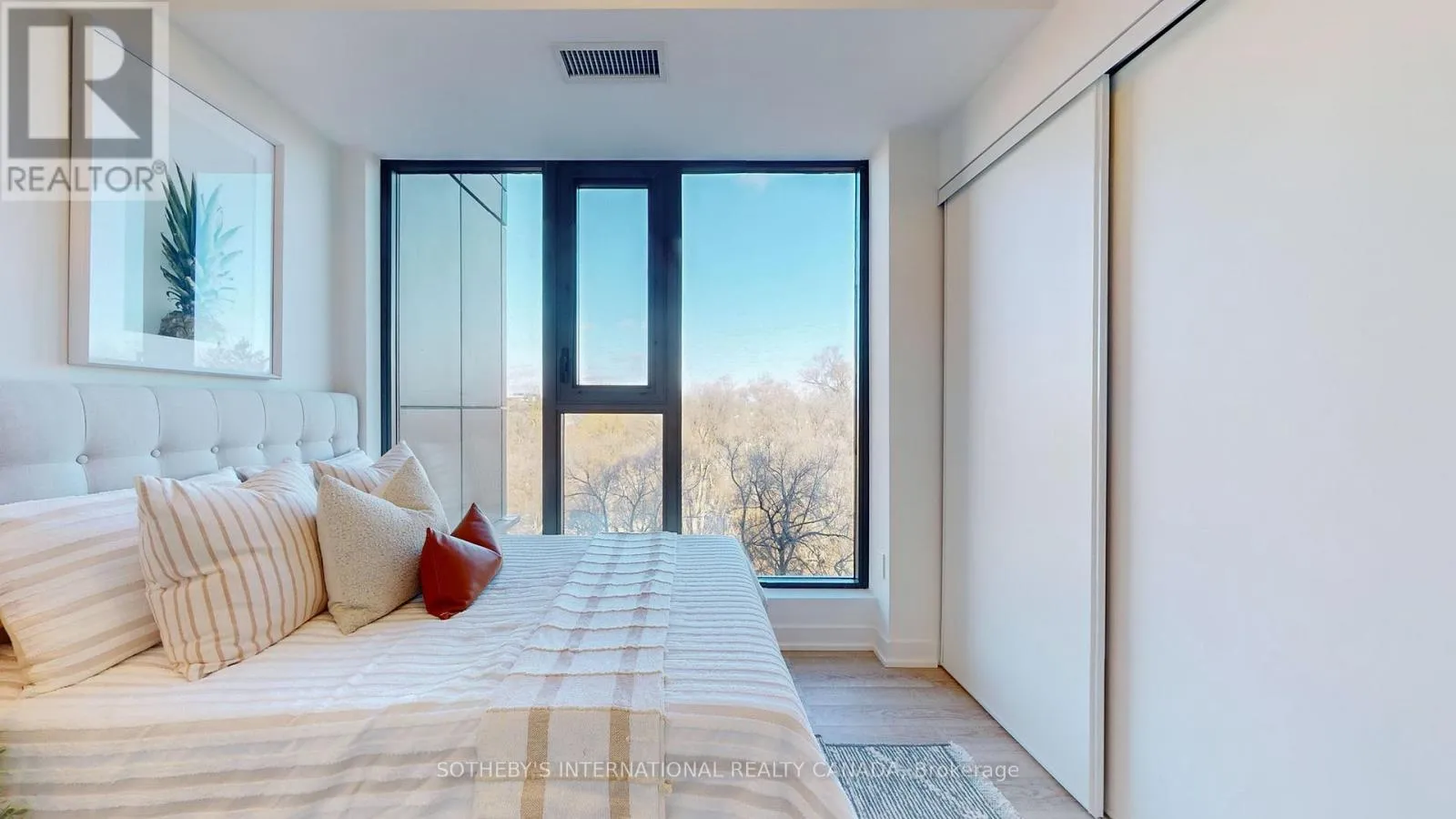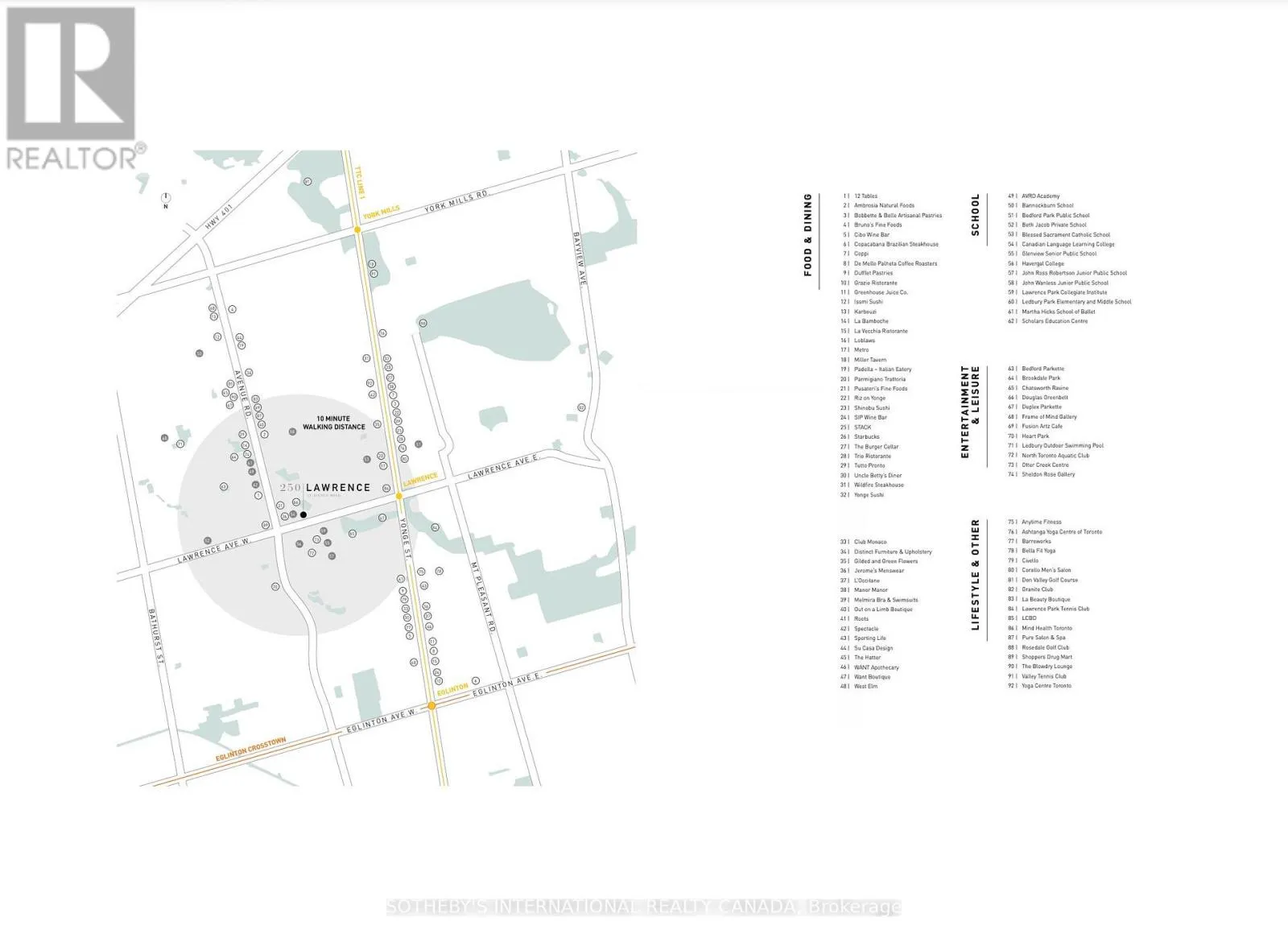 Cross Streets: Avenue Rd & Lawrence Ave. ** Directions: N. In the Heart of Midtown Top Schools Zone, Renowned Quadrangle Architects & Graywood Developments completed luxury 250 Lawrence Condo in 2023 & 2024. Unit 624 is a hard-to-get premium Ravine Lytton Model. This superior northeast corner suite wows utmost privacy and tree-top views. Wraparound floor-to-ceiling windows and open balcony invite Douglas Greenbelt vista indoors. Much quieter compared to those facing Lawrence Ave. A successful split layout that is ideal for separating living and working spaces. No pillars, no lengthy hallways, and no wasted space. Two detached bedrooms, Two full baths, One same floor locker. One underground parking close to building exit. Preferred luxurious finishes and modern aesthetic throughout. Quartz kitchen with upscale appliances. Sleek vanities with stylish matte black hardware. Premier vinyl plank floorings. Significant architecture features tall elevations and double-height Porte Cochere. Splendid bronze metal and gunmetal grey palette flows with subdued horizontal lines. State-of-the-art amenities to entertain, host, socialize and relax. Popular rooftop club lounge with BBQ and fireside sittings. 24/7 concierge, guest suites, visitor parkings, party salons, versatile co-working and meeting areas, and fully equipped fitness with yoga studio. Affluent Neighbourhood and Sophisticated Connectivity. Steps to Havergal College, and esteemed Public and Private Schools incl Lawrence Park CI, Glenview Senior P.S. & John Wanless P.S. Minutes drive to Upper Canada College, Crescent, BSS, TFS, St Clements, Hebrew Schools and most desired child cares. Excellent proximity to libraries, parks, walking/biking trails, golf/social clubs, sports facilities, medical services, fine dinings, Starbucks, Pusateri's, Metro, Loblaws City Market, Shoppers Drug, Yorkdale Shopping Ctr, TTC Subway, Hwy 401, and all Lytton Park hotspots. Available for immediate move-in. This beautiful suite offers unparalleled natural oasis with private picturesque scenery. (id:27476)